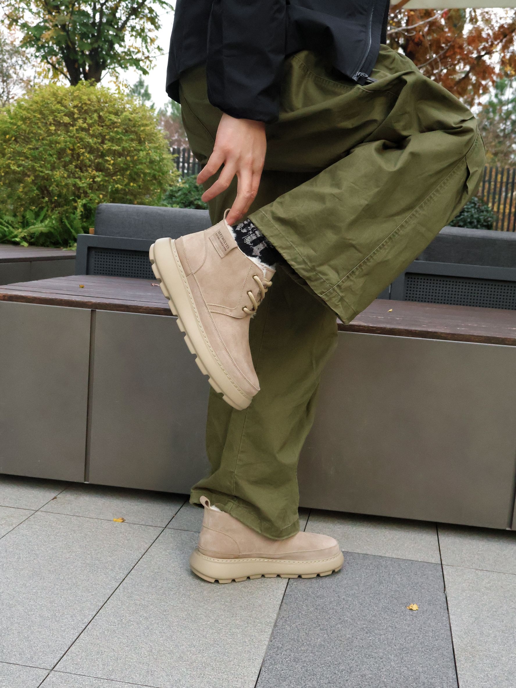 冬日复古雪地靴|让我户外通勤安全感满满 冬日通勤保暖很重要的呀~ 今天上身百搭的始祖鸟羽绒服外套~ 黑色经典时尚的~ 搭配绿色工装裤高级耐看~ 搭配O七匹狼 SEPTWOLVES 加绒加厚雪地靴~鞋子的版型很有质感~ 内是加绒加厚的设计 保暖和脚感都不错~ 半高帮设计对脚踝保护也很好~ 细节做工不错~适合冬日~ 小倪:181cm 70kg 上脚43码正码哈~ 冬日穿让它去户外吧~
