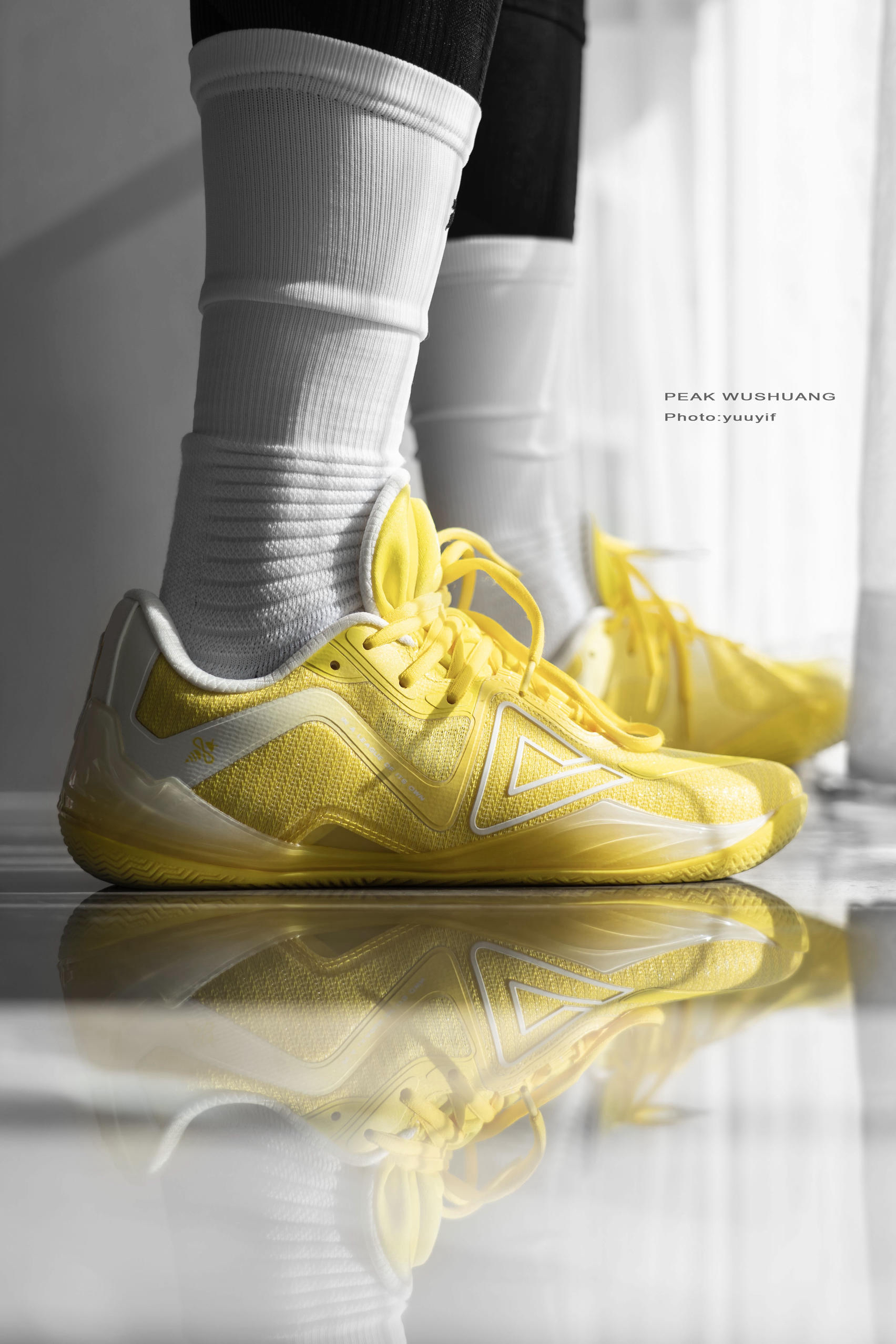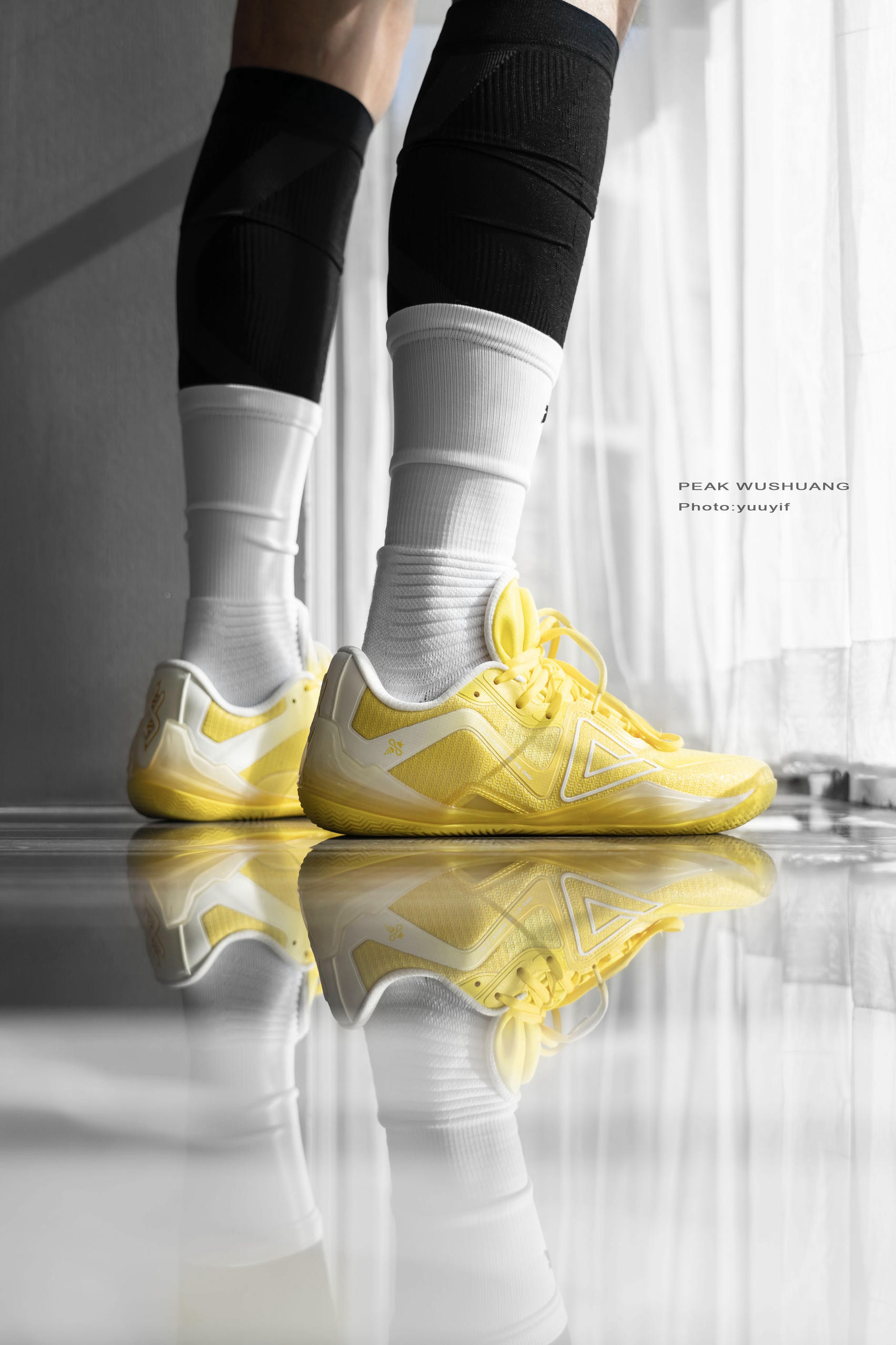 匹克无双「黄蜂」🐝配色上脚, 这个配色用到偏柠檬黄的配色,上脚非常亮眼, 大家可以参考我上脚的效果, 喜欢亮色实战鞋的这双收藏好, 尺码大家还是按照比正常尺码小一码去选择。