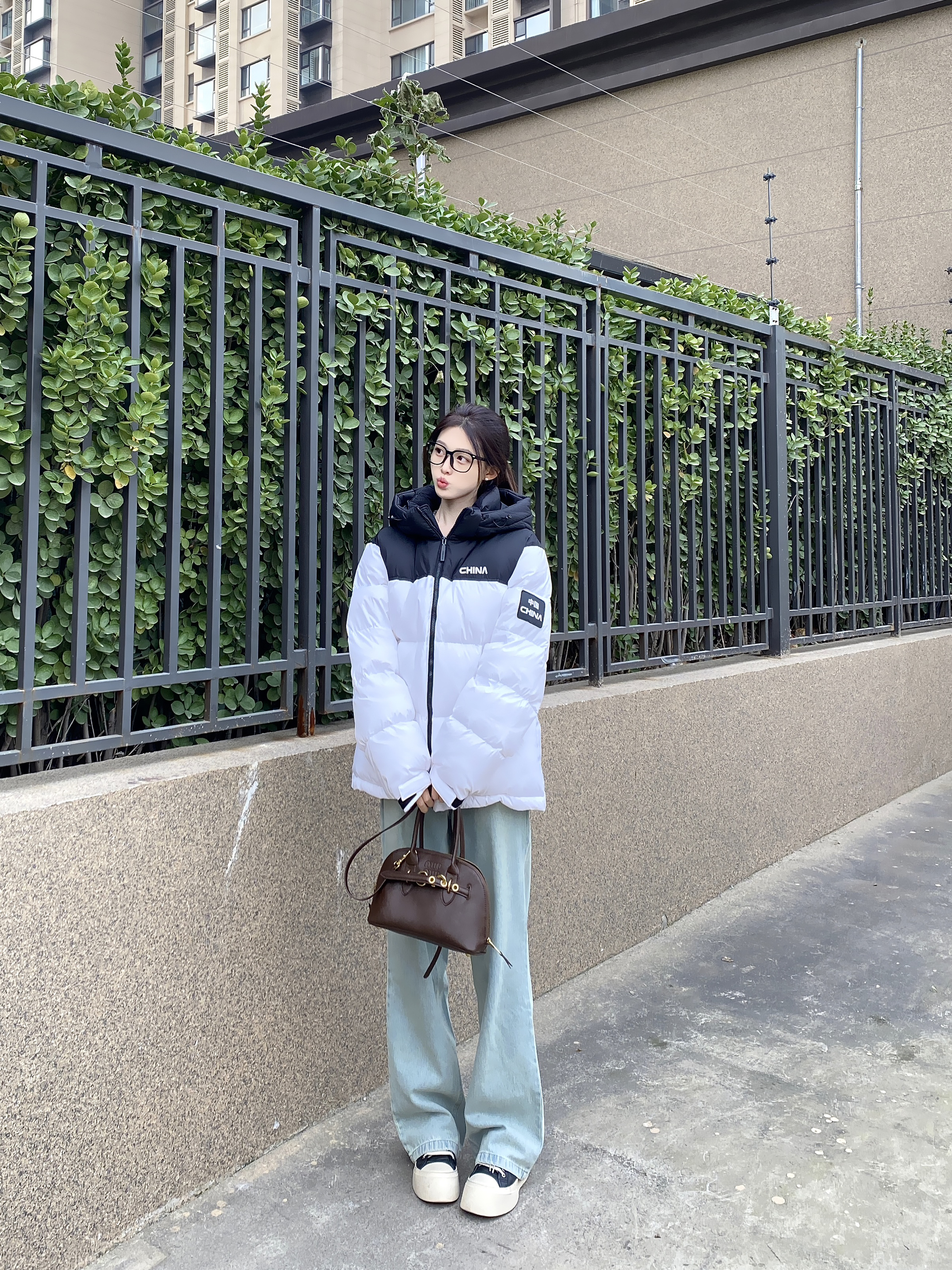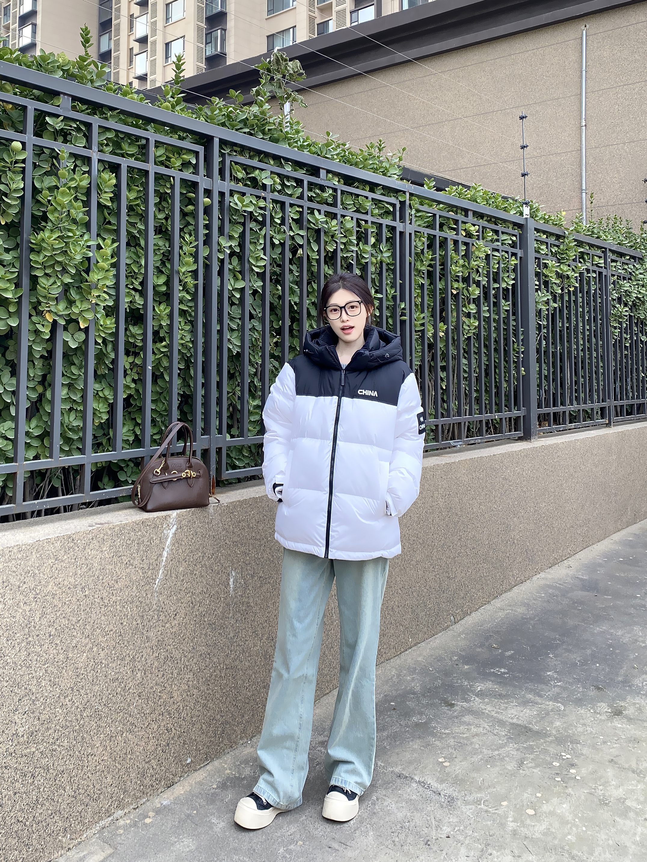 今天穿的是鸭鸭羽绒服 90鸭绒填充的 穿着轻盈又保暖 软乎乎的蓬松度也很好~ 戴上帽子满满的冬日氛围感 我168/94 穿的XL码 下半身搭配直筒牛仔裤➕大头鞋 再拎上一只Miu Miu棕色系包包 日常通勤保暖又范儿 一套松弛感拿捏了~
