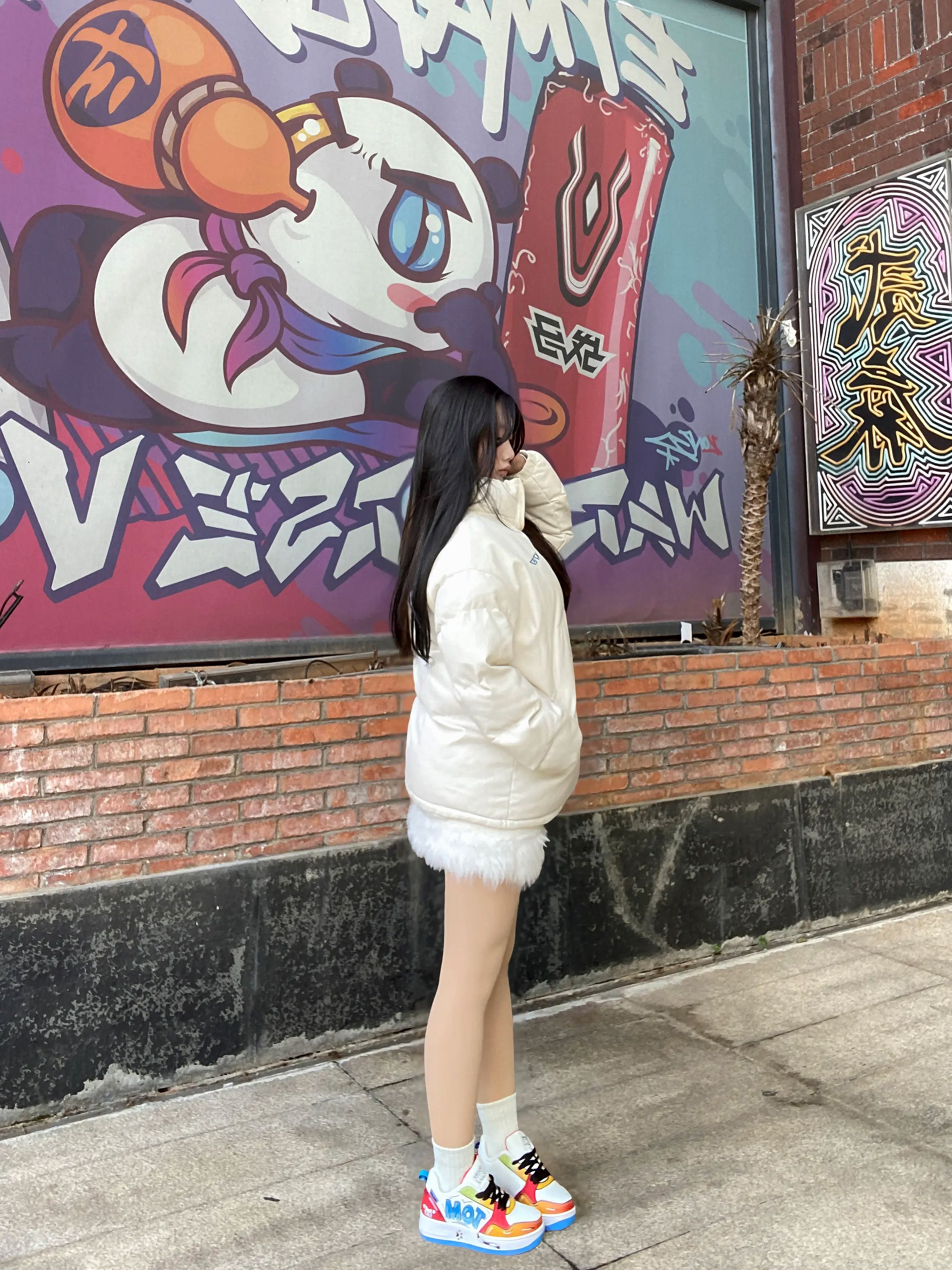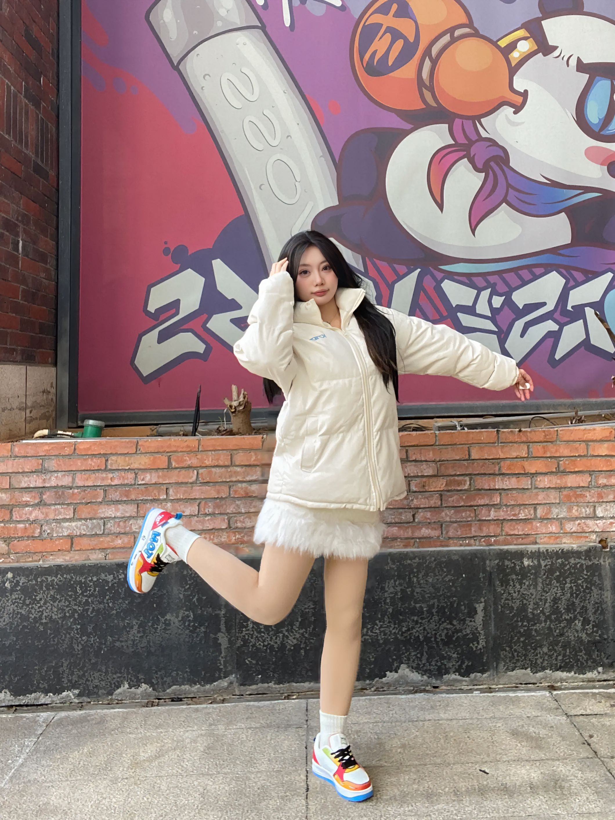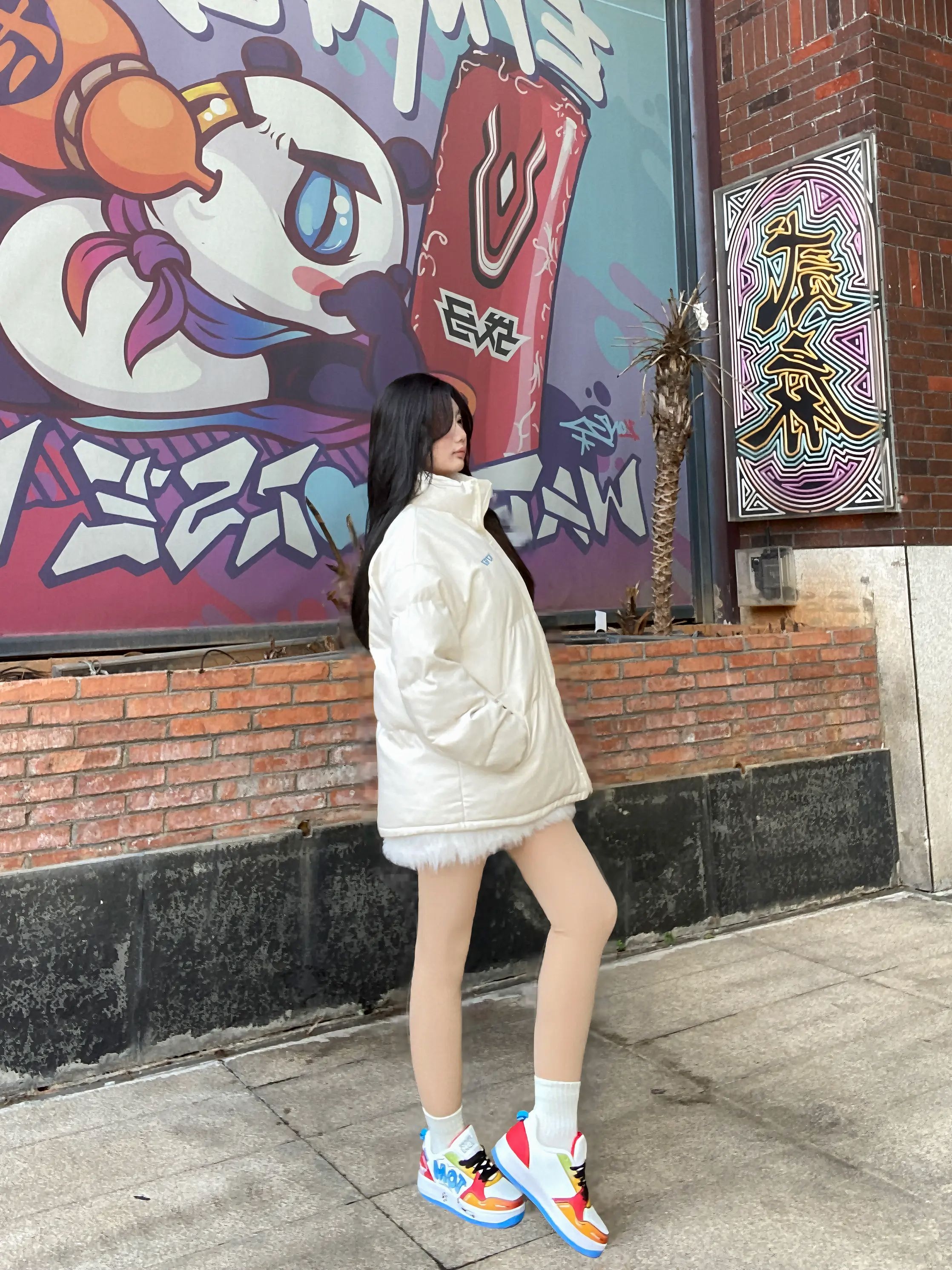 一眼就被这双色彩炸裂的潮鞋拿捏住了!白底色搭配红、黄、蓝、橙的撞色设计,亮眼又不杂乱,鞋身的细节图案还透着满满的街头感,和背景的涂鸦墙适配度直接拉满~上脚不仅颜值在线,穿上脚感也超舒服,搭配浅色羽绒服+光腿的穿法,甜酷风直接拉满,走在路上回头率绝对爆表,出片也很丝滑~真的太会选鞋了!