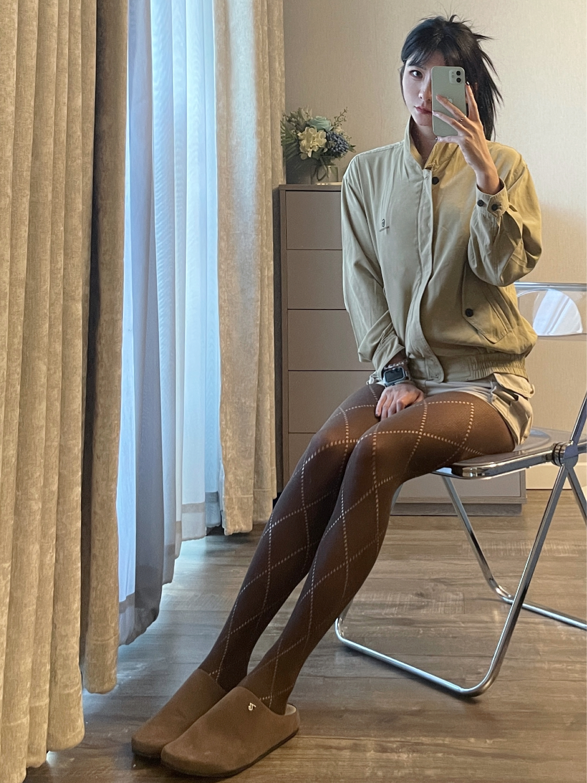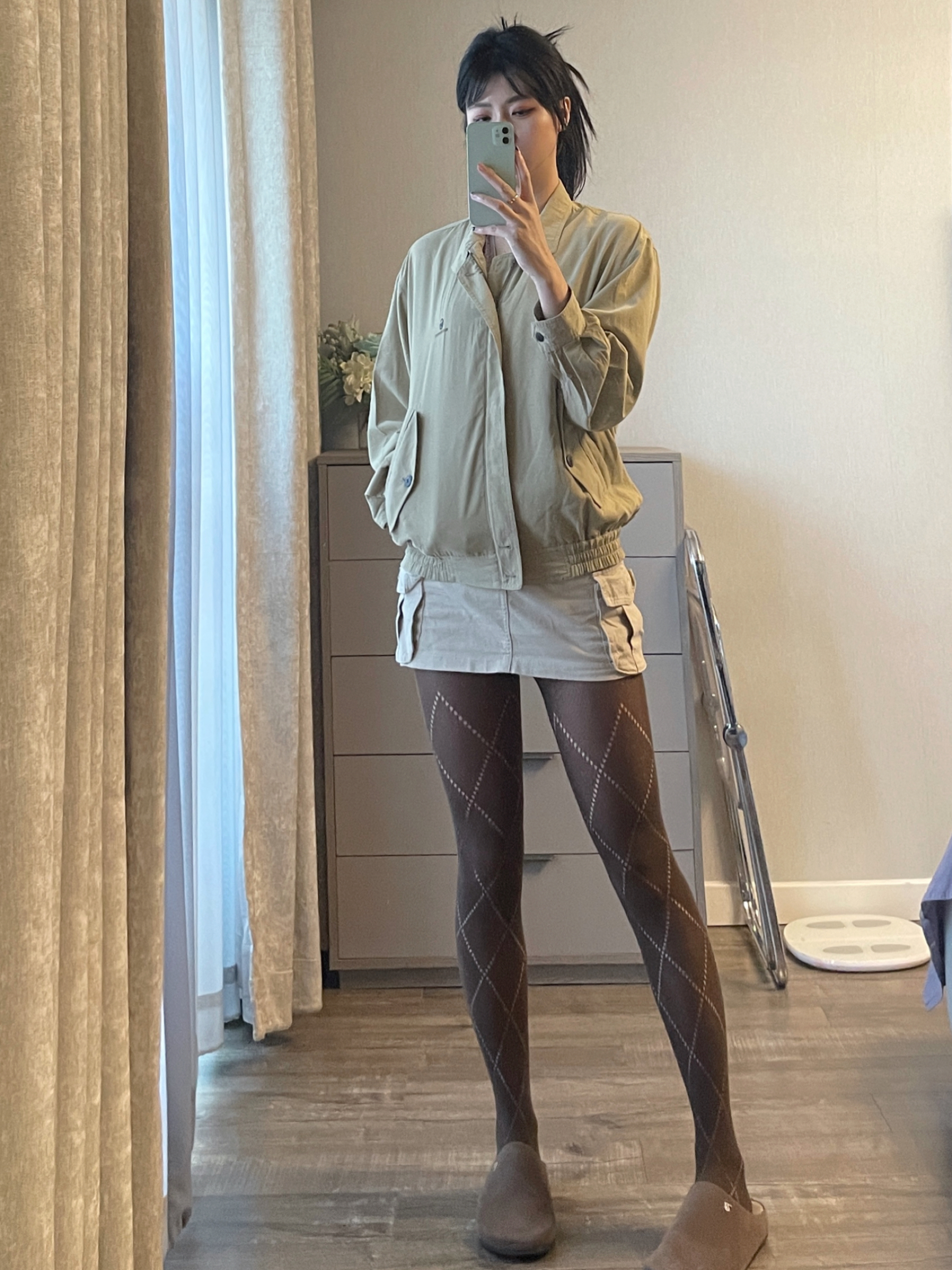 复古夹克搭配工装裙和连裤袜 外加勃肯鞋整个老钱风拿捏住啦