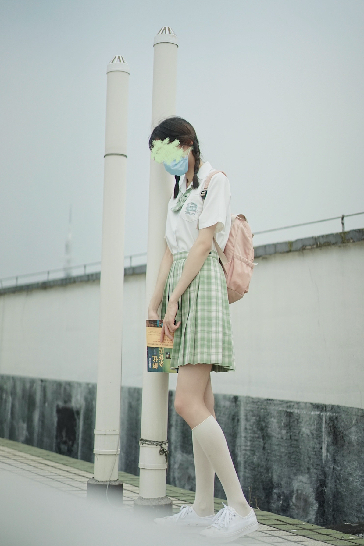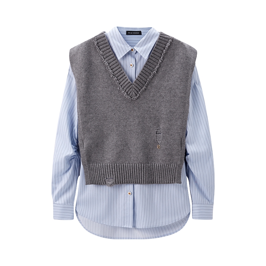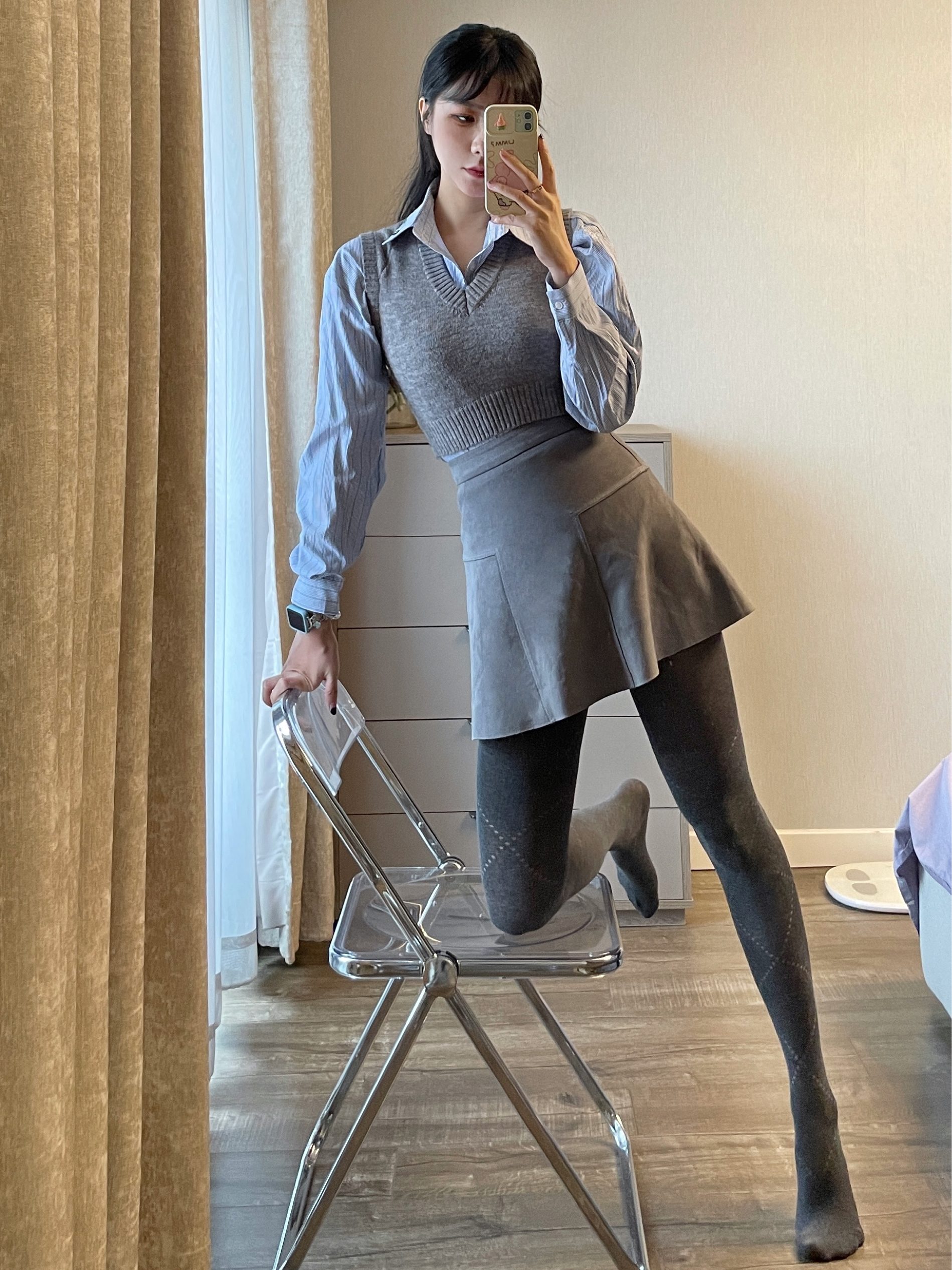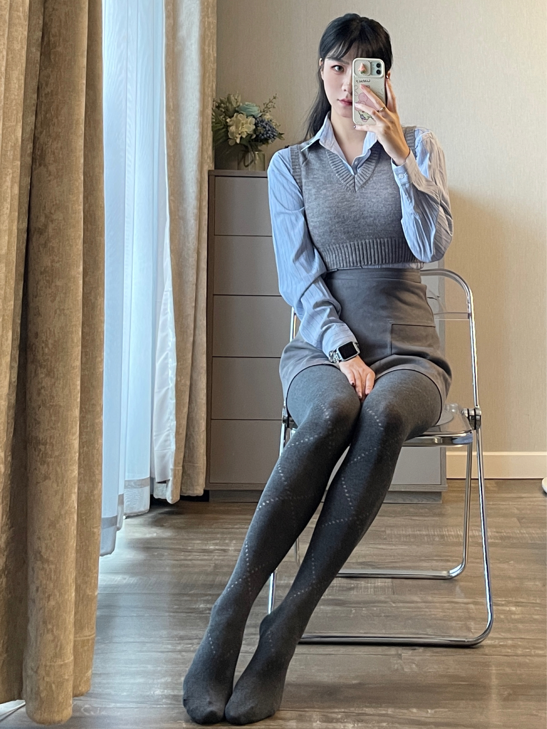 蓝色衬衫搭配灰色马甲和灰色羊毛袜 一整个学院风穿搭拿捏住啦啦