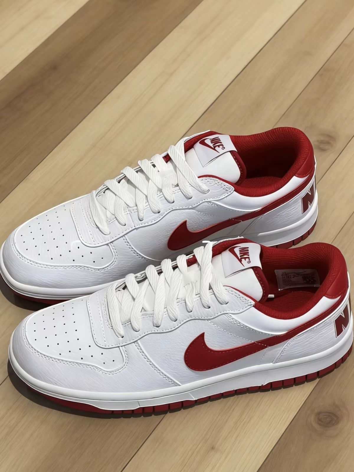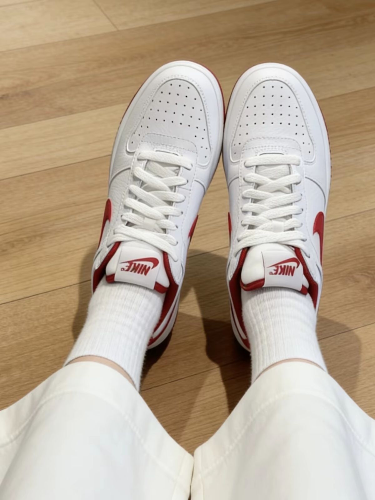 ♥️新年当然要穿红❗这双Nike白红板鞋也太应景了✨ 经典红白撞色自带年味,荔枝纹皮面质感在线, 低帮版型利落不臃肿, 新年出街/走亲访友穿都讨喜, 脚感舒服还百搭, 新鞋上脚,新年步步红火~ 经典大Swoosh辨识度拉满,通勤出街随便配都好看。脚感软弹,走一整天也不累,必须入手