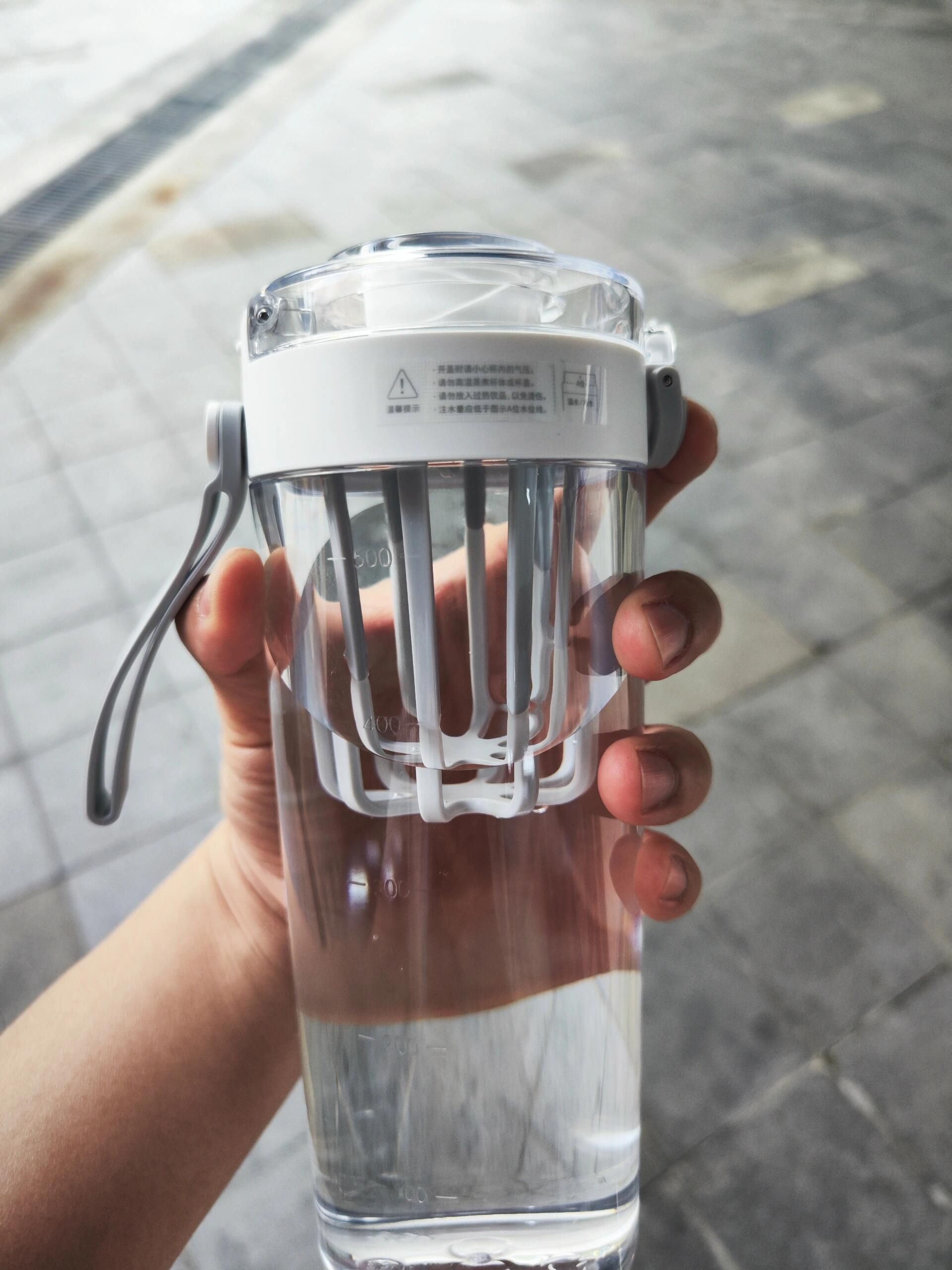 这款水杯好多人反应喝水盖子会打到脸,其实只要打开盖子后再把盖子轻轻下压,就会卡主。卡住后角度差不多是水平的,这时候就不会出现盖子碰脸的情况。 多用几次,弹开后就会自动卡主,会更加方便。这款水杯风格简约,白色款干净又耐看,600ml大容量很实用,夏天用来喝纯净水十分方便,无明显logo,方便DIY。 茶隔上面的半圆空刚好能戳进去一根一次性吸管,秒变吸管杯。