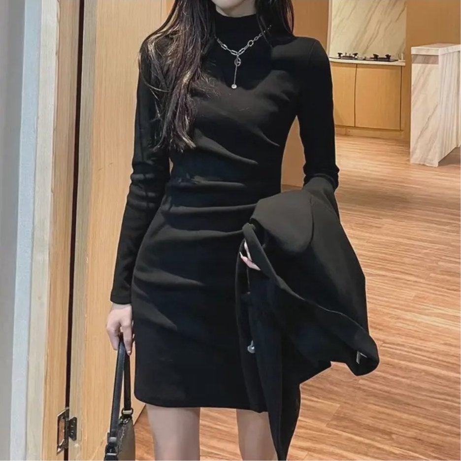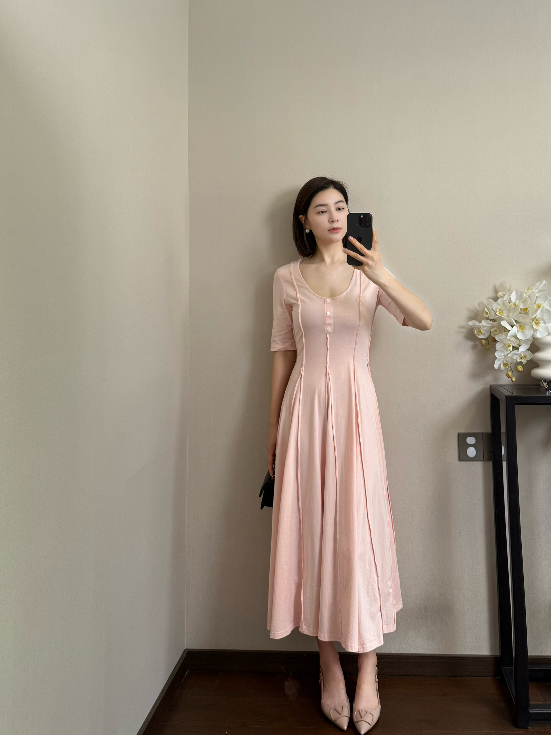 第一次尝试豆肯风连衣裙 👗 单穿和搭配大衣都很好看 鱼骨设计真的很显腰身 穿上完全纸片人🖤 搭配高跟鞋姐感满满👠 男友帮拍的都说很出片💘 我165/96 穿的s 很好看✨ 身高|体重:165/96 🧍♂️ 穿搭风格:韩系 👟 鞋子:👠