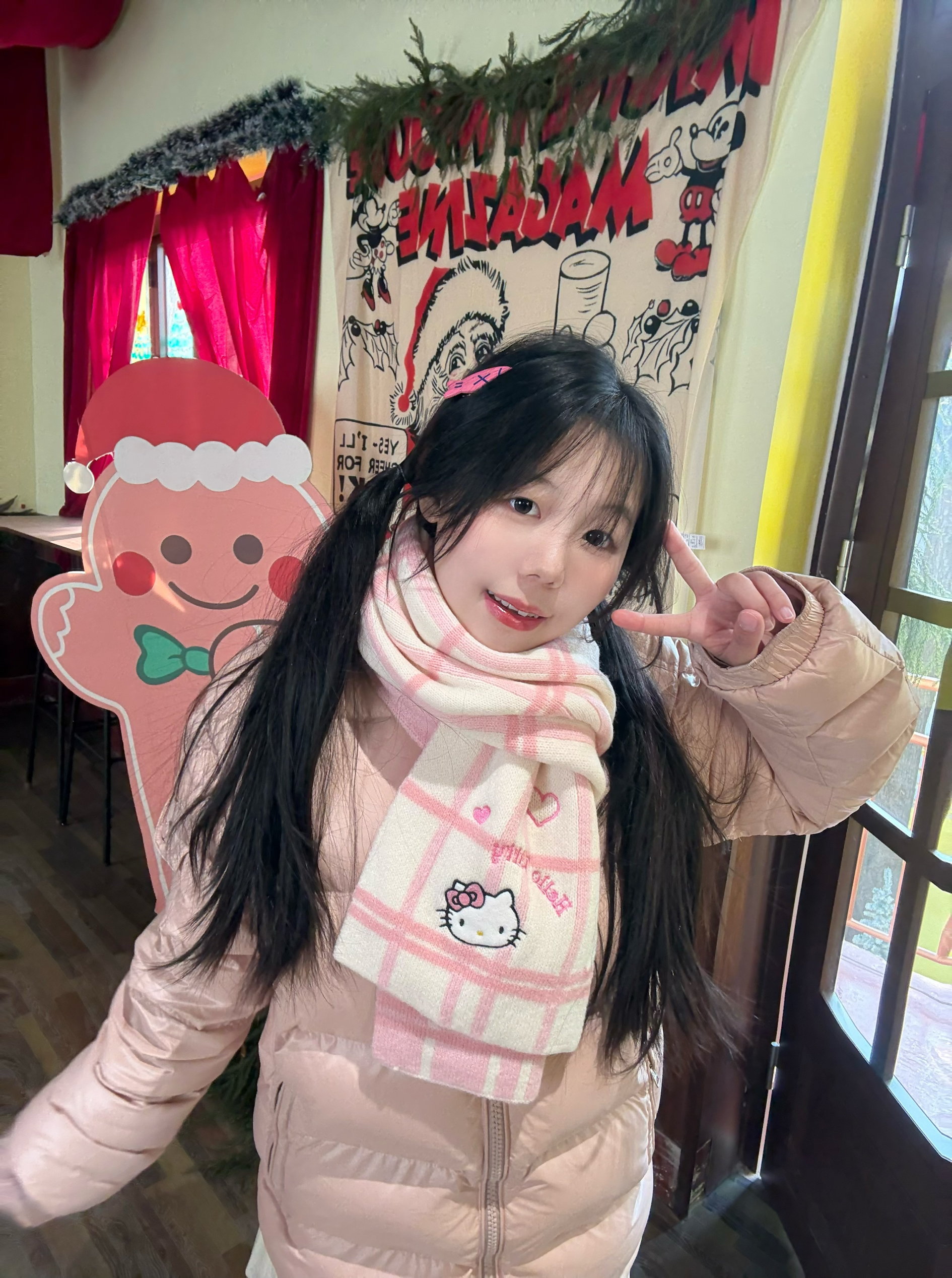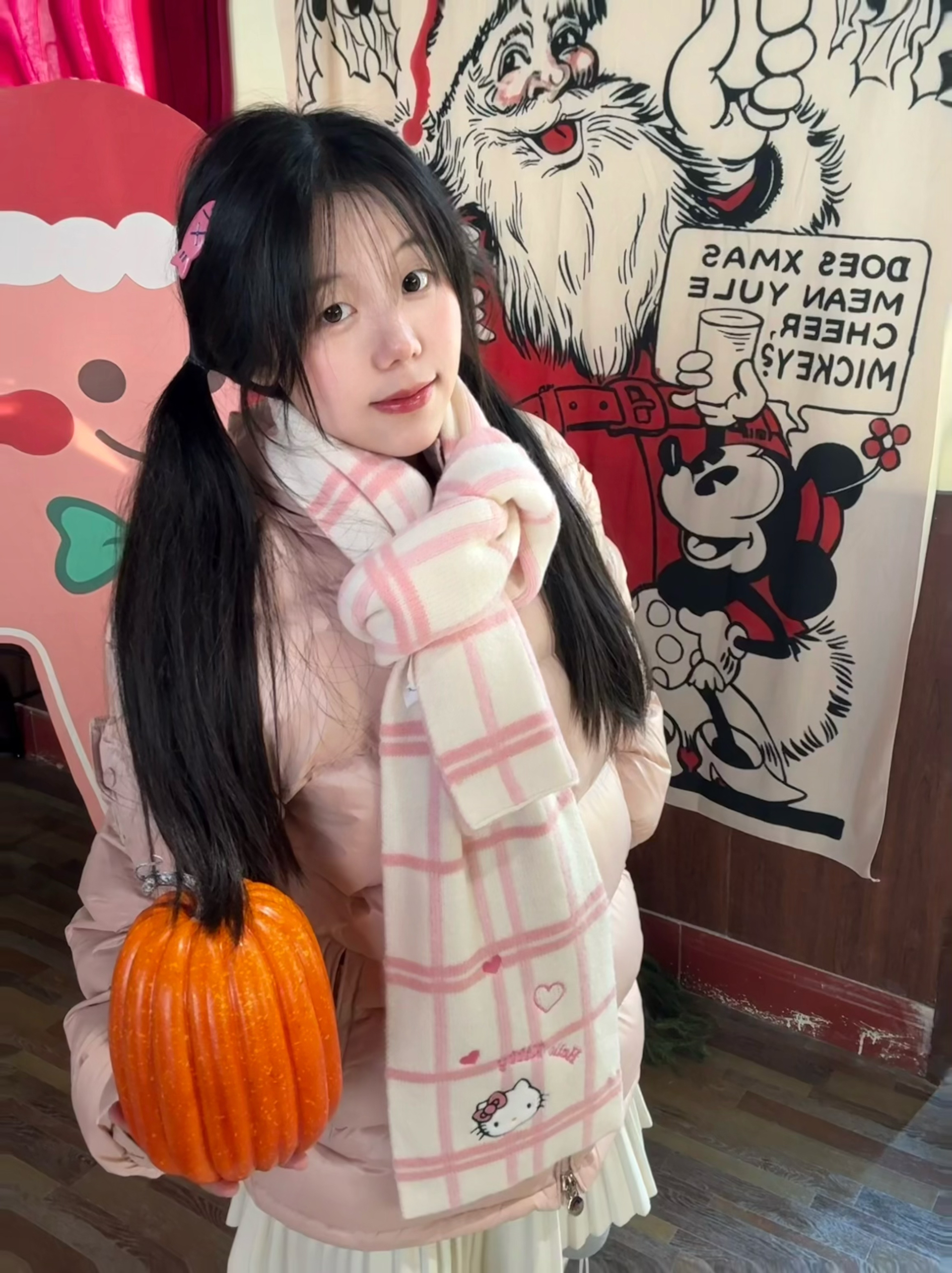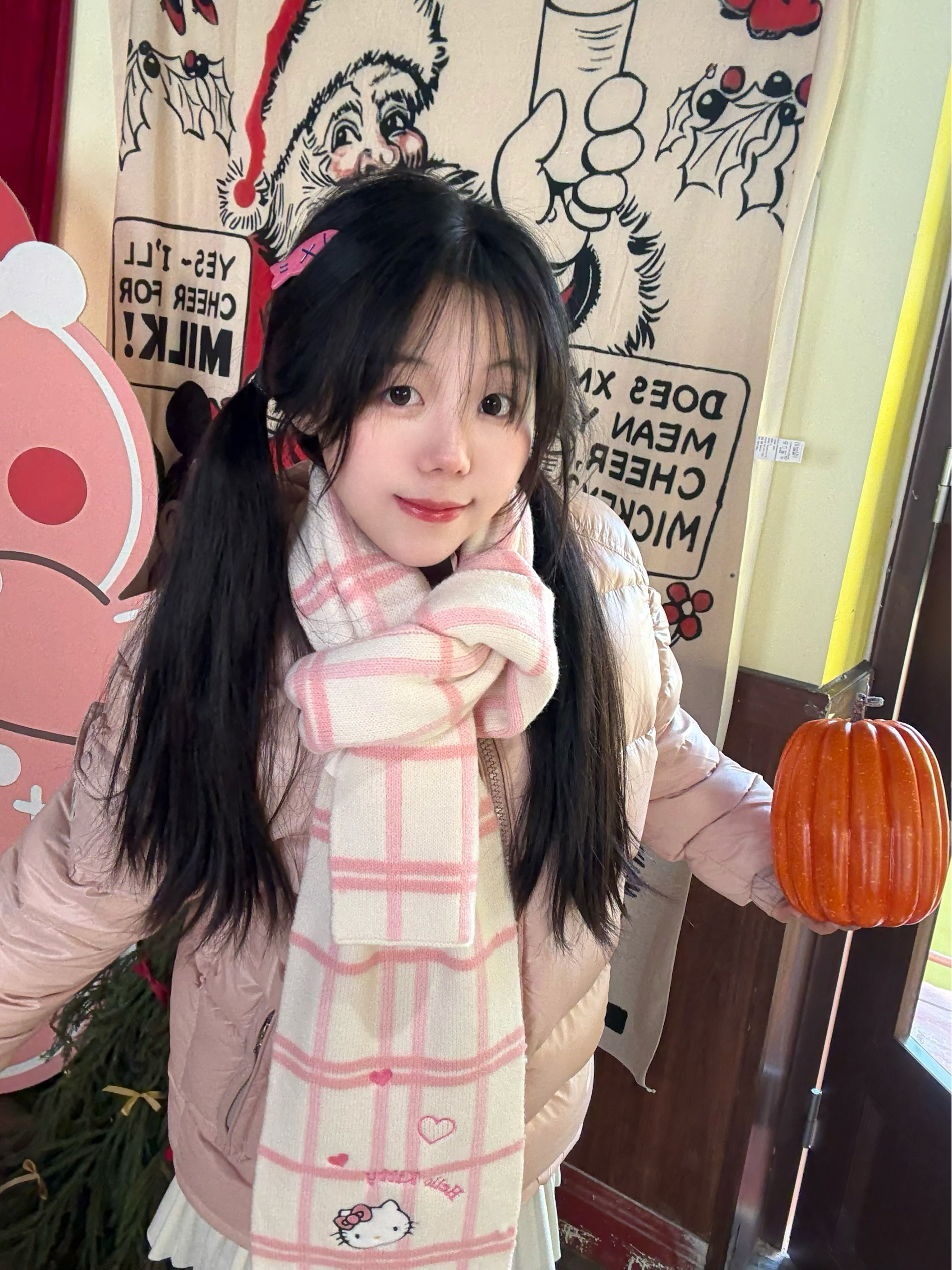 这条Hello Kitty围巾真的甜到我心坎里啦✨! 粉白格纹软乎乎的 贴在脖子上又暖又糯 少女感直接拉满~😍戴上它整个人都变得软软萌萌的妥妥的甜妹本命围巾🧣! 搭配浅色系穿搭萌萌哒