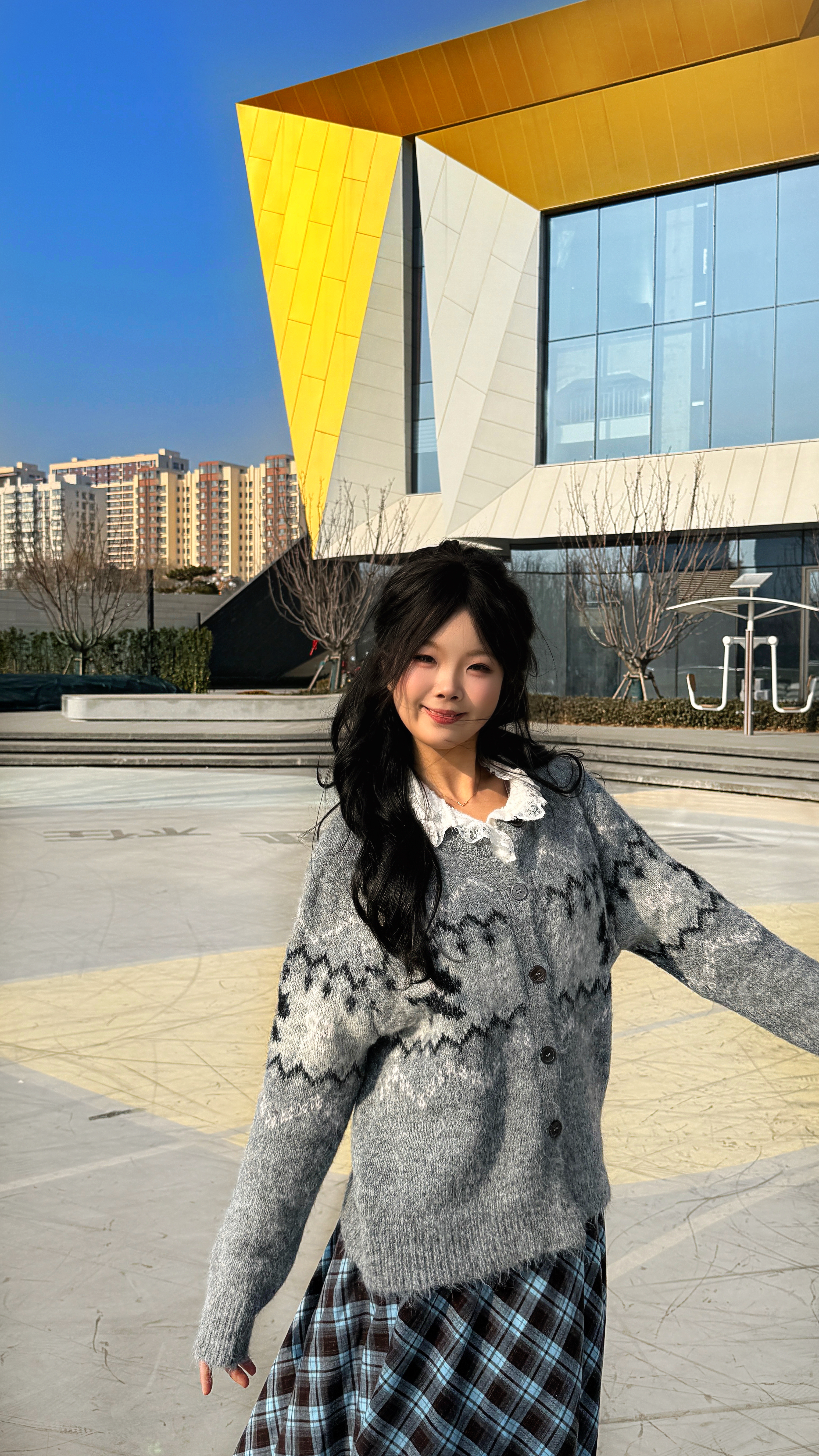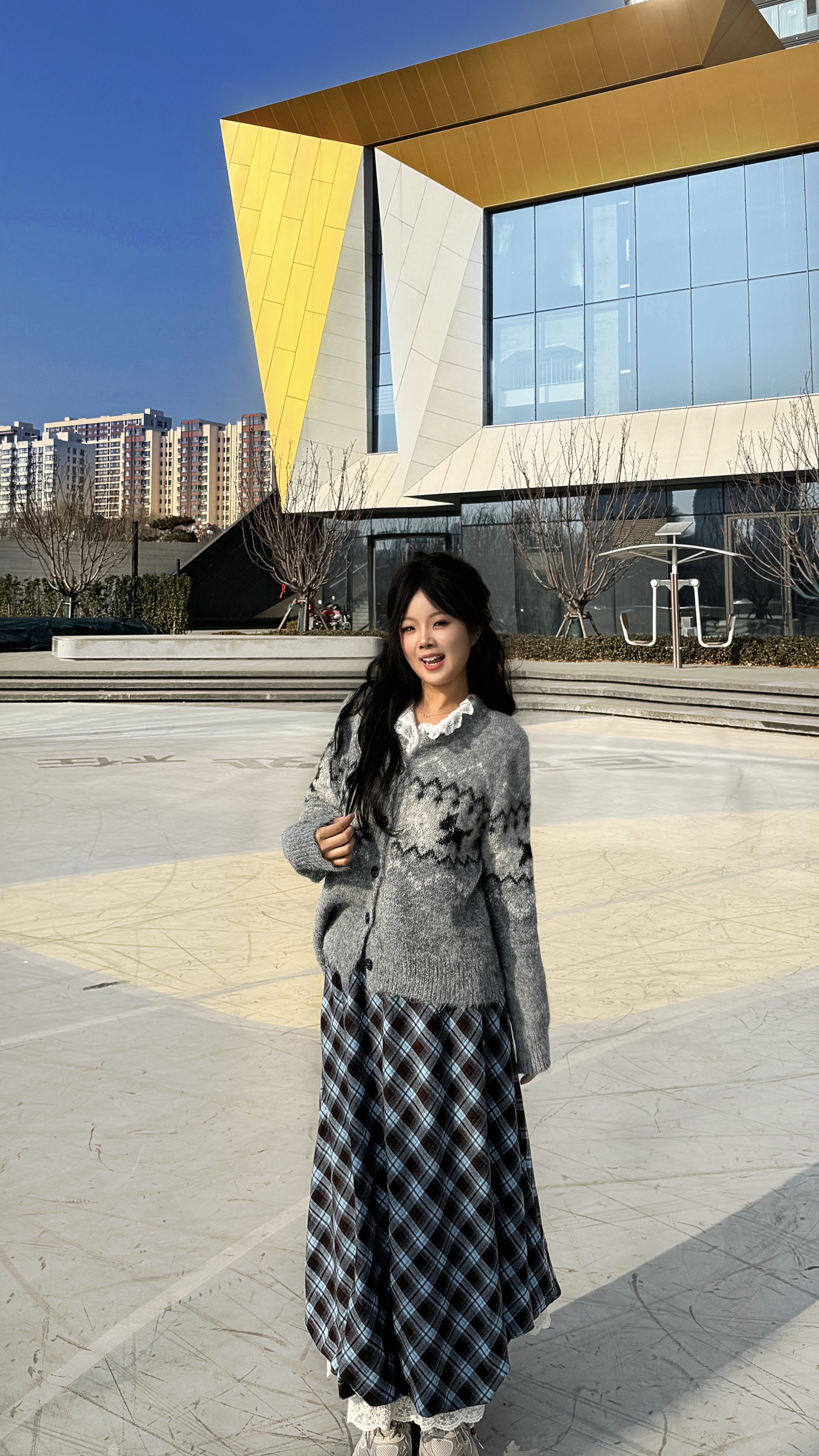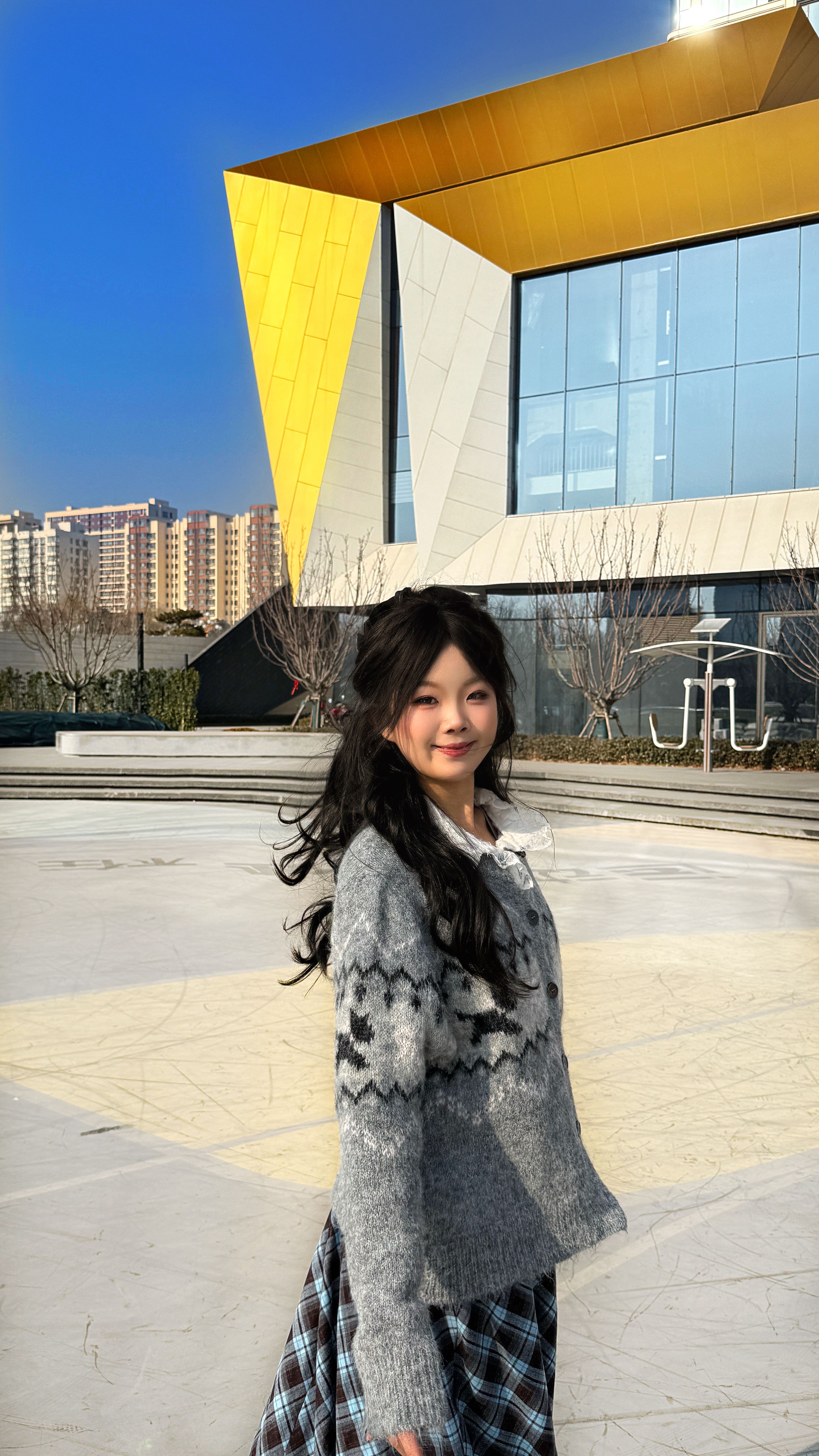 冬日的阳光太适合出门晃悠啦~ 软糯的灰色针织开衫自带慵懒感 搭配格纹裙又多了几分甜妹气息 随便站在街头都能拍出氛围感照片 这种松弛的穿搭状态真的太爱了🤩