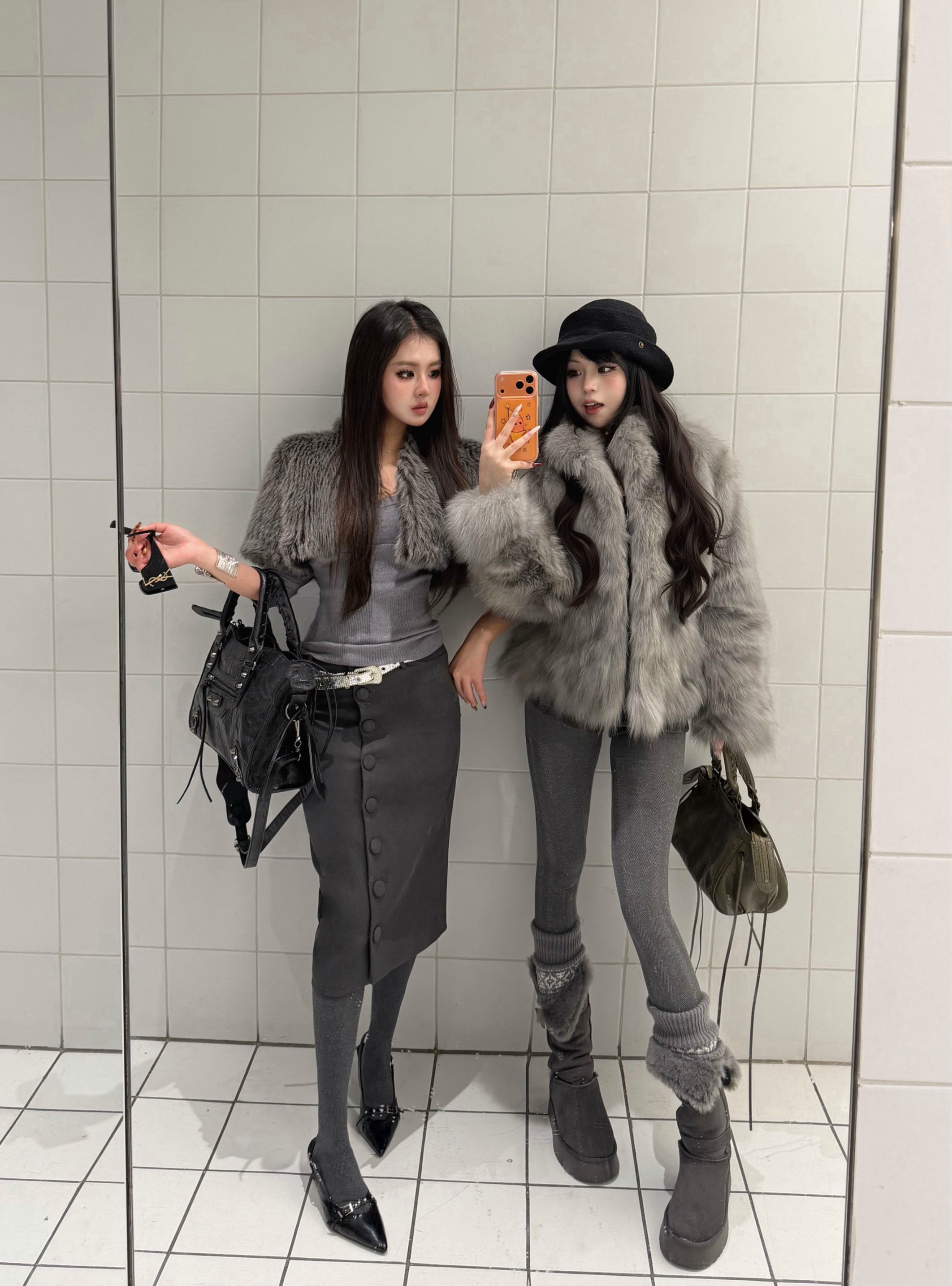 这件皮草真的非常舒适 不会显得人很壮 总体搭配灰色调,给人眼前一亮的感觉