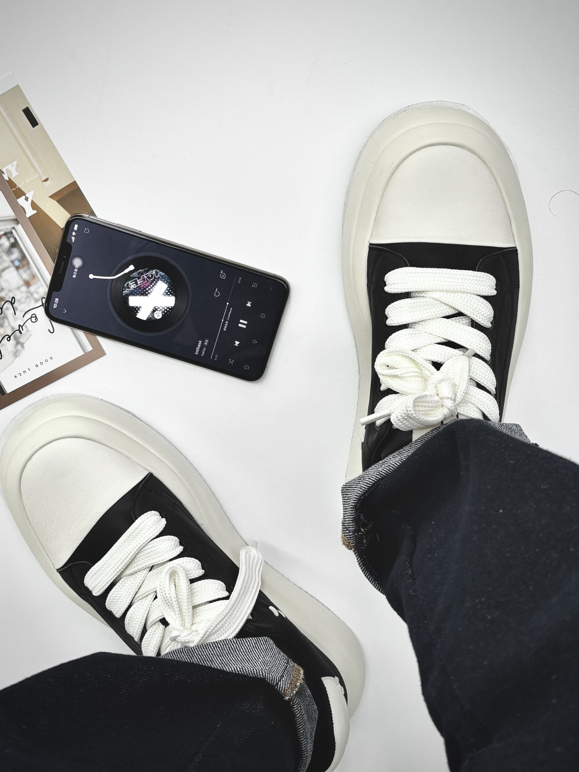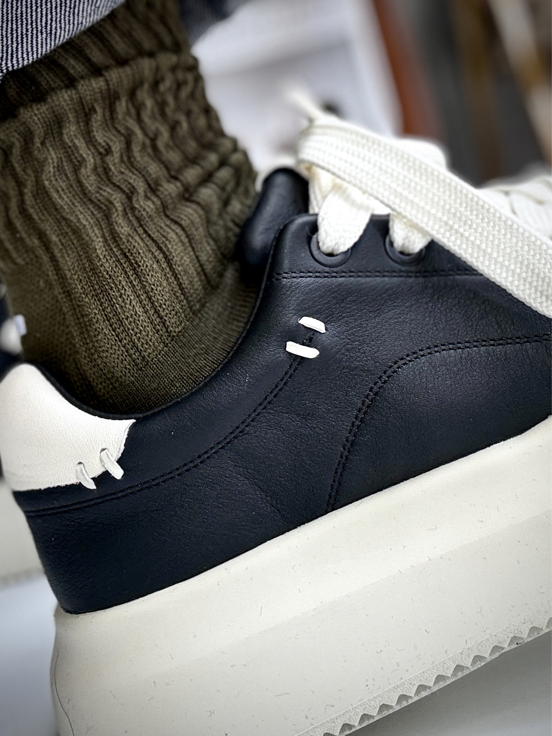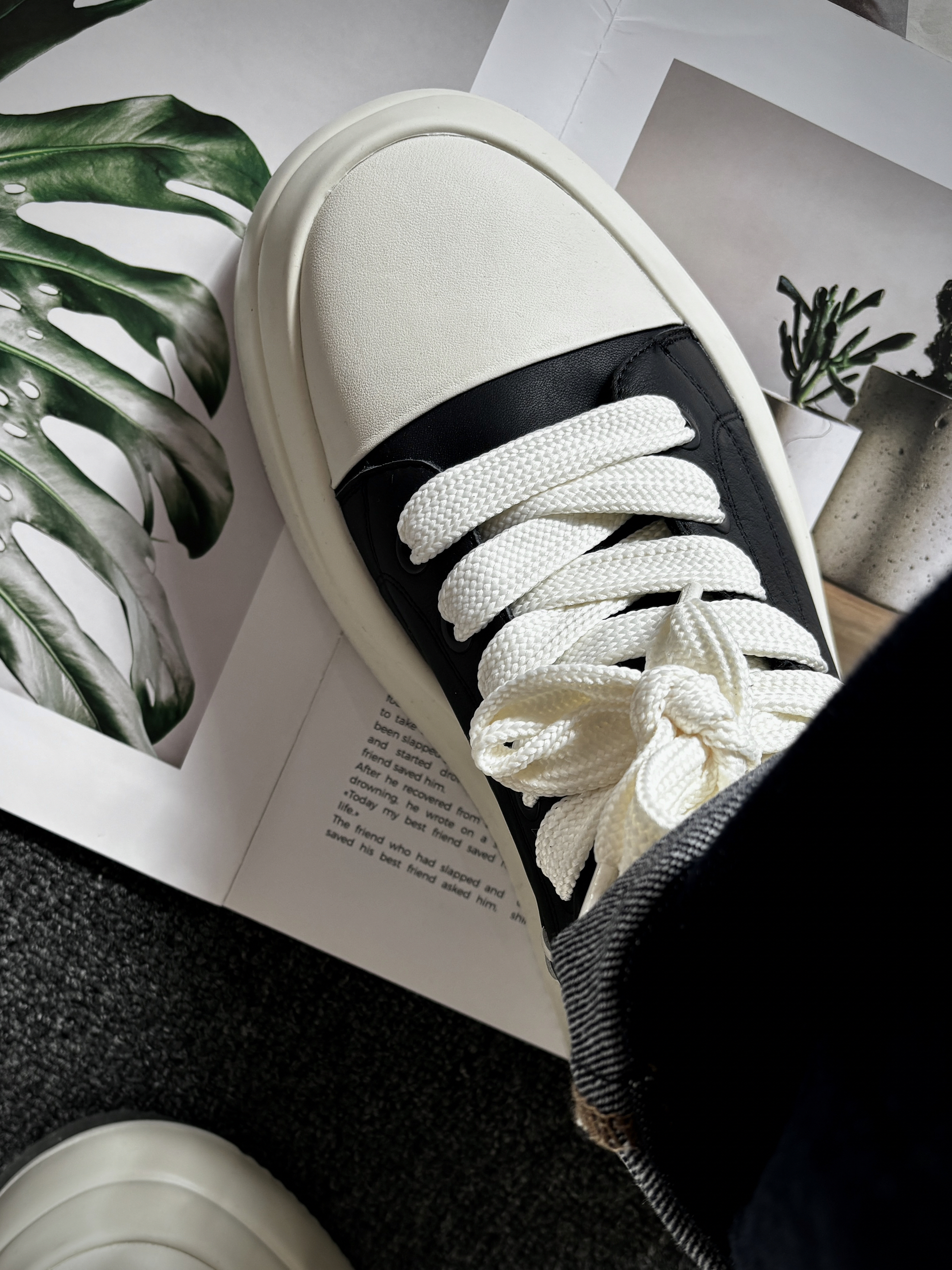今天分享的是 ELLE HOMME 家的这款牛皮板鞋。说实话,这种牛皮类的秋冬款板鞋,我还真的是第一次尝试这种风格,看着👀觉得也没啥特别的,上脚后给我的观感就很直接,这鞋穿脚上很好看。 鞋头是奶白+黑色为主色的的一个黑白设计,不带任何的修饰,偏极简风。 说到这个脚感,我不得不先提一下这个“增高”,4-5cm的增高让我的腿“显长”搭配直筒牛仔,比例一下子就拉好看。上脚感不错,鞋垫有弹性,支...
