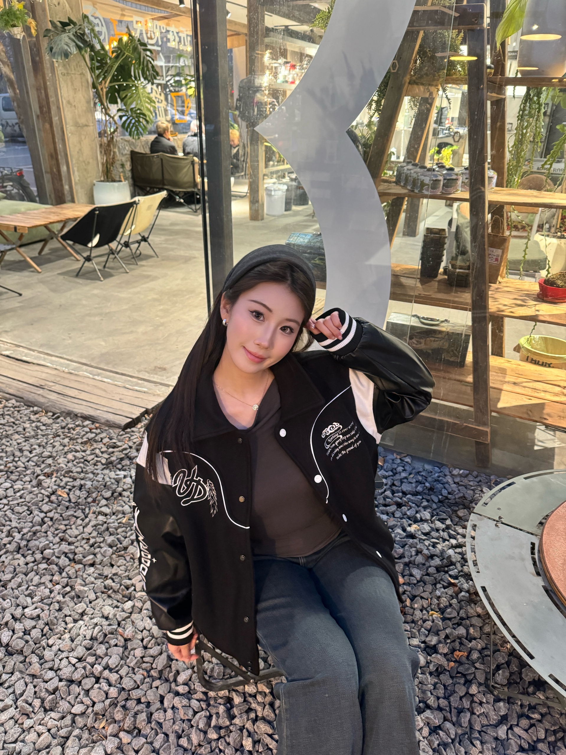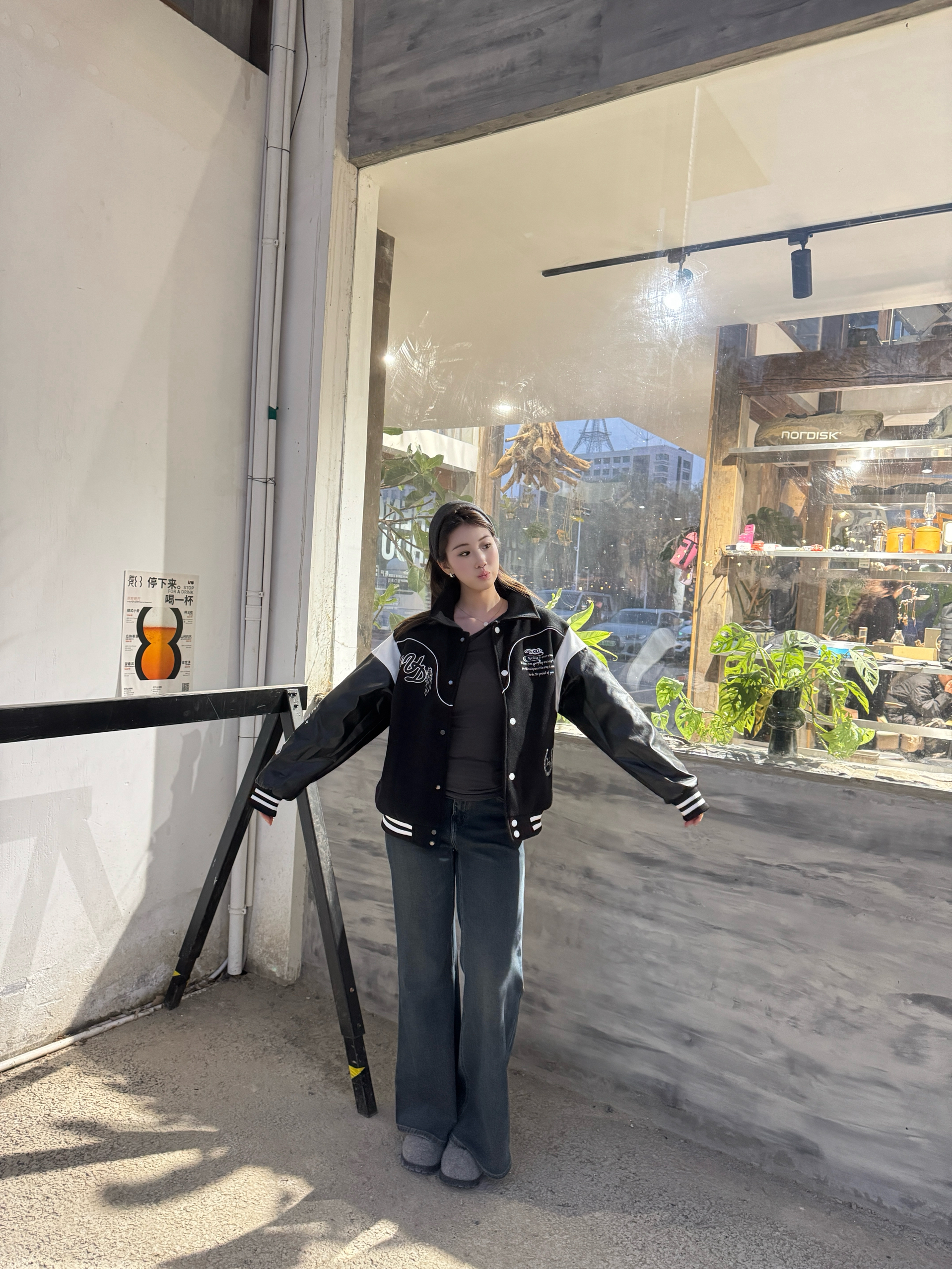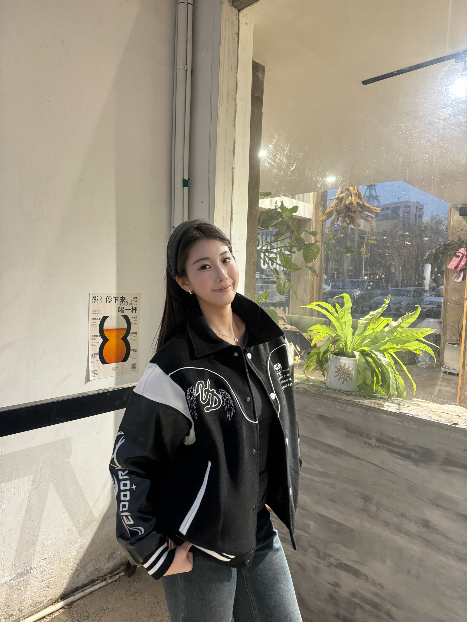 身高172cm体重55kg,穿L码刚好好!这件马年元素棒球服也太合我心意了💛!面料是毛呢拼皮质的,摸起来有质感还不硬,黑白撞色超经典,不管圣诞跨年穿都超有氛围。版型宽松不挑身材,马年元素的刺绣细节超精致,秋冬搭牛仔裤出门,保暖又显元气,小压痕完全不影响穿着,性价比绝了!