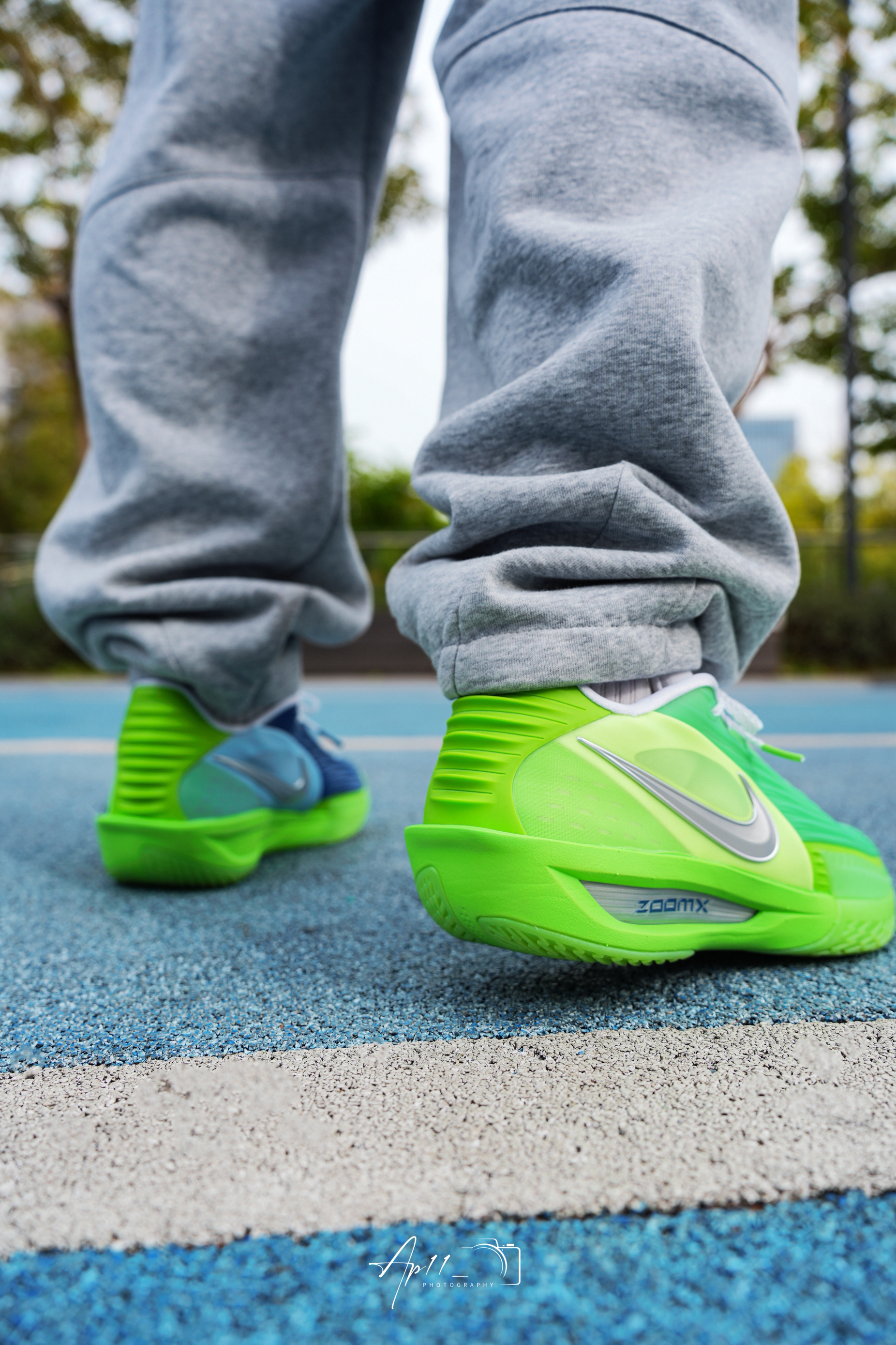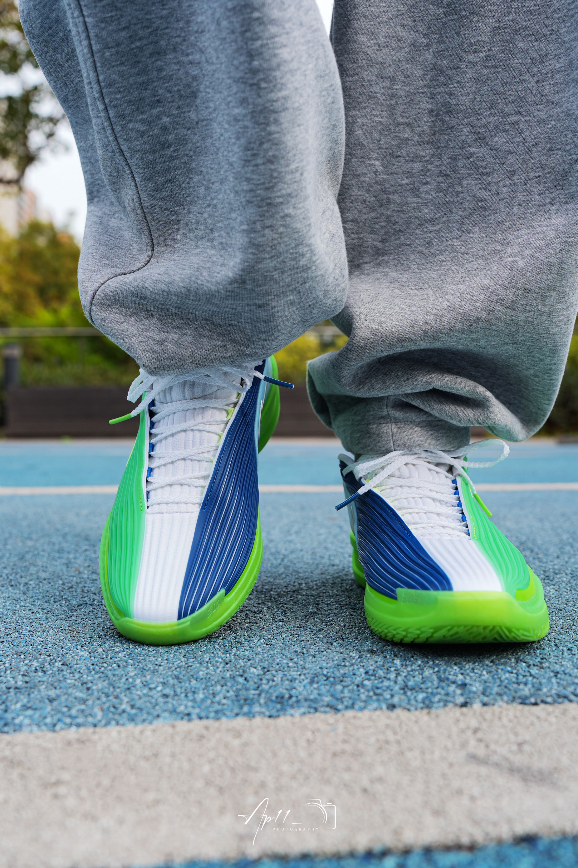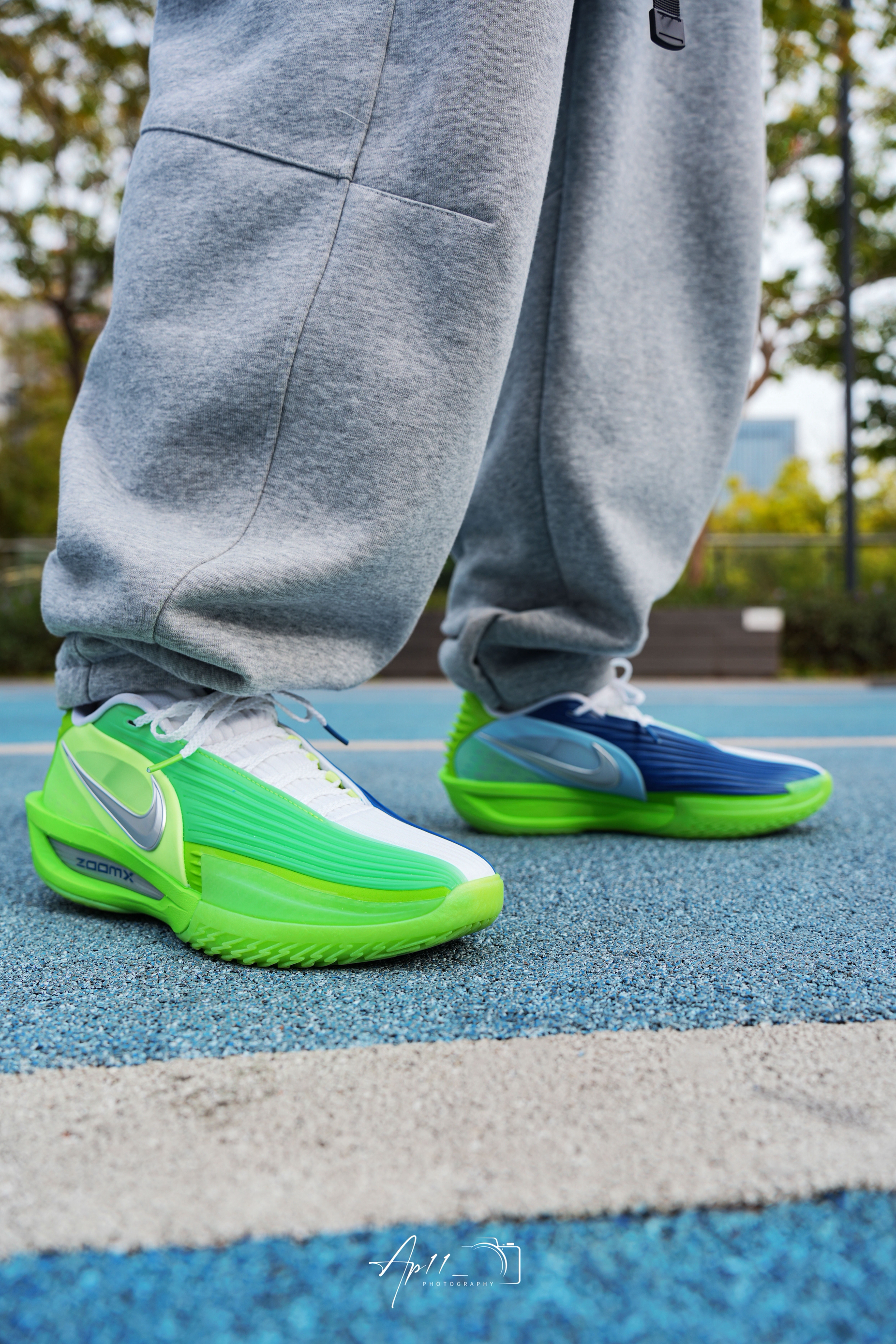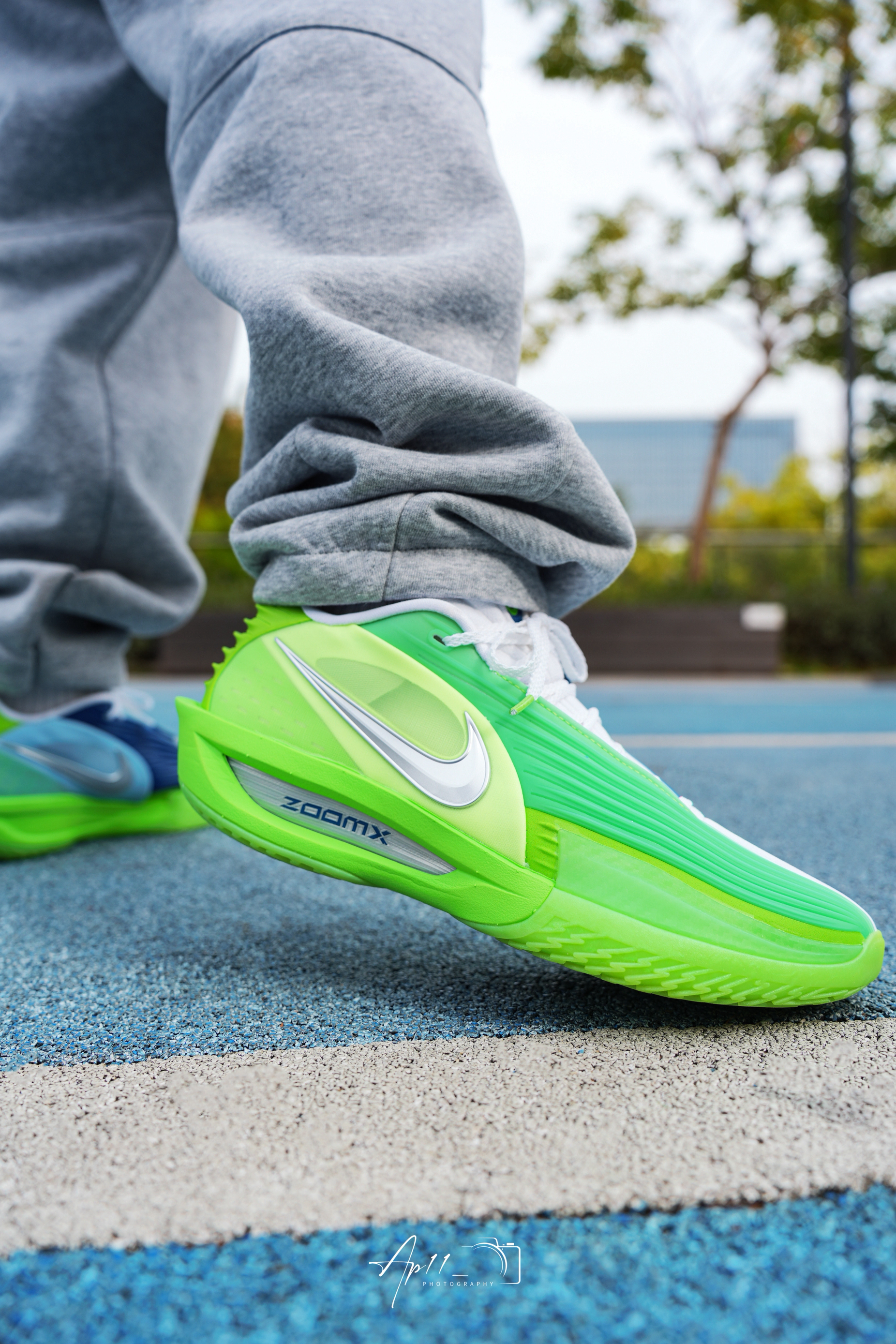 周末穿这双青柠+蓝白撞色的GT Cut 3 Turbo打野球,青柠渐变在球场上特别扎眼,搭灰卫裤出门也清爽。Zoom X中底反馈很轻,突破起步几乎没拖沓感,鞋面贴合脚踝但不磨后跟。没想到实战鞋的配色能这么出片,日常穿也顺理成章。