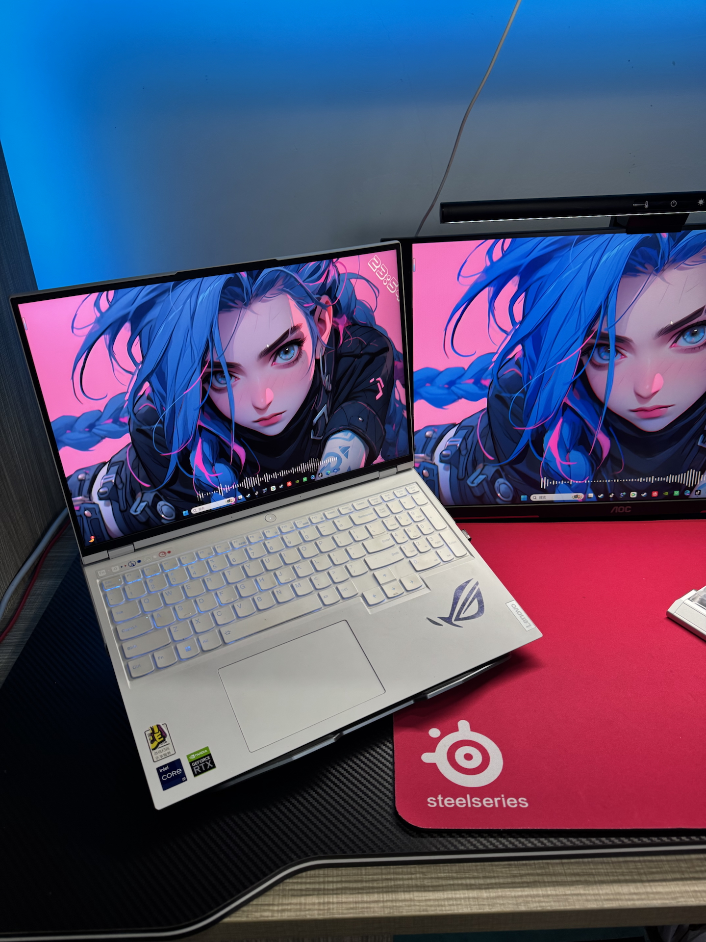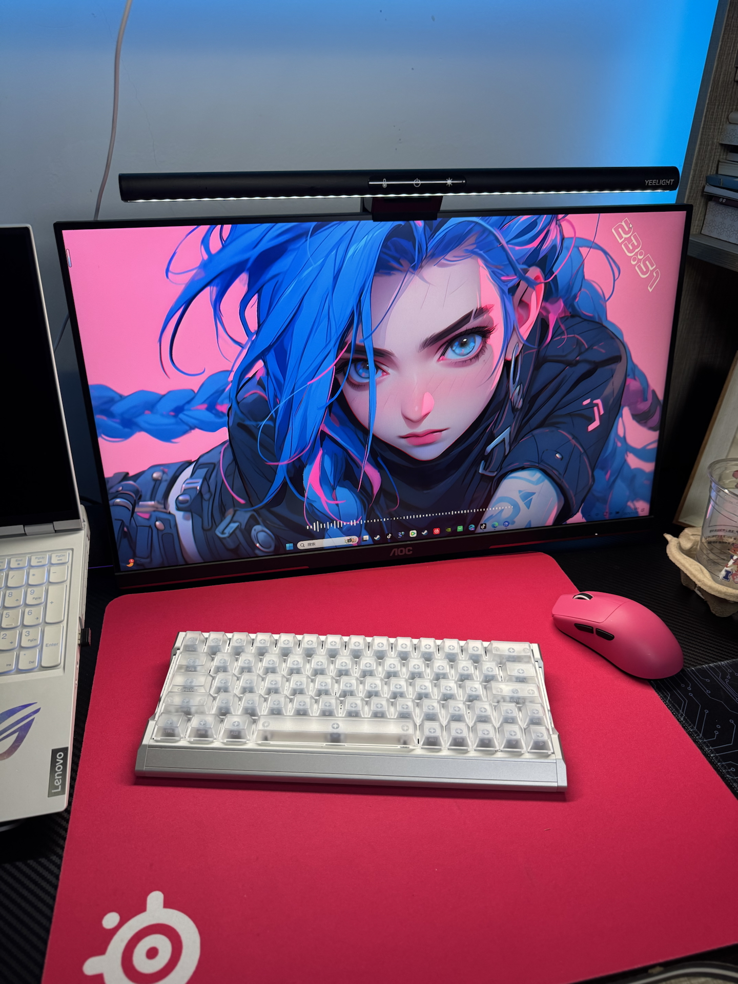 我平常喜欢捣鼓桌面搭配,这次把笔记本和显示屏连起来,搭配上键盘、鼠标这些,没台式也能搞出舒服的桌面~我选这个鼠标最开始是因为白色,标还能亮灯,特色挺足!不过要是能自定义配重就更好啦~整体搭配起来清一色水蓝色,酷酷的,分享给想搞桌面的友友们🥳~