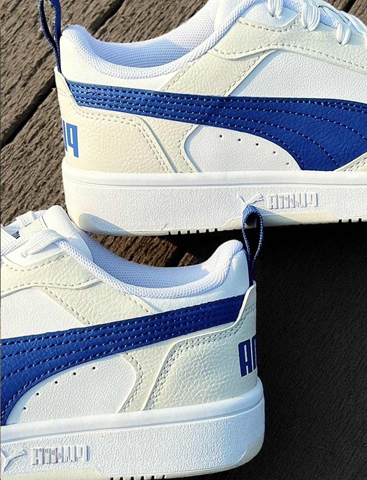 这双PUMA板鞋已经成为我近期出街频率最高的鞋款了 皮质确实柔软,上脚第一天就没有磨脚困扰,走路时前掌弯曲自然,通勤暴走无压力 鞋舌填充厚度适中,系紧鞋带不会有压迫感,蓝色侧边条纹给简约设计增添亮点, 3cm左右的厚鞋底悄悄增高,橡胶底防滑纹路在日常瓷砖,柏油路面表现稳妥 实测搭配直筒牛仔裤可露鞋侧全貌,配运动裤能突出蓝色装饰条,黑白蓝配色属于闭眼穿都不出错的组合 白色皮质确实需要打理,...