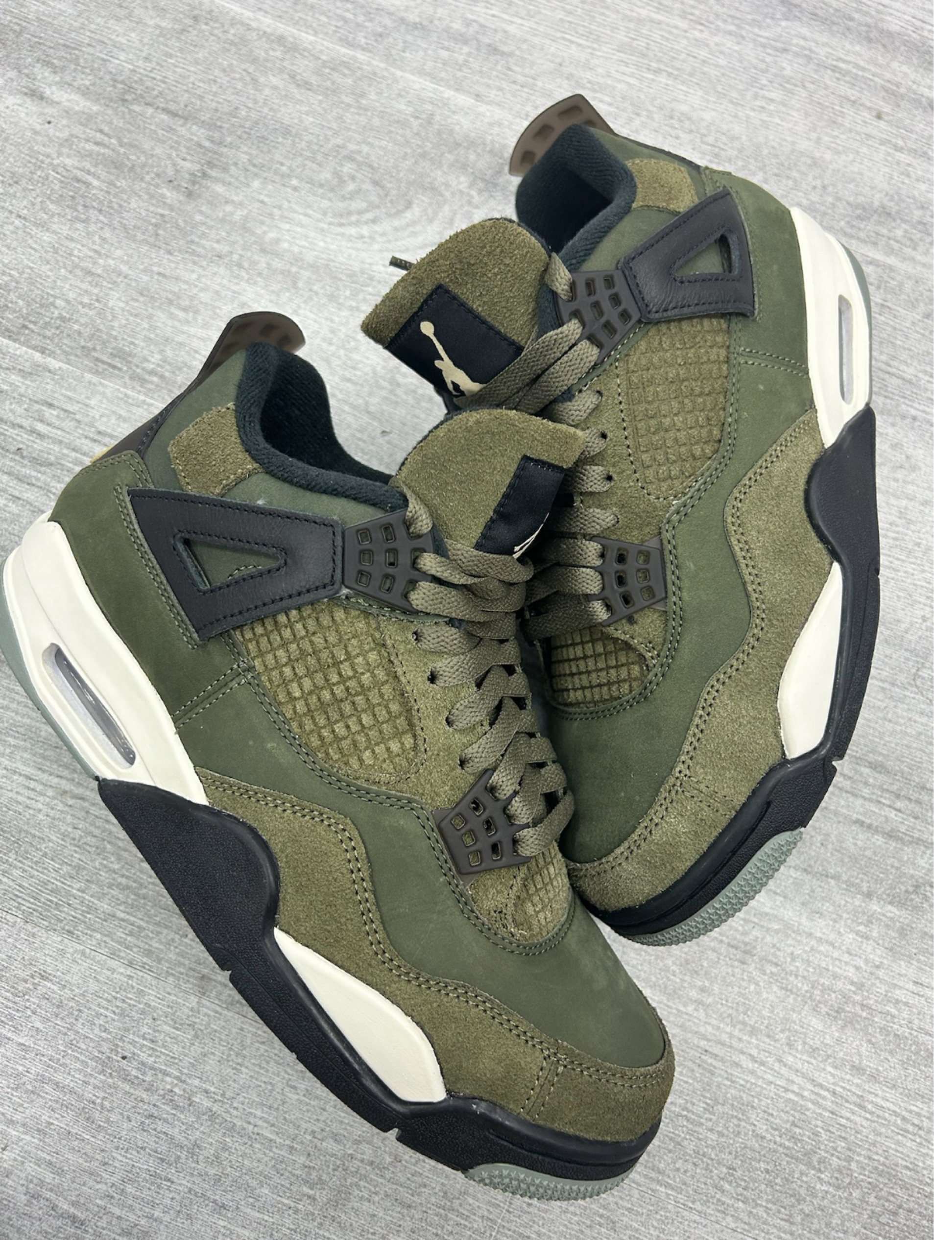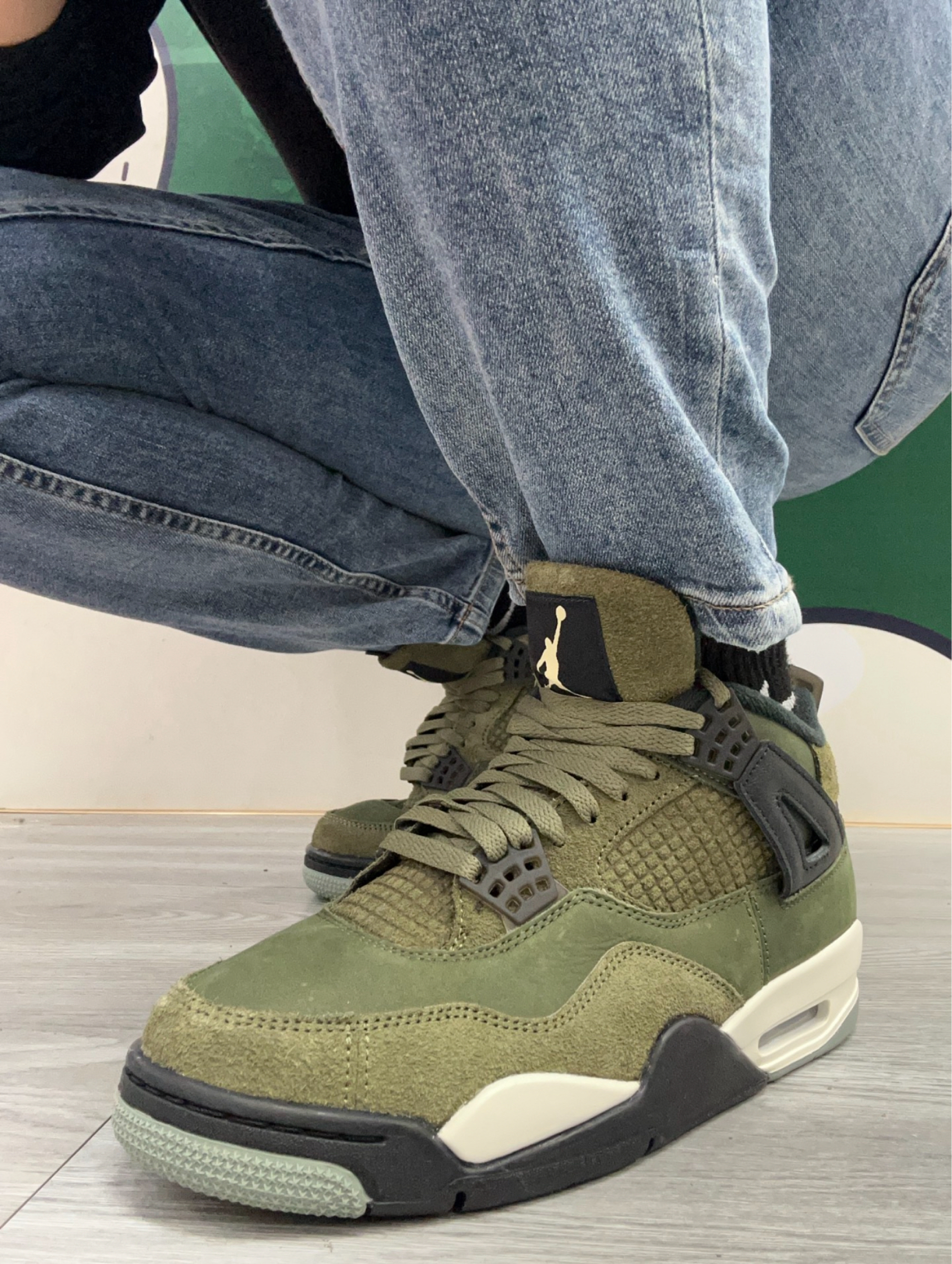 今天上脚出街的球鞋是Air Jordan 4 Olive🫒这也是我非常喜欢的一款AJ穿搭版型,也是Jordan正代中最具代表性的调色盘鞋款之一,虽然整体有着联名平替款的配色但其实这双鞋还是很有自己的风格,要知道AJ4的鞋型向来没有冷门鞋款,但做工先相对一般目前的价格有所回升,我个人还是非常看好这双鞋无论是颜值和搭配属性都很高。