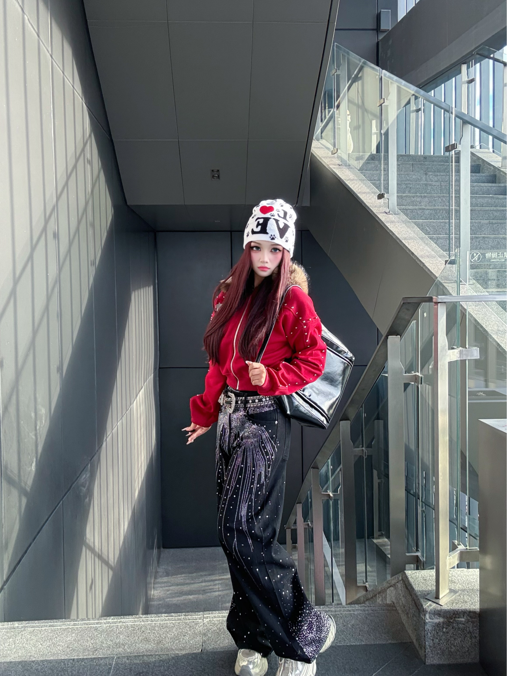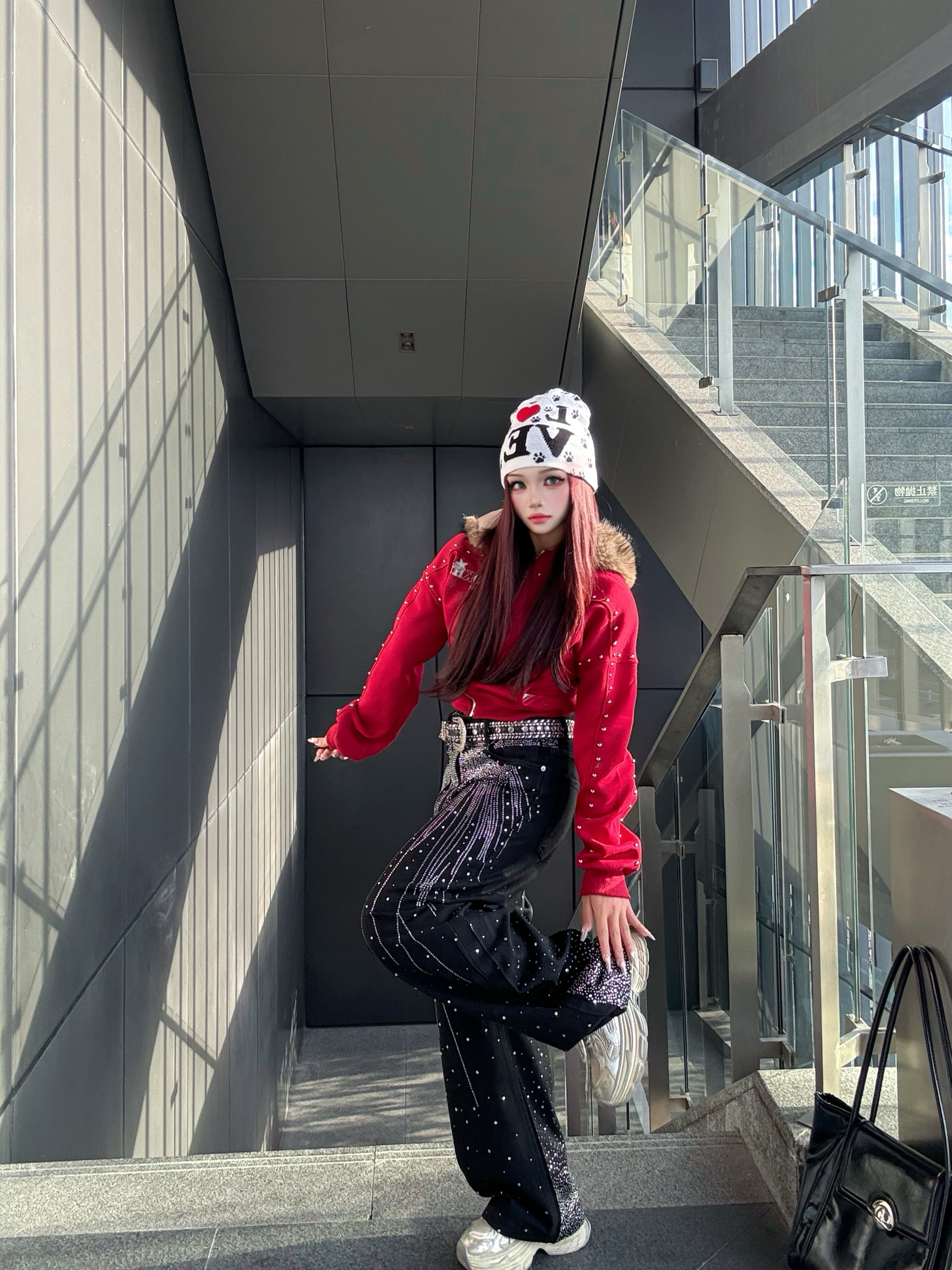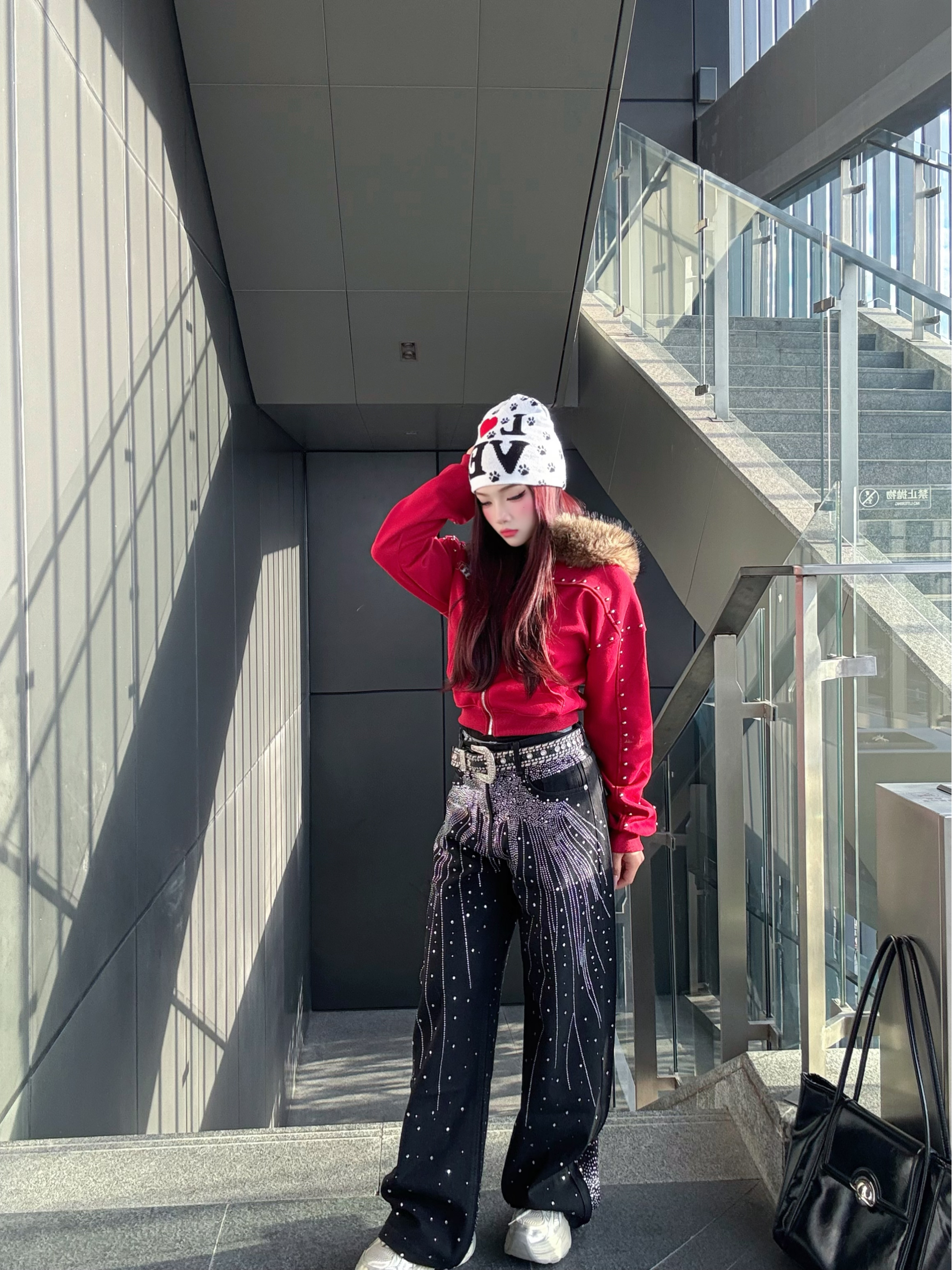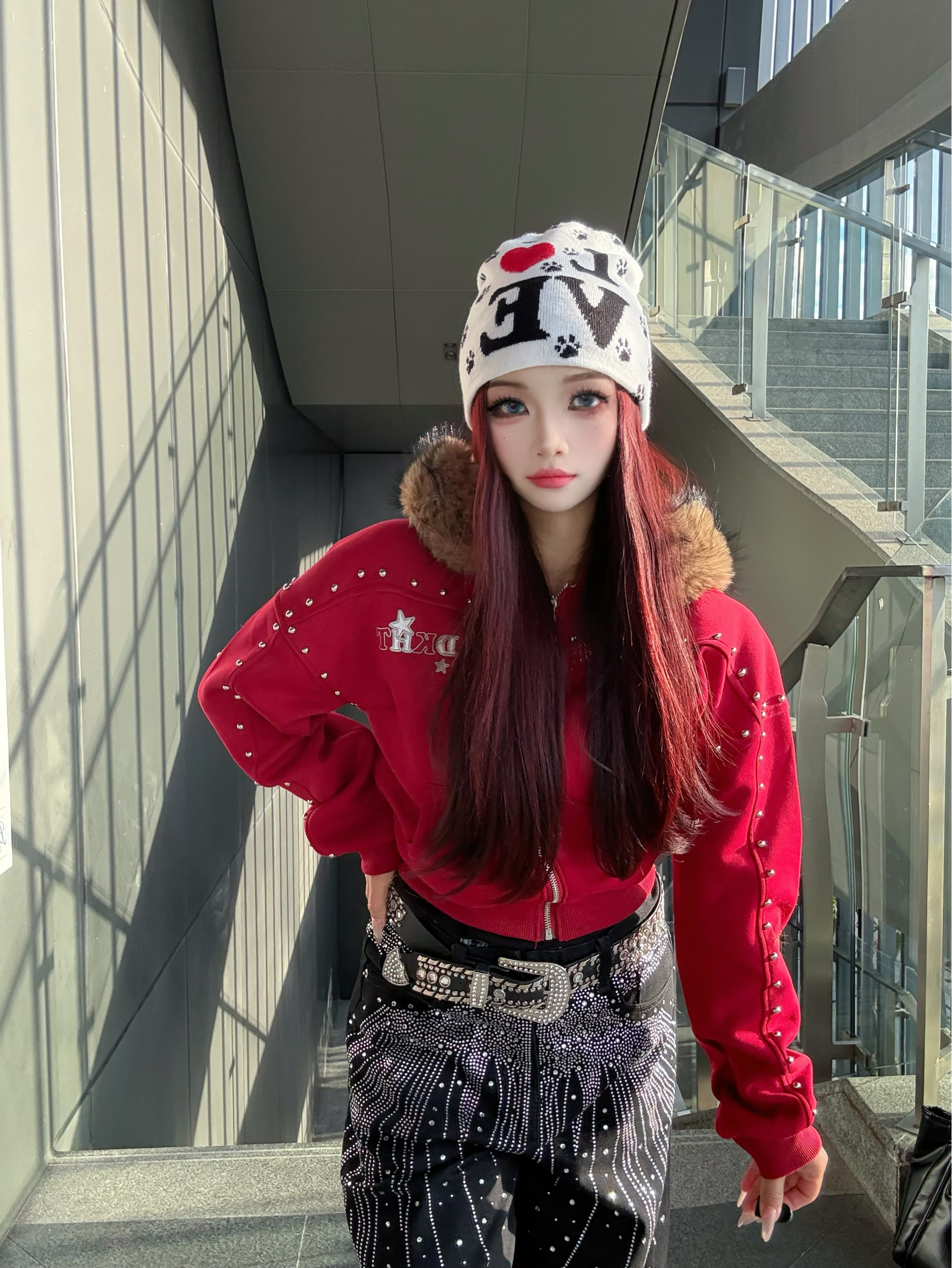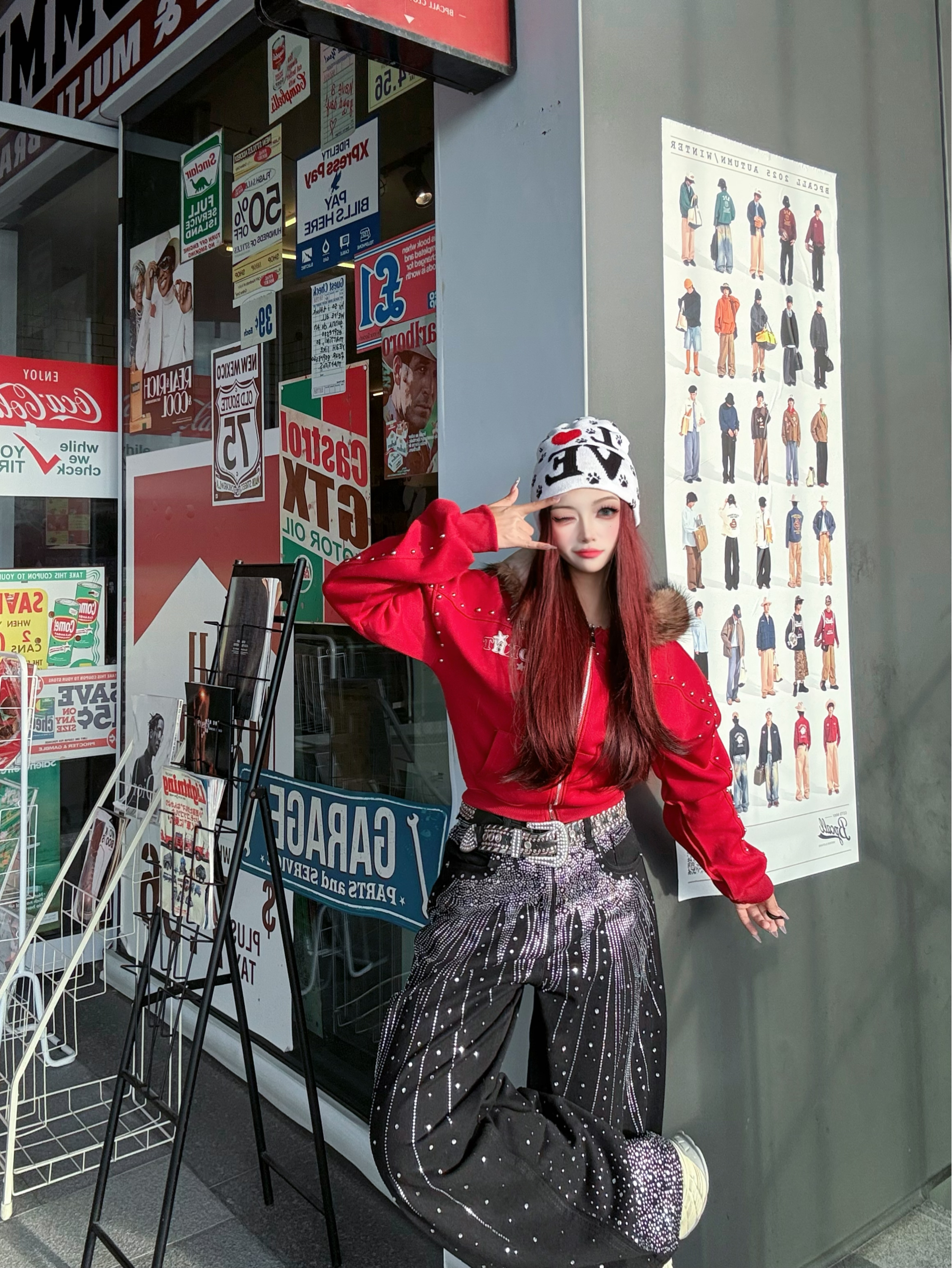 这套美式辣妹穿搭绝绝子!🥰🤩 红色带钻连帽外套超吸睛,闪钻阔腿裤个性又时髦 开学穿这套直接slay全场,面料版型都很抗打 日常出街、校园打卡都绝配~😻😻