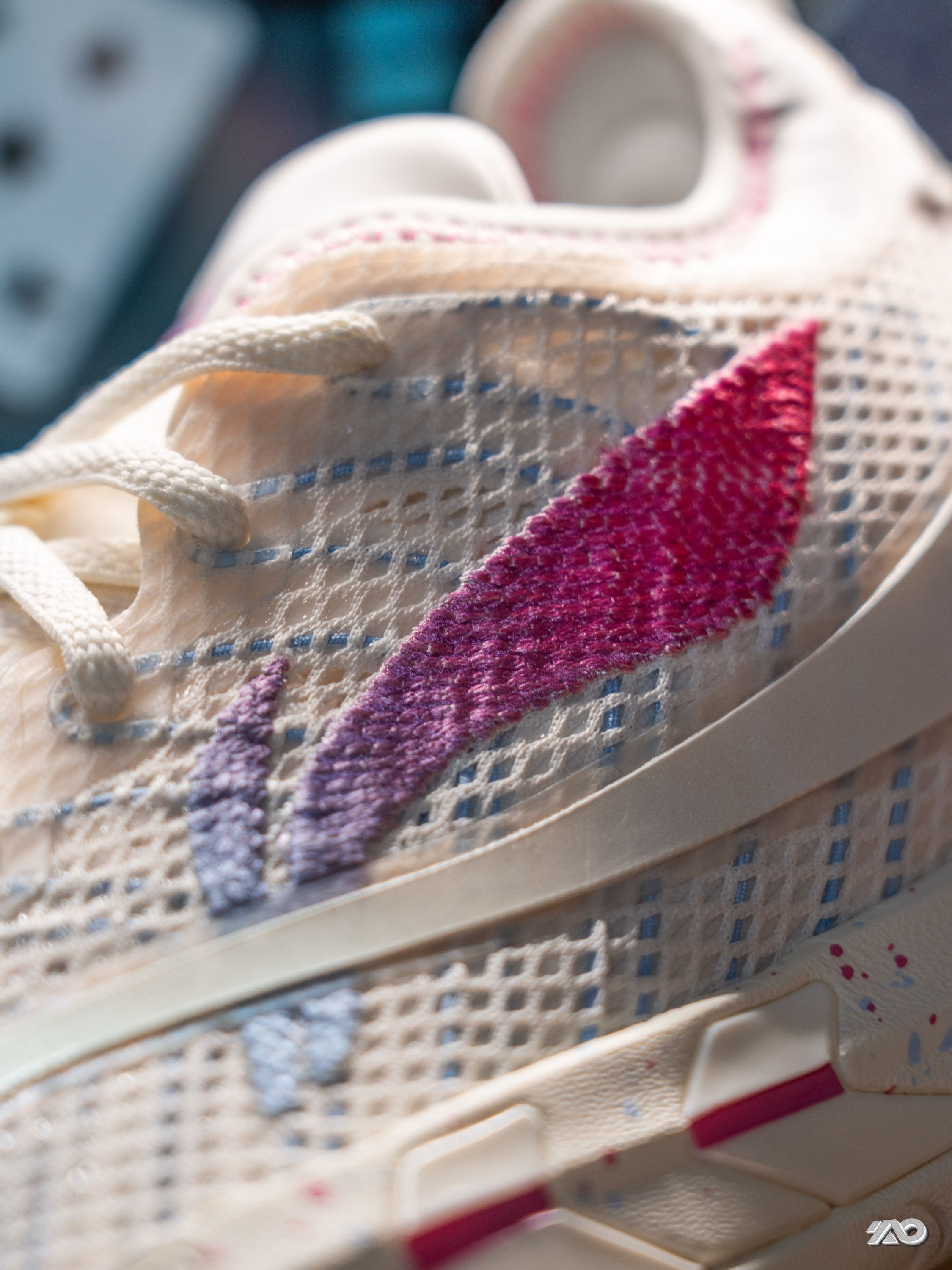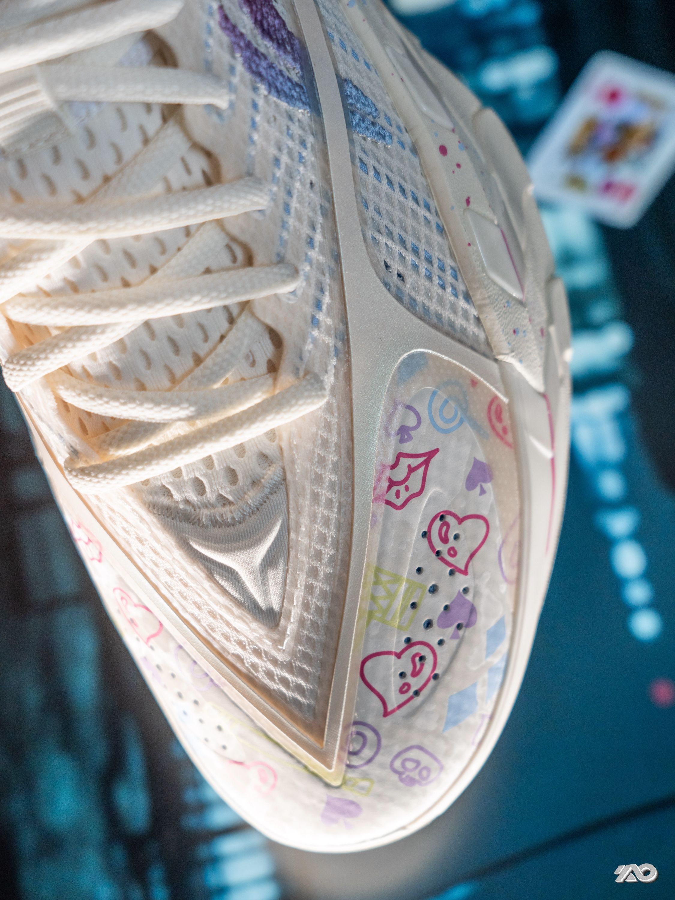 首发的游击2S, 就是那个带夜光的黑绿配色, 跟生物重组的概念非常契合。 而今天跟朋友们分享的这双“小丑女”配色, 可以说完全换了种风格, 鞋子粉色和蓝色的色调, 鞋头部分的手绘图案, 也都是小丑女的代表元素: 比如棒棒糖、扑克牌。 全掌超䨻,回弹很好, 外底升级了DBR超耐磨稀土橡胶大底, 室内外有浮灰的场地上, 抓地和耐磨都非常优秀, 步态引导也很正, 适配正常或微宽的脚型。 如果你是喜欢...