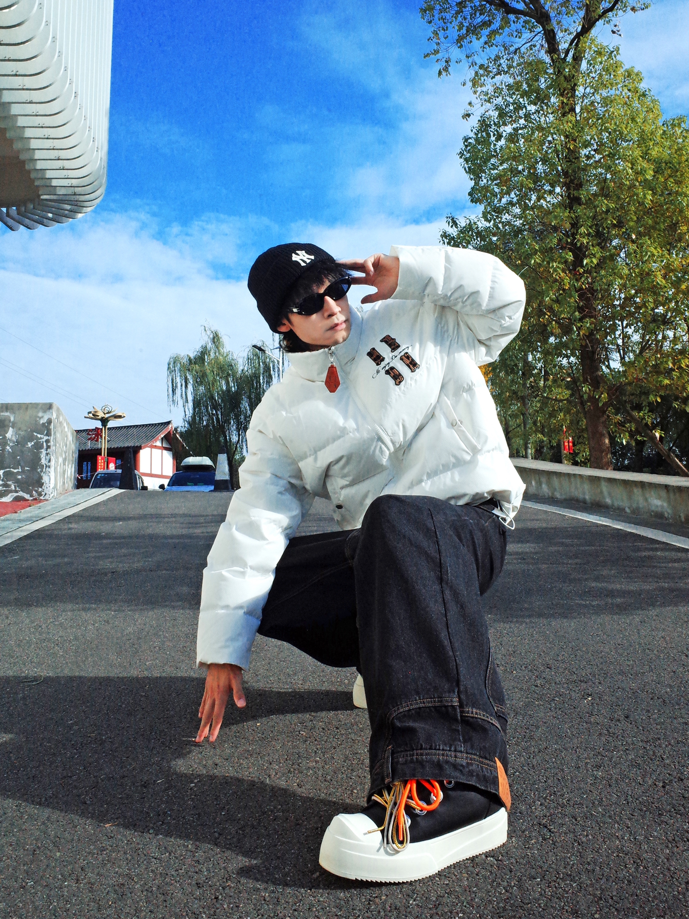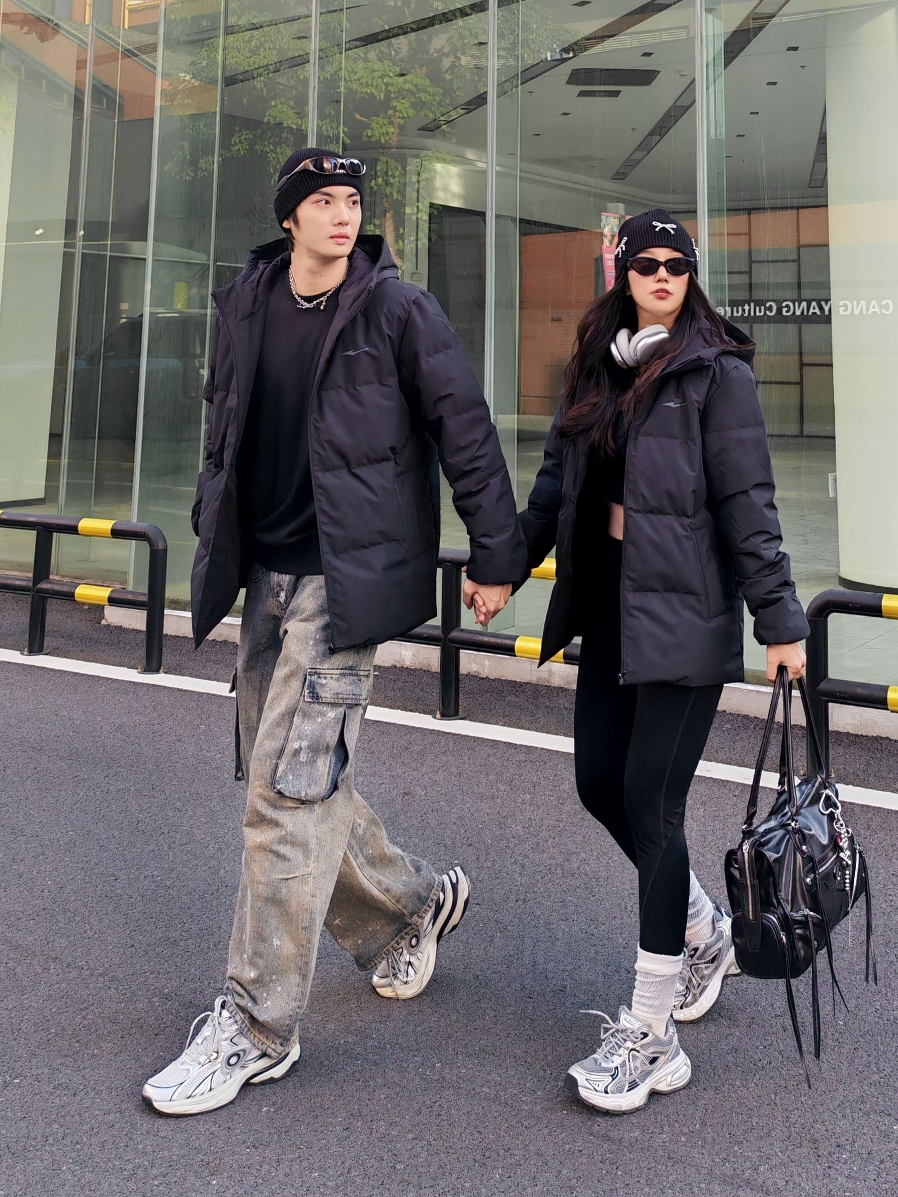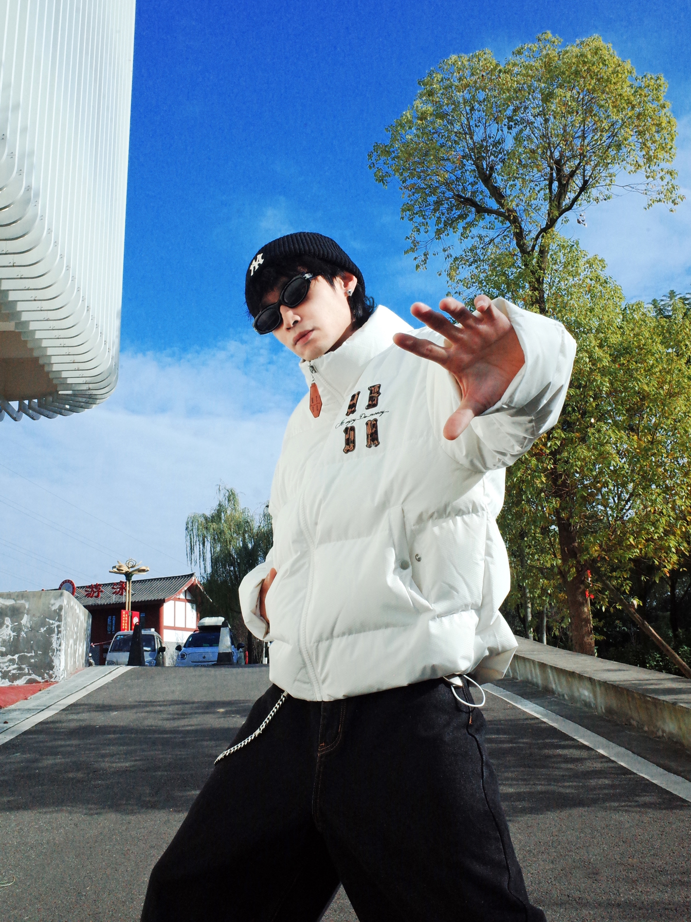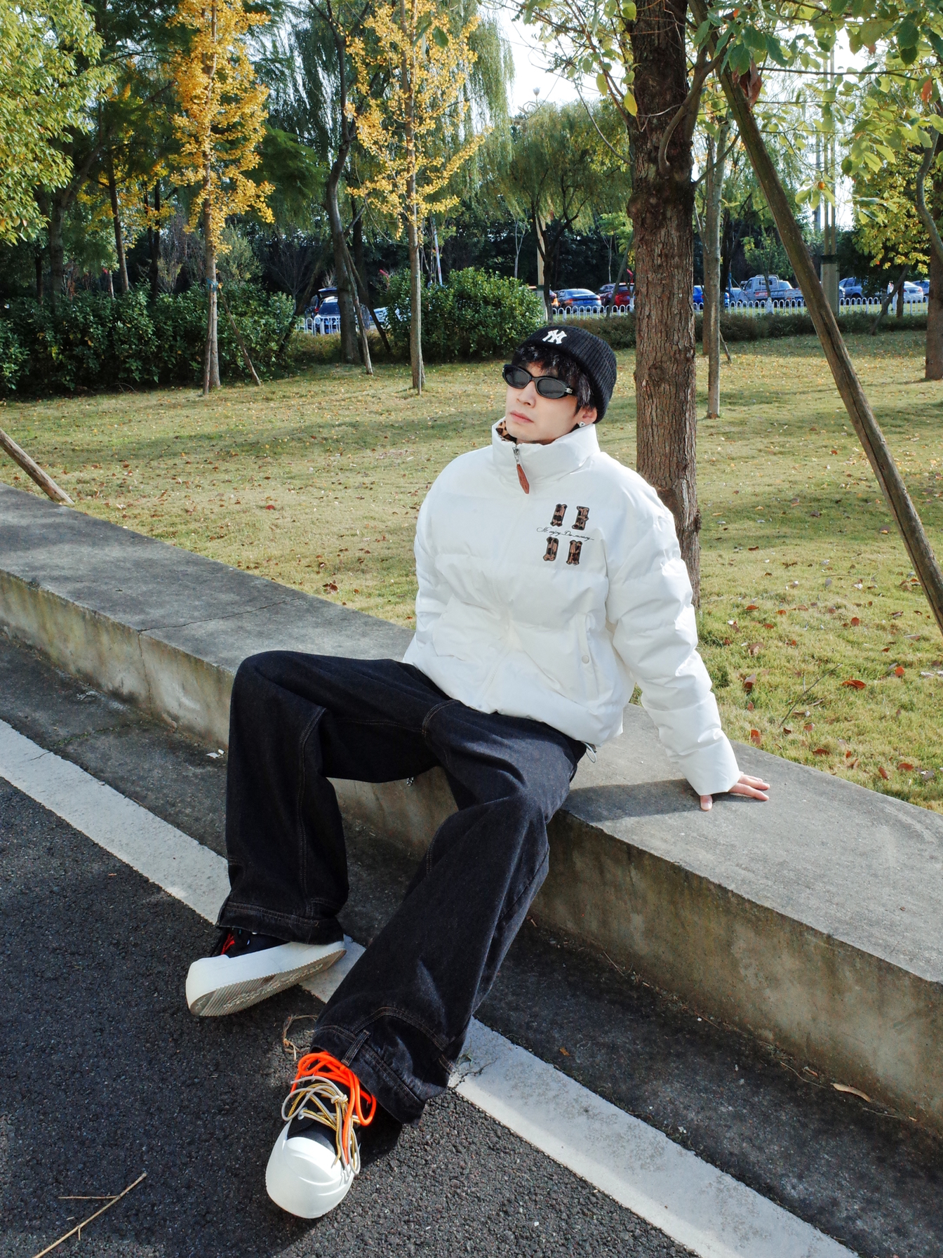 不知道穿什么的时候我会选择🦓黑白配! ◾️ 上身MEDM的白色面包羽绒服, 蓬蓬的,冬天穿还是挺保暖的! 前后都有个性的🐆豹纹字母, 宽松的版型自带随意气质~ ◾️ 下身可以搭配黑色的牛仔裤, 用黑白板鞋呼应收尾。 配饰上选择裤链和墨镜点缀, 轻松get街头感✨