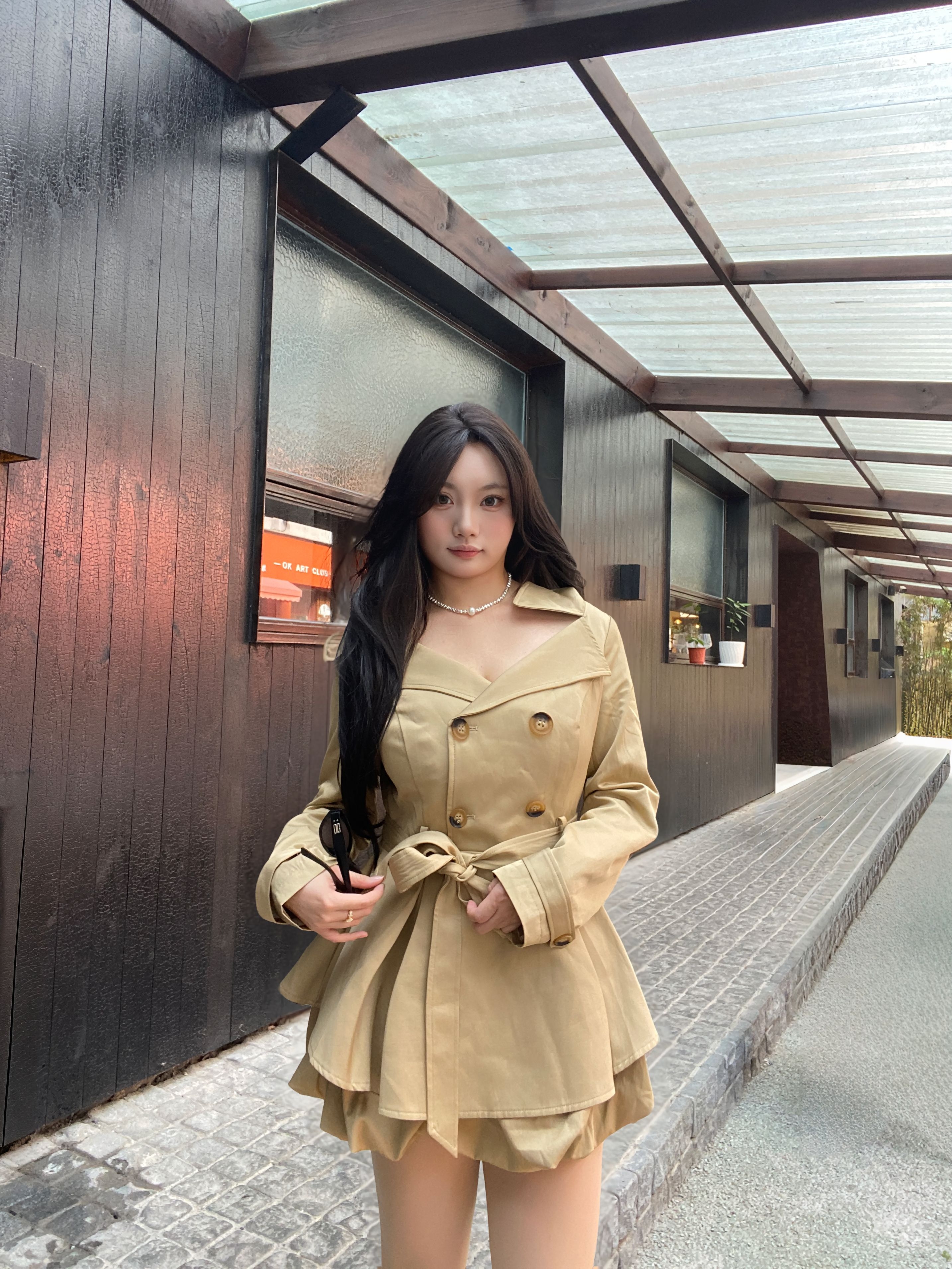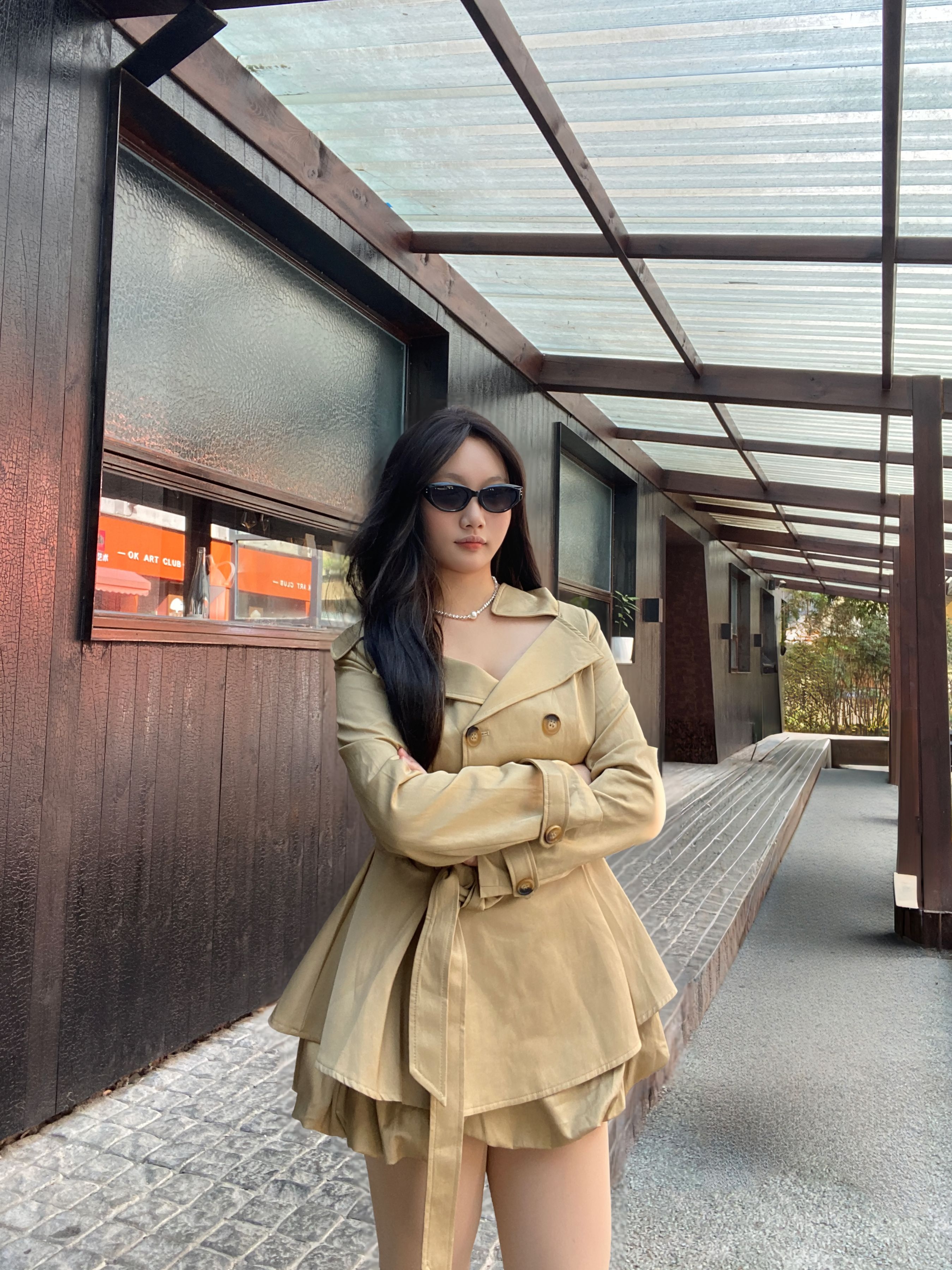 卡其色风衣裙真的是秋日氛围感神器!收腰设计掐出腰线,裙摆的百褶层次感超足,甜妹和酷女孩的风格都能hold住。上身很保暖舒服,风衣短款设计更显性感~走在街上回头率直接拉满~这套穿搭把优雅和甜酷平衡得恰到好处,秋日出街这么穿,氛围感直接拉满