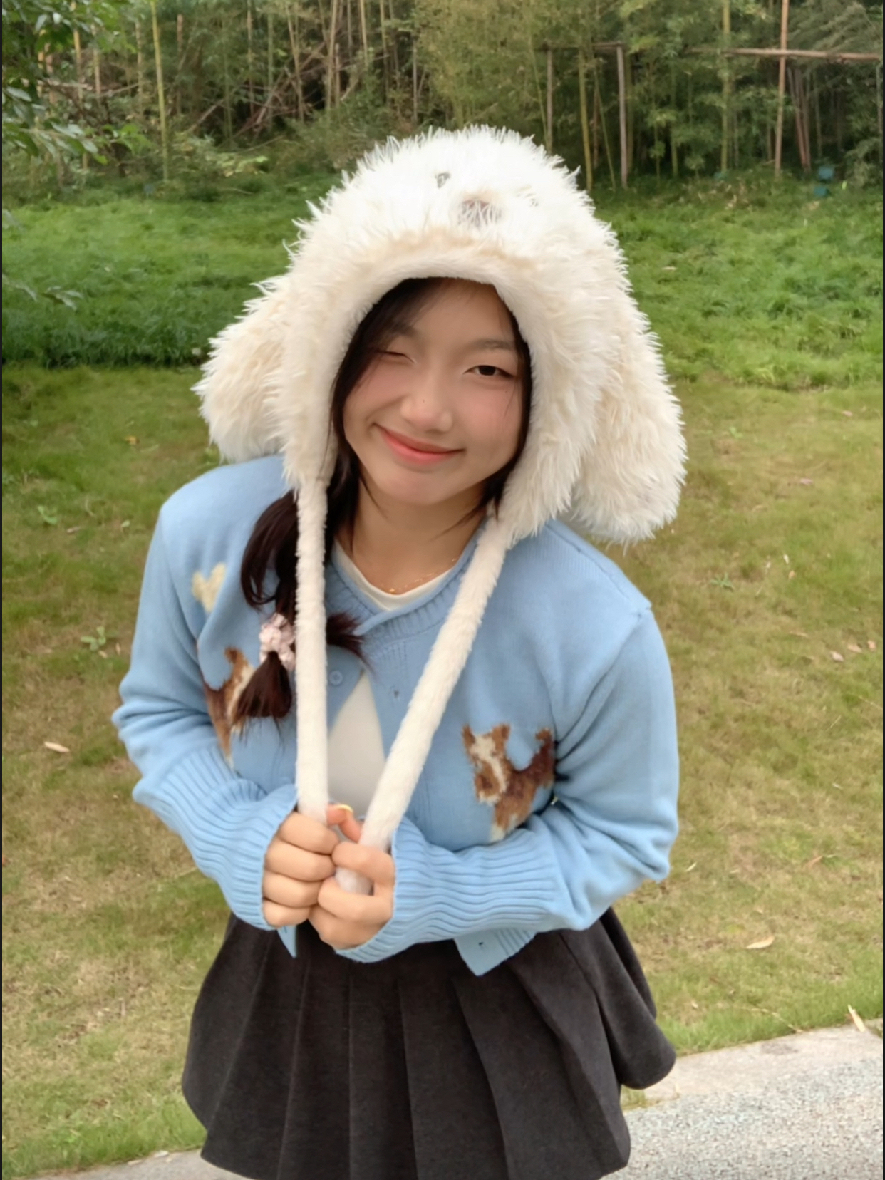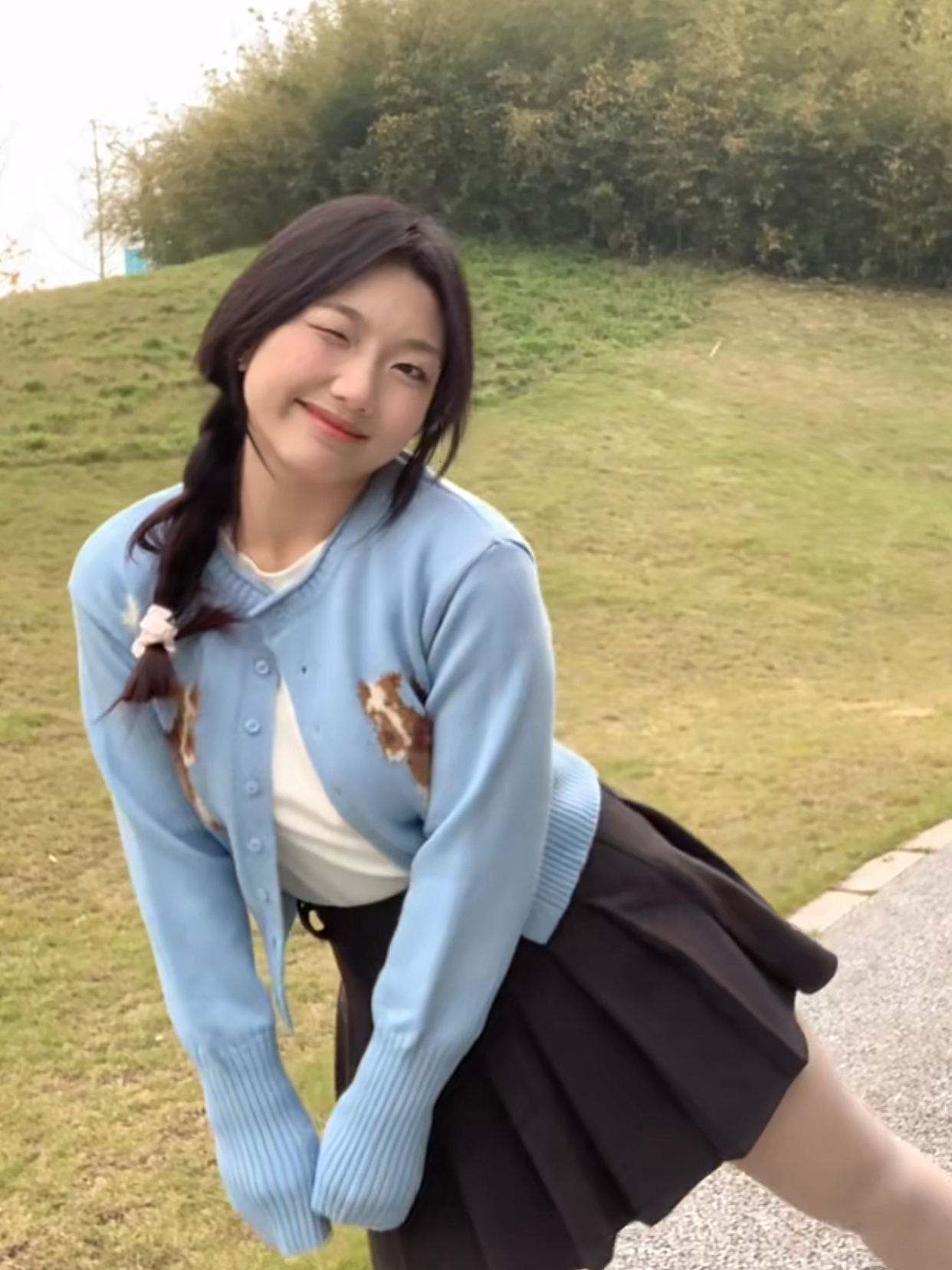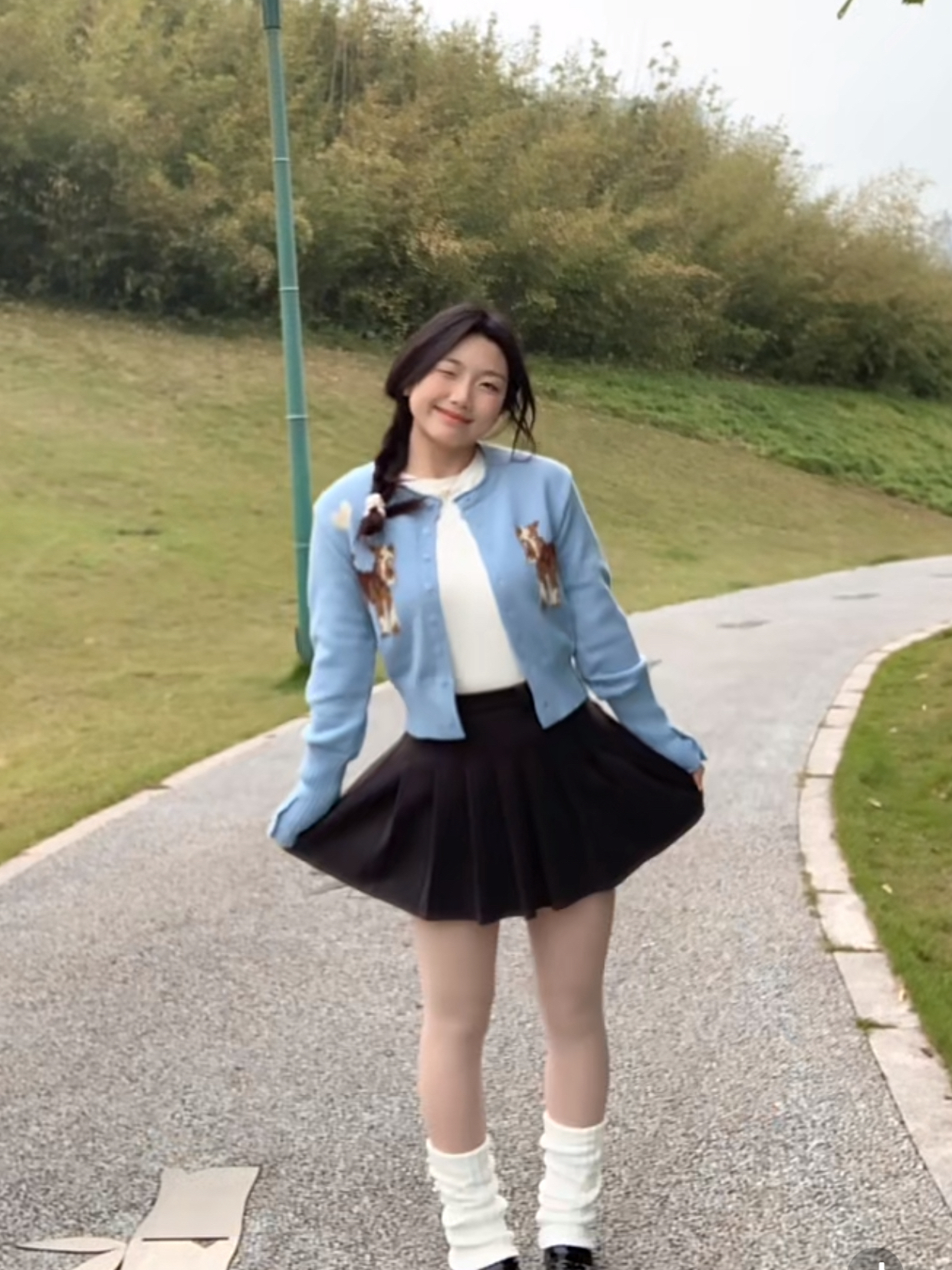 他的胸前是有小狗狗的图案 🐶 整体是修身的~ 搭配百褶裙或者牛仔裤都很好看 就很有活力的感觉🐳 穿起来显的人特别瘦