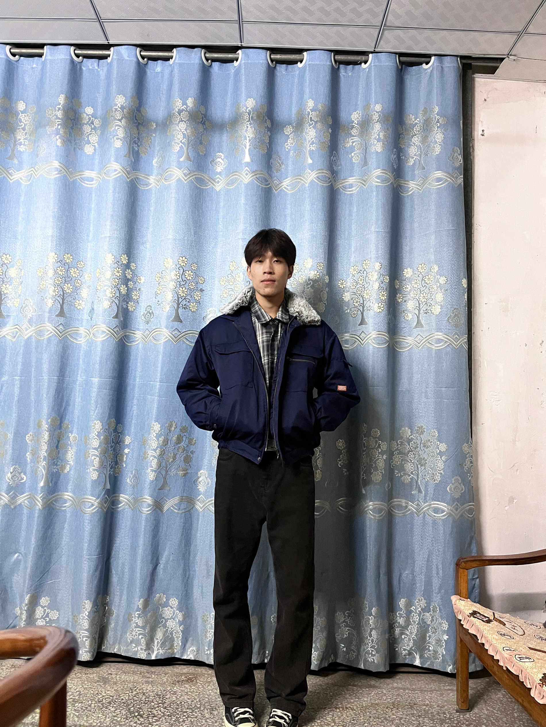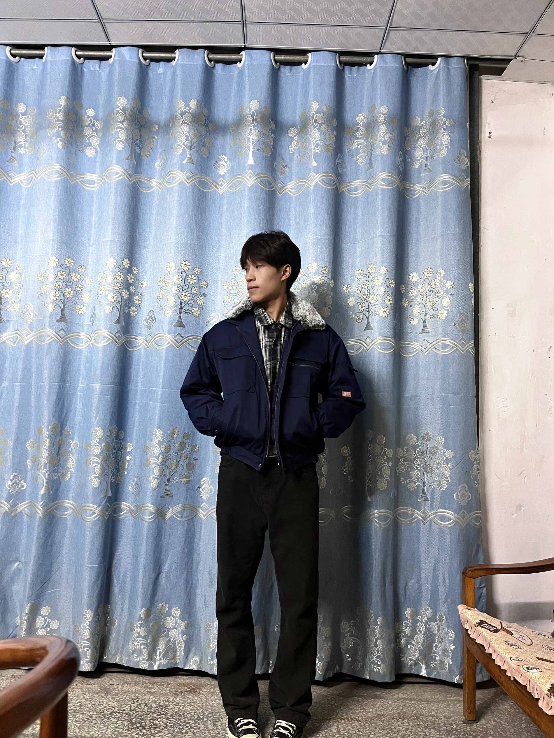 淘到一件短款棒球服,超级显腿长 款式也非常的经典,棒球服也很厚实,保暖也不用多少的暖和,圆领做了可以拆卸的毛领,袖子是做了二层袖子的,可以很好的防风,拉链做的是ykk的 这件棒球服搭配卫衣可以更好的展现你的身材比例,今天我搭配的一条黑色的微喇牛仔裤,上身内搭搭了一个格子衬衫 #交出我的体面内搭 #男大学生冬天OOTD #converse匡威