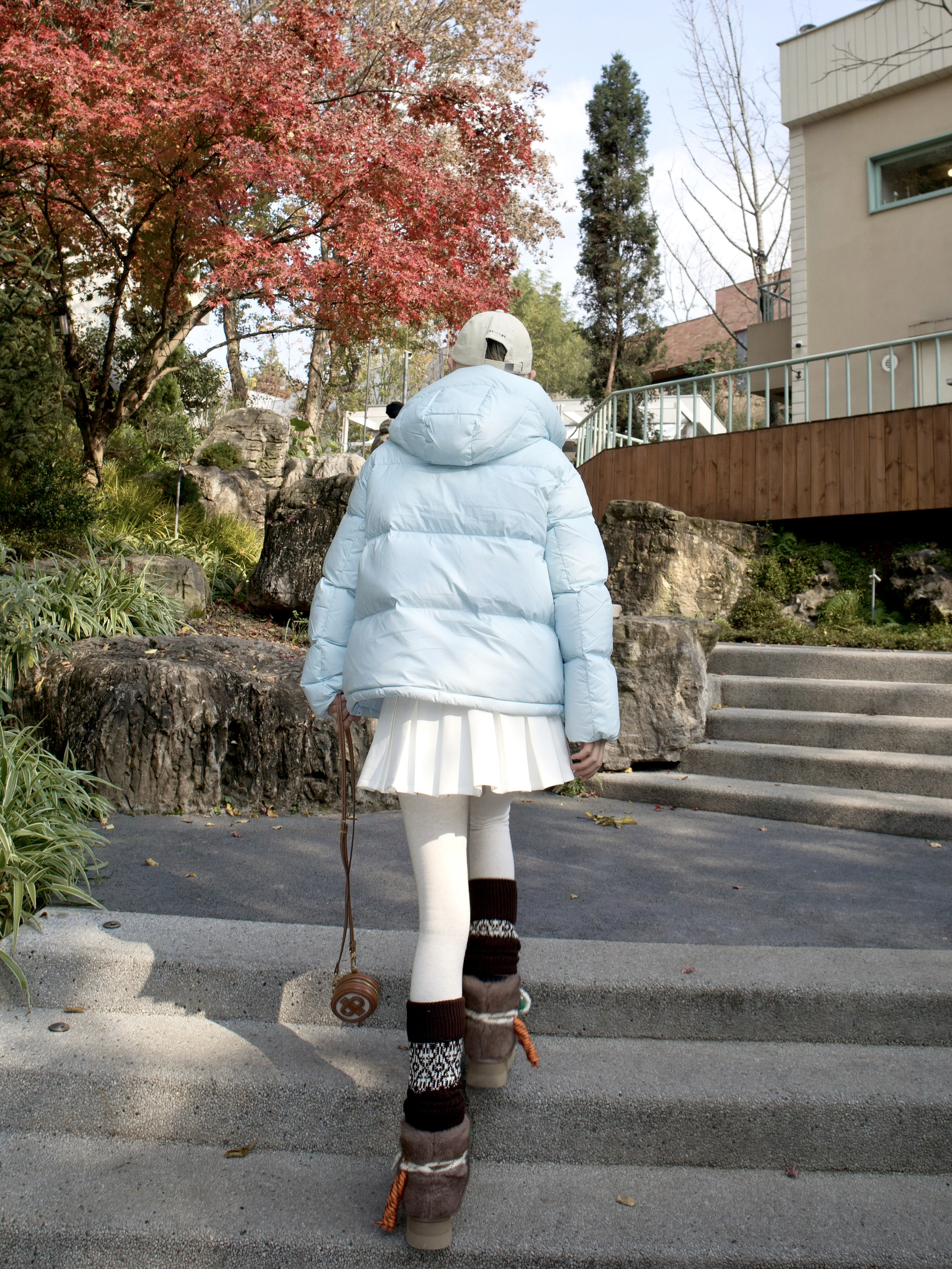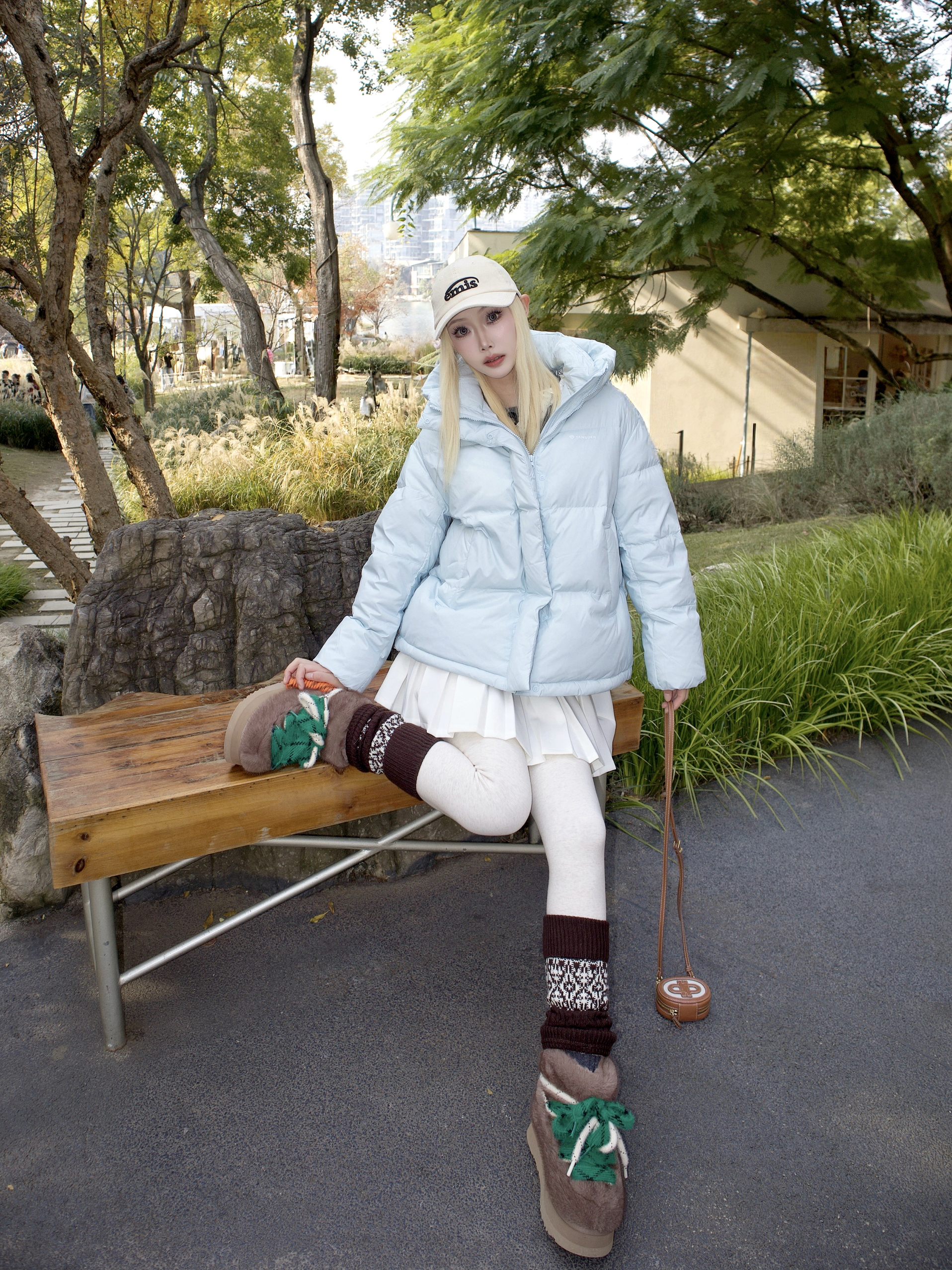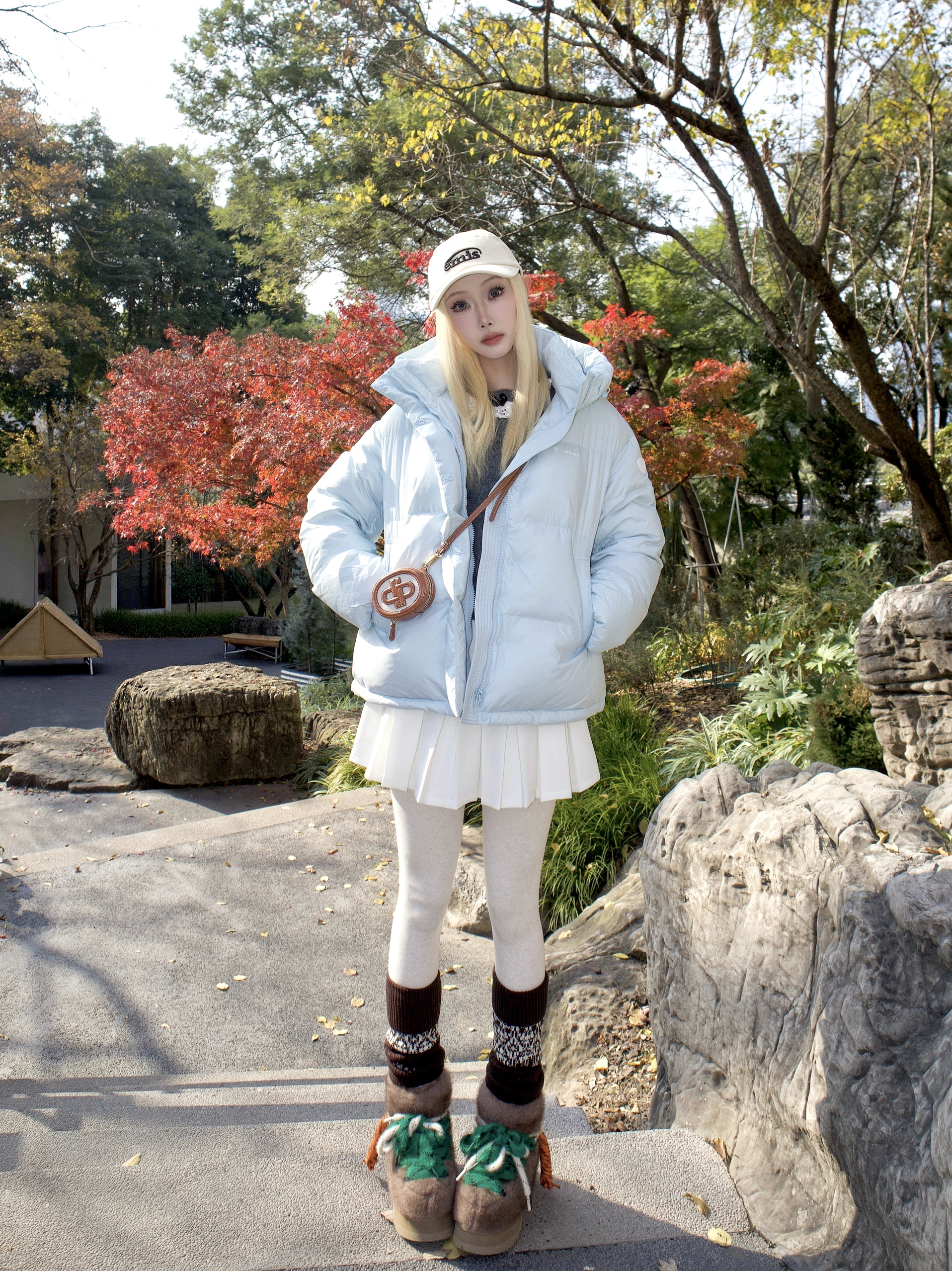 泡芙蓝羽绒服一上身 朋友说像把晴朗天空穿在身上 泡芙廓形蓬得刚刚好 ☁️不显肿反而有点萌 落肩设计弱化肩线 里面塞厚毛衣也无压力 配白色百褶裙太妙了🍃 燕麦色连裤袜一穿 保暖还显温柔 费尔岛袜套在脚踝堆出花纹 和栗子色雪地靴配成一套👢 原来冬天不一定非要黑白灰 当个浅蓝色的泡芙 在寒风里也能甜得理直气壮✨