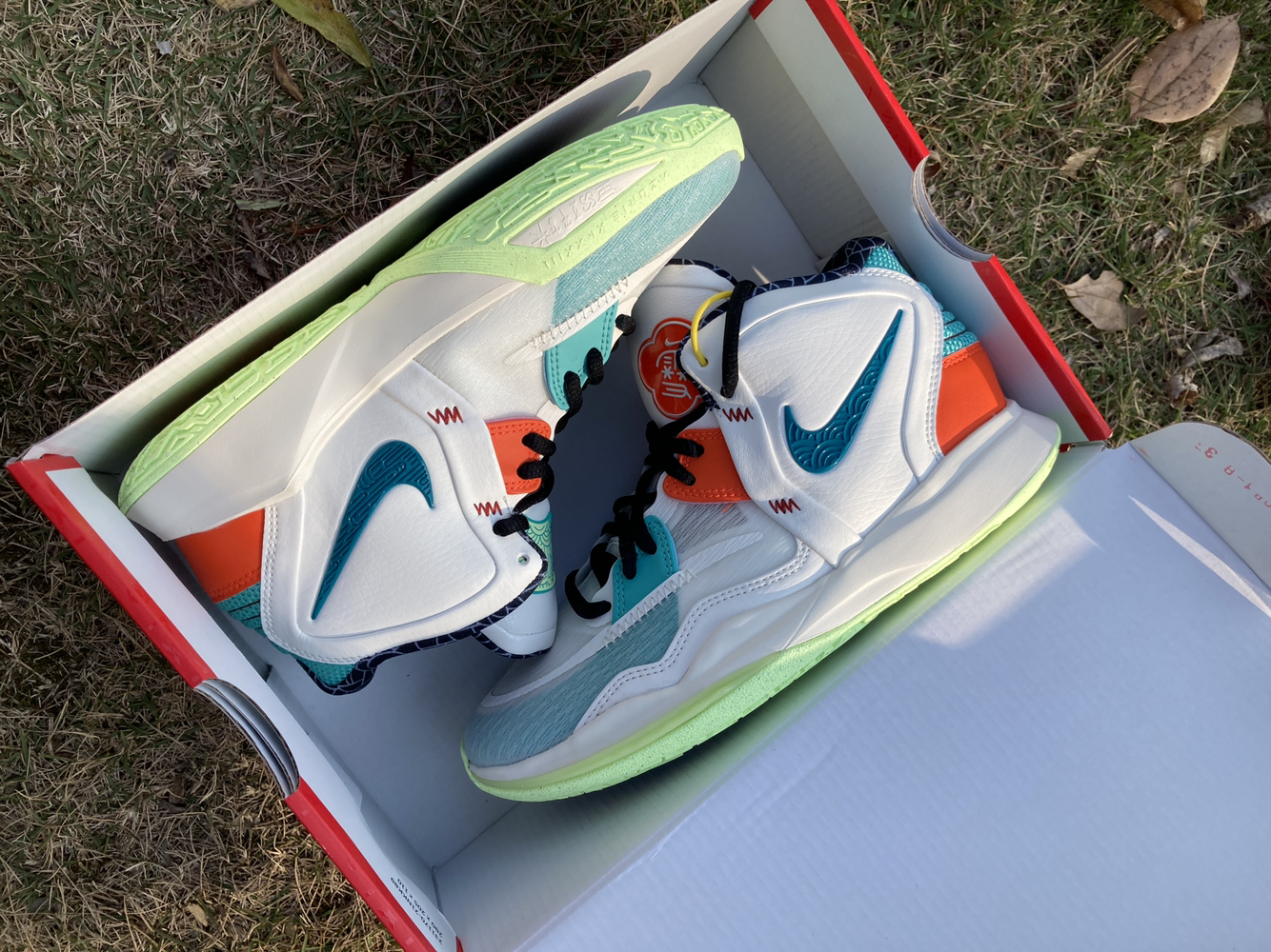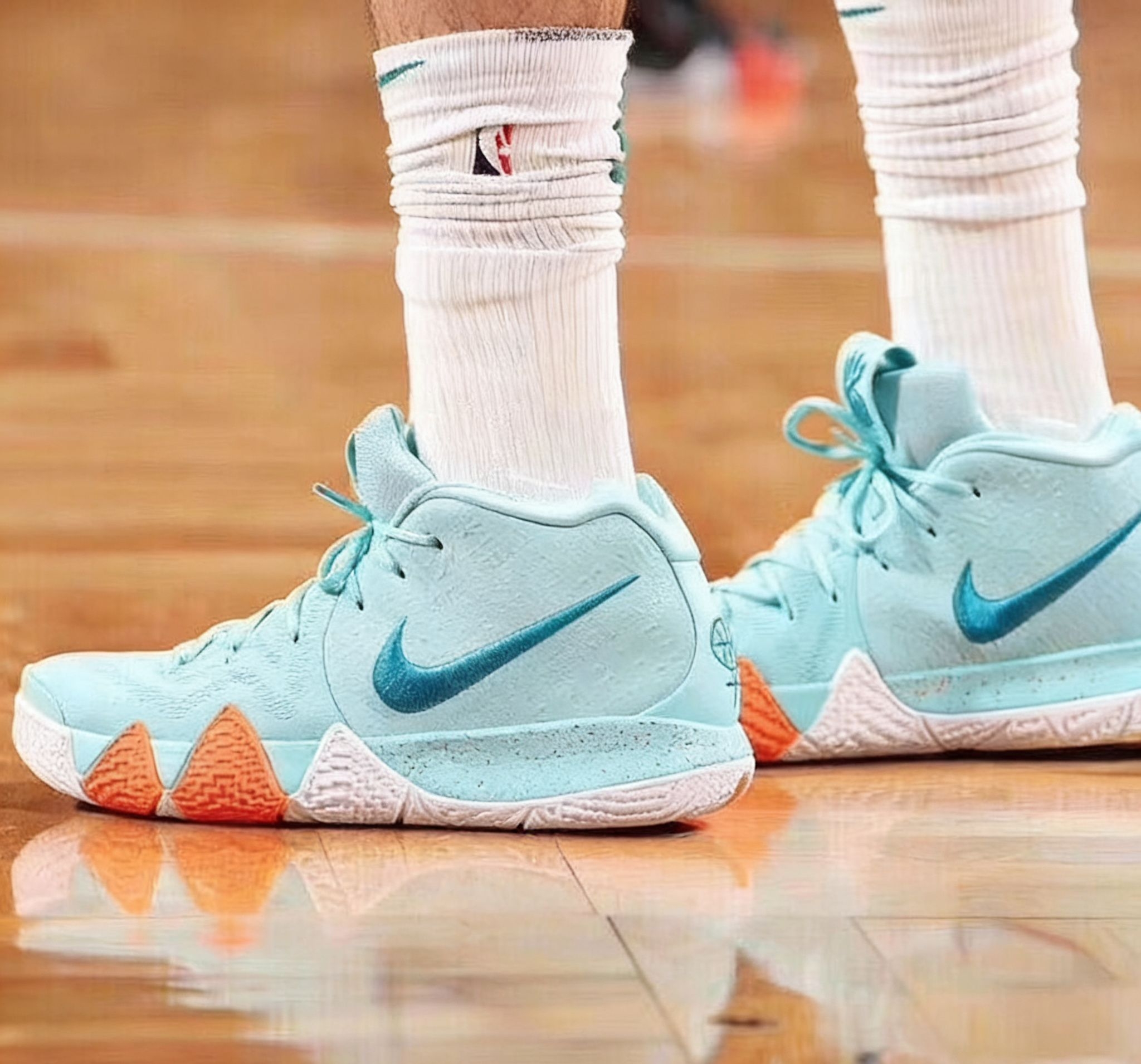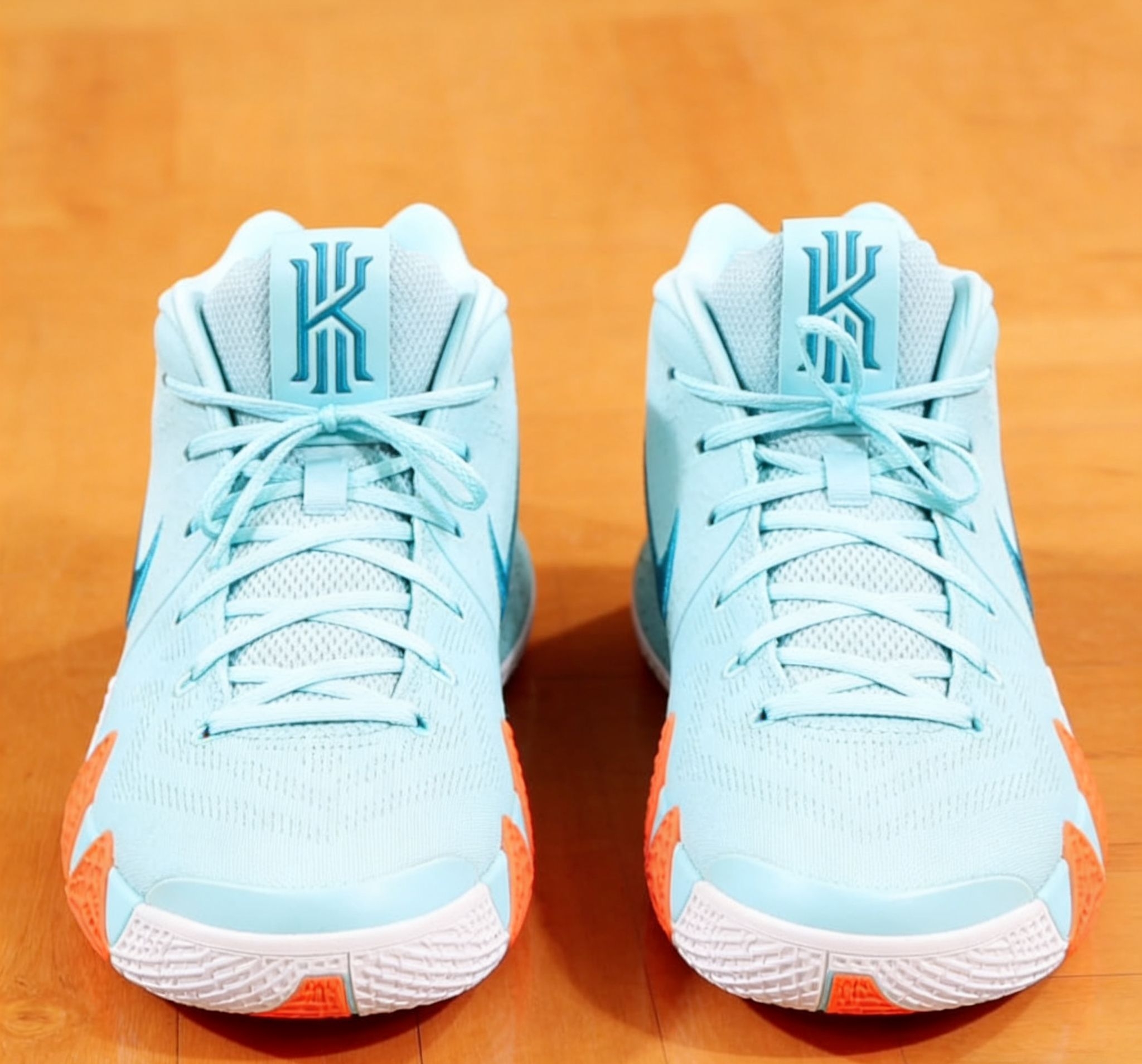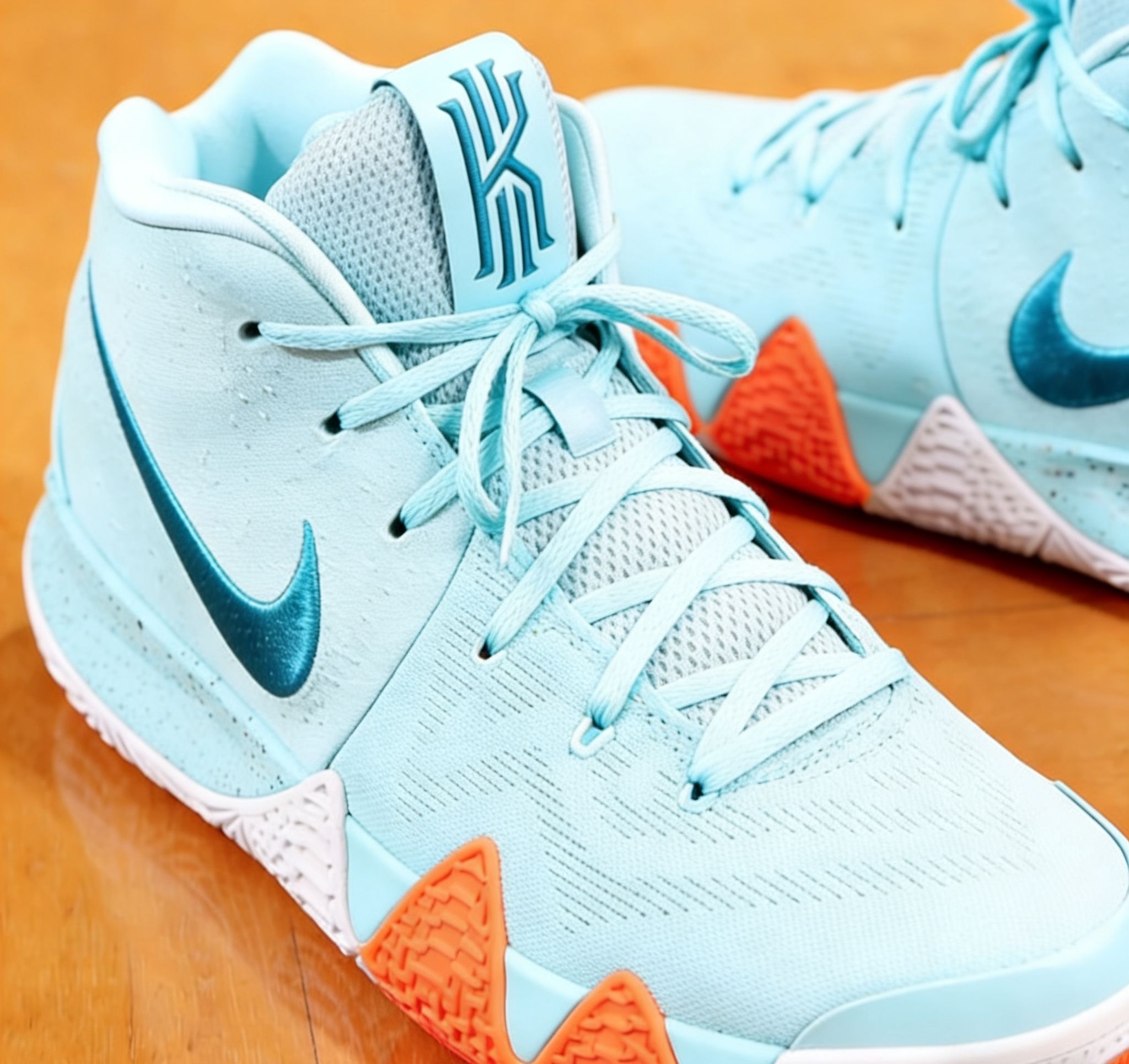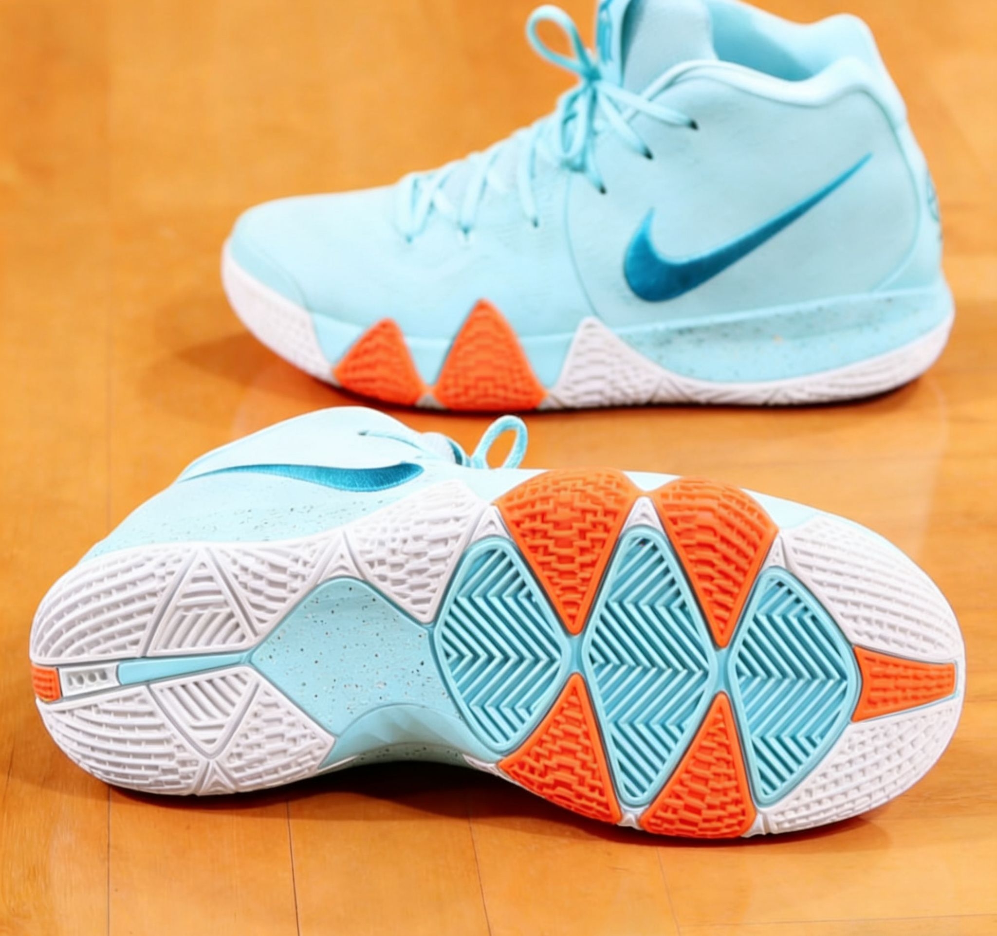 Nike Kyrie 4是欧文系列第四代实战篮球鞋,鞋面采用工程网眼+Flywire飞线,透气又有支撑力。后跟TPU和麂皮细节提升耐磨和质感汁。前掌Zoom Air气垫,缓震反馈超赞,适合快速变向和高强度运动。鞋底不规则纹理,抓地力和防滑性能都很棒,浅蓝橙配色清新活力,尺码36-46,男女都能穿!
