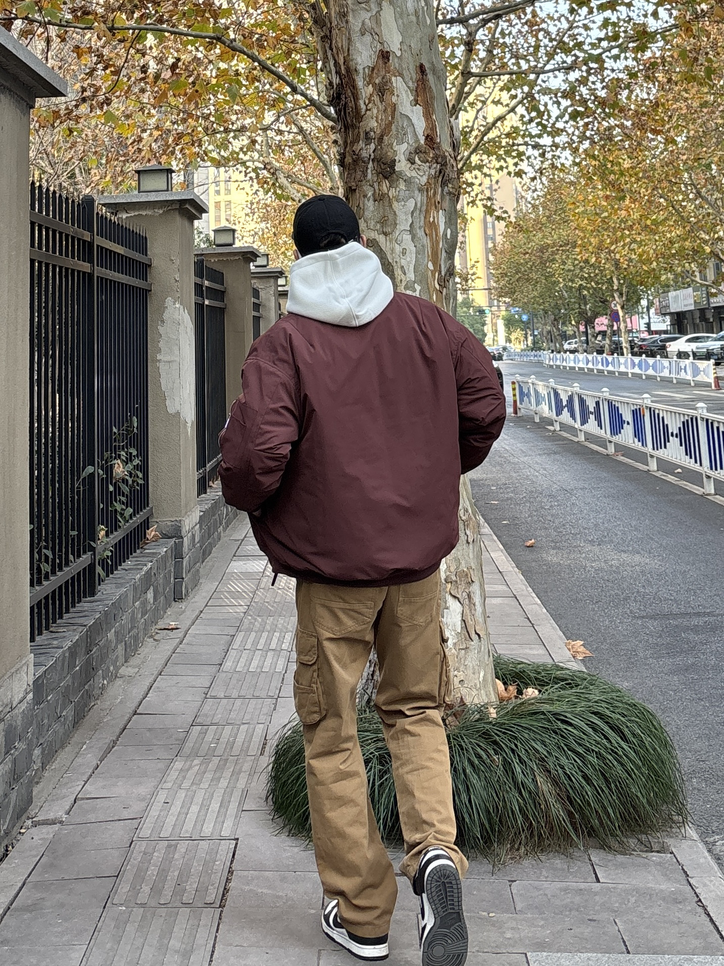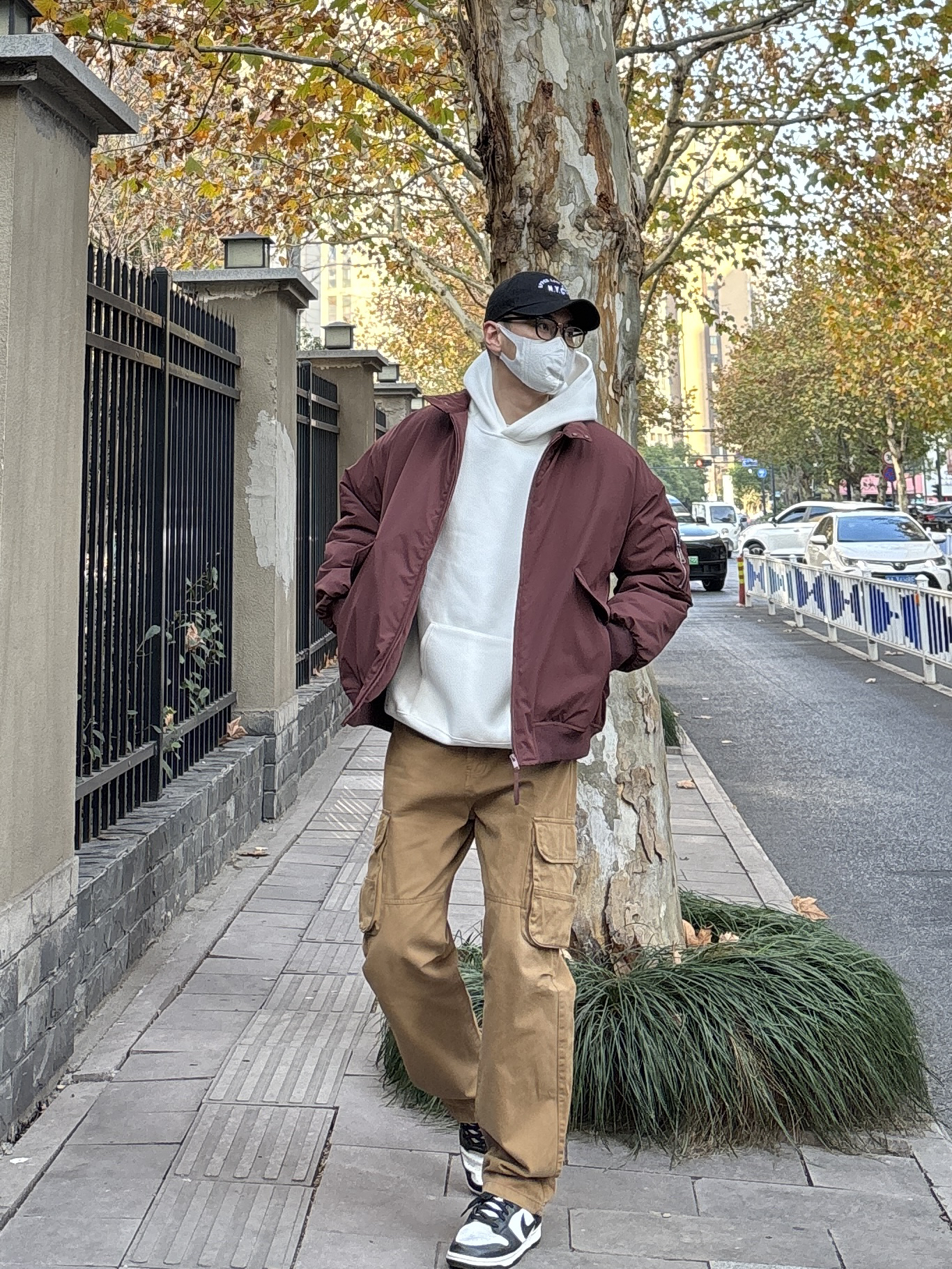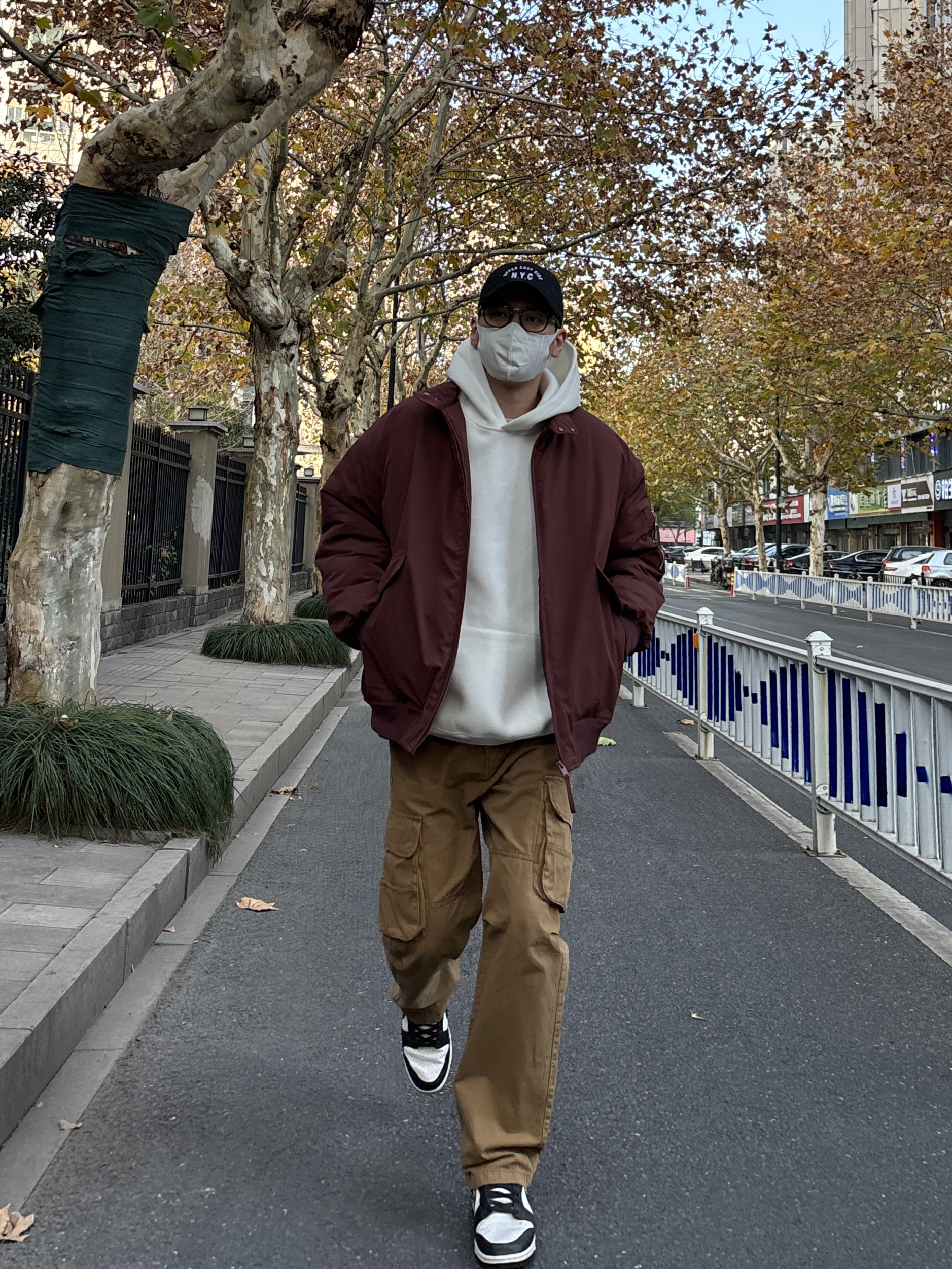 冬天衣柜里肯定有很多基础款的衣服,只要搭配好也能摆脱路人味,穿出氛围感。 上装用亮眼吸睛的酒红色翻领工装棉服叠穿简约干净的白色连帽卫衣增加层次,下装选择卡其色直筒工装裤搭配黑白低帮板鞋,四件单品轻松搭配出高级感,工装元素经典耐看,男生都可以来试试这套万能公式👍 - 今日穿搭 衣服裤子:NICE LILI 鞋子:nike dunk黑白