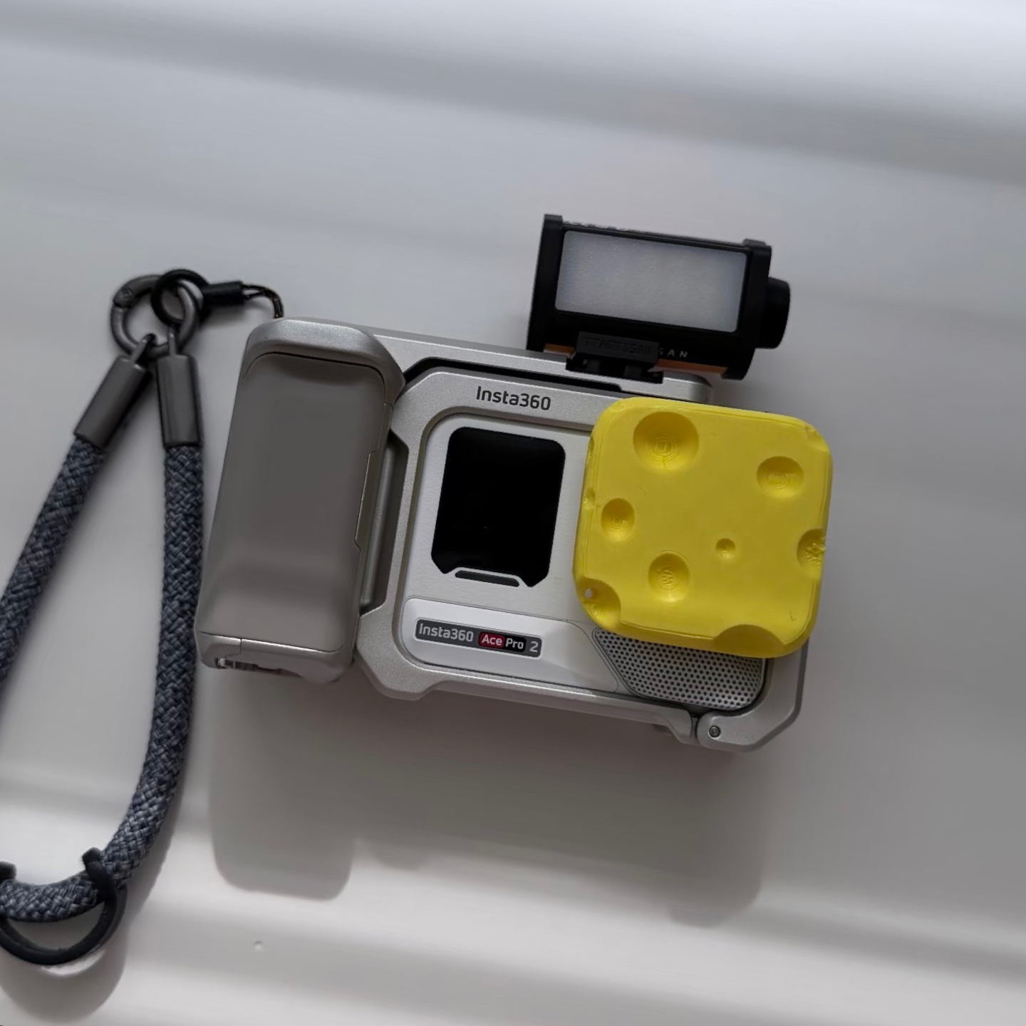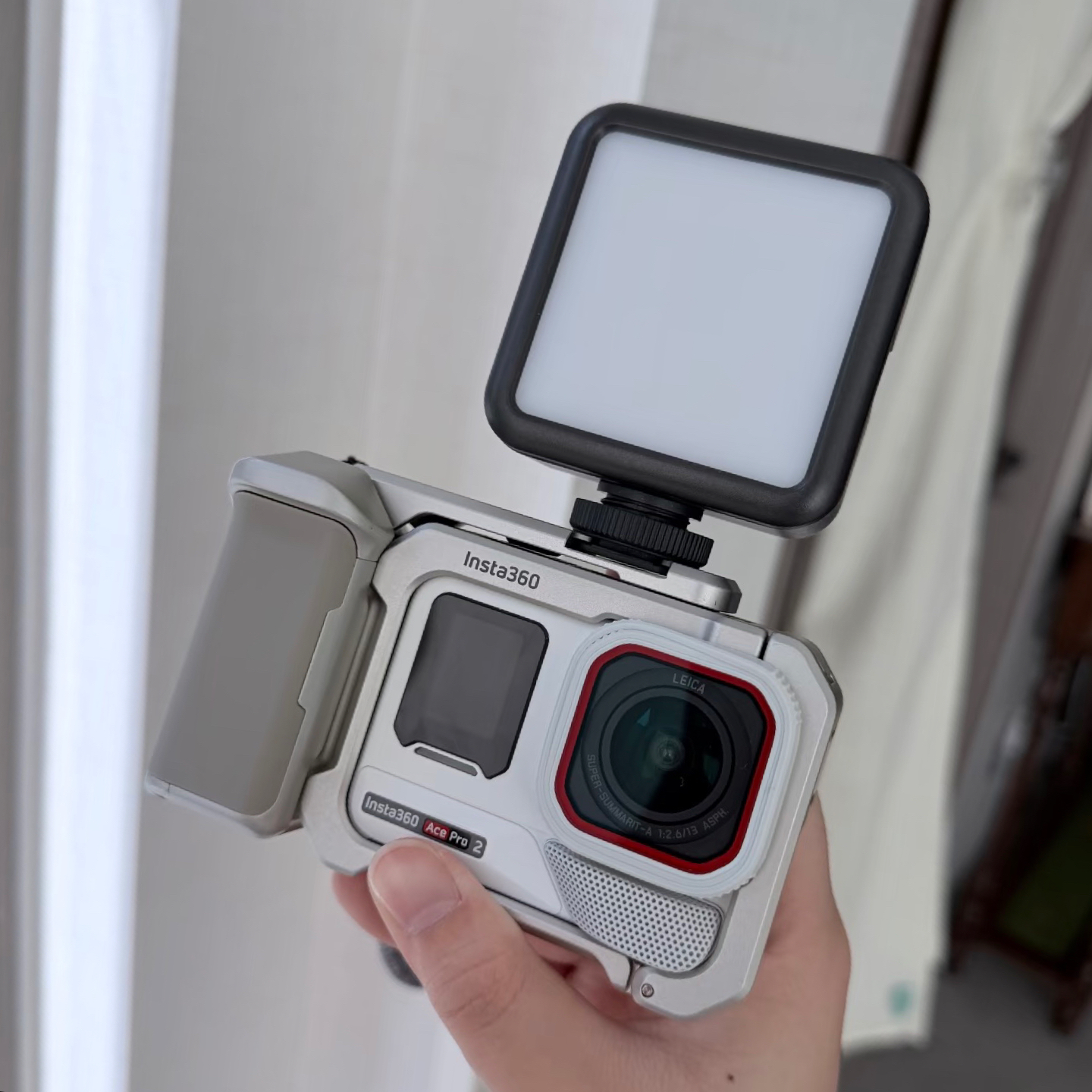 入手影石Ace Pro 2后,我发现它拓展性好强~ 兔笼按键按起来好解压🥳,热靴能接补光灯这些小配件,大太阳下贴了增透膜屏幕也清晰,可玩性拉满! 就是相机比想象中大只点🤣