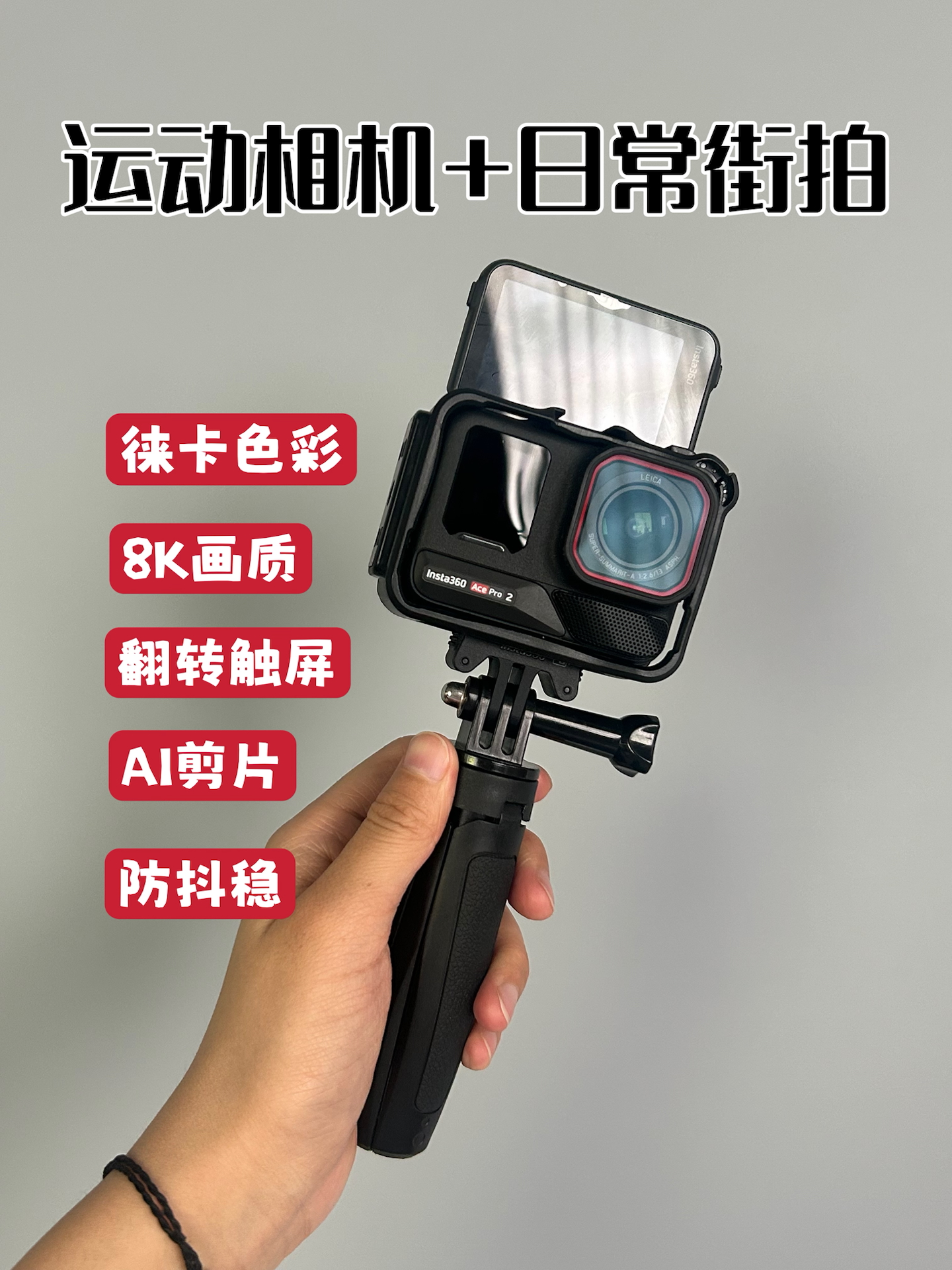618终于被我蹲到了!Insta ace pro2两千出头拿下! 先说优点: 1️⃣画质超能打:8K画质+徕卡色彩,夜景和逆光表现突出,无需后期也能只出成片! 2️⃣防抖在线:FlowState 3.0防抖效果在线,剧烈运动画面也不抖! 3️⃣AI功能真香:自动标记精彩片段,语音控制灵敏,剪辑效率翻倍,懒人狂喜! 4️⃣设计实用: 翻转触屏+磁吸快拆,自拍角度随便调,操作简单,新手友好!裸机防水...