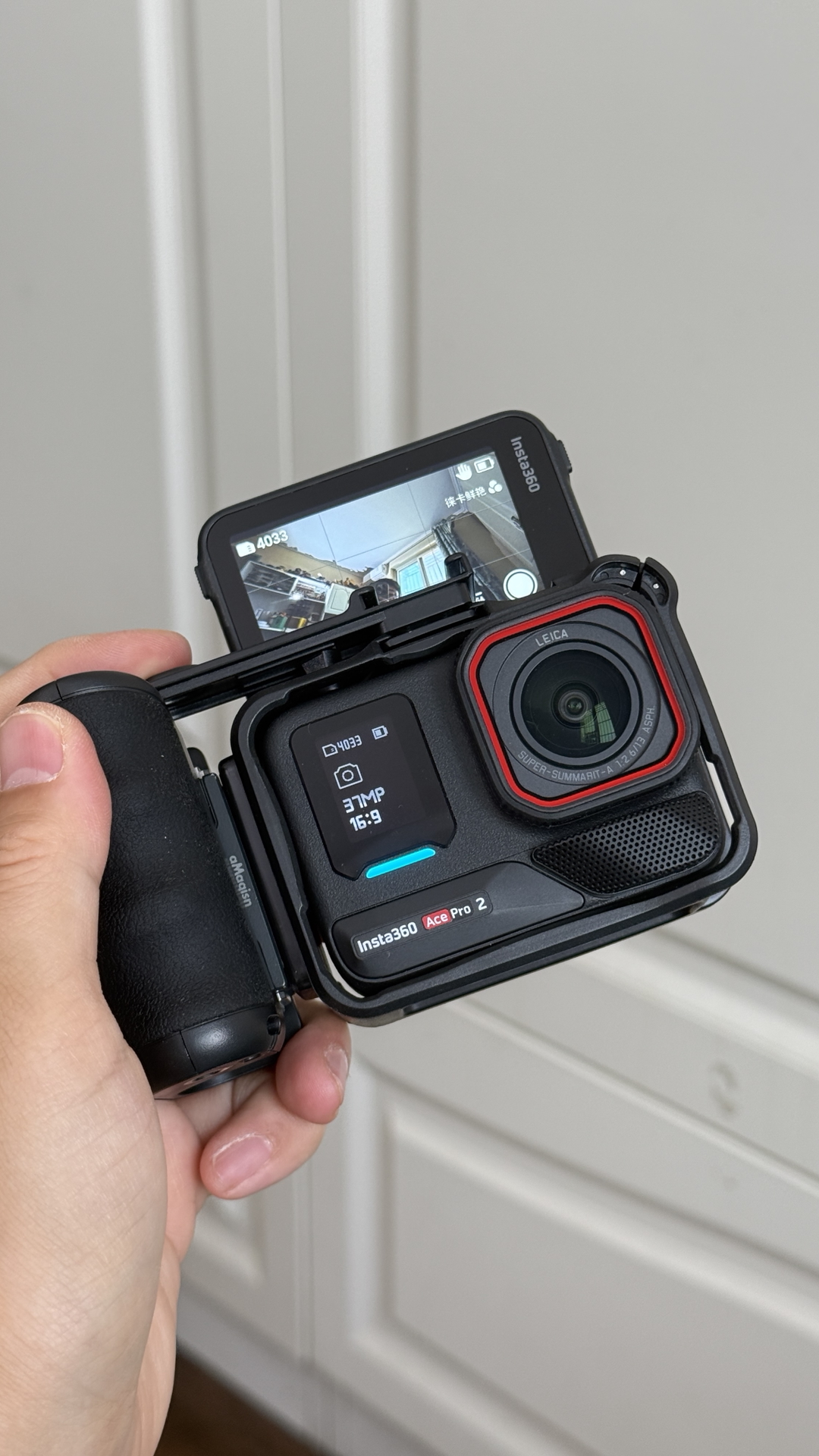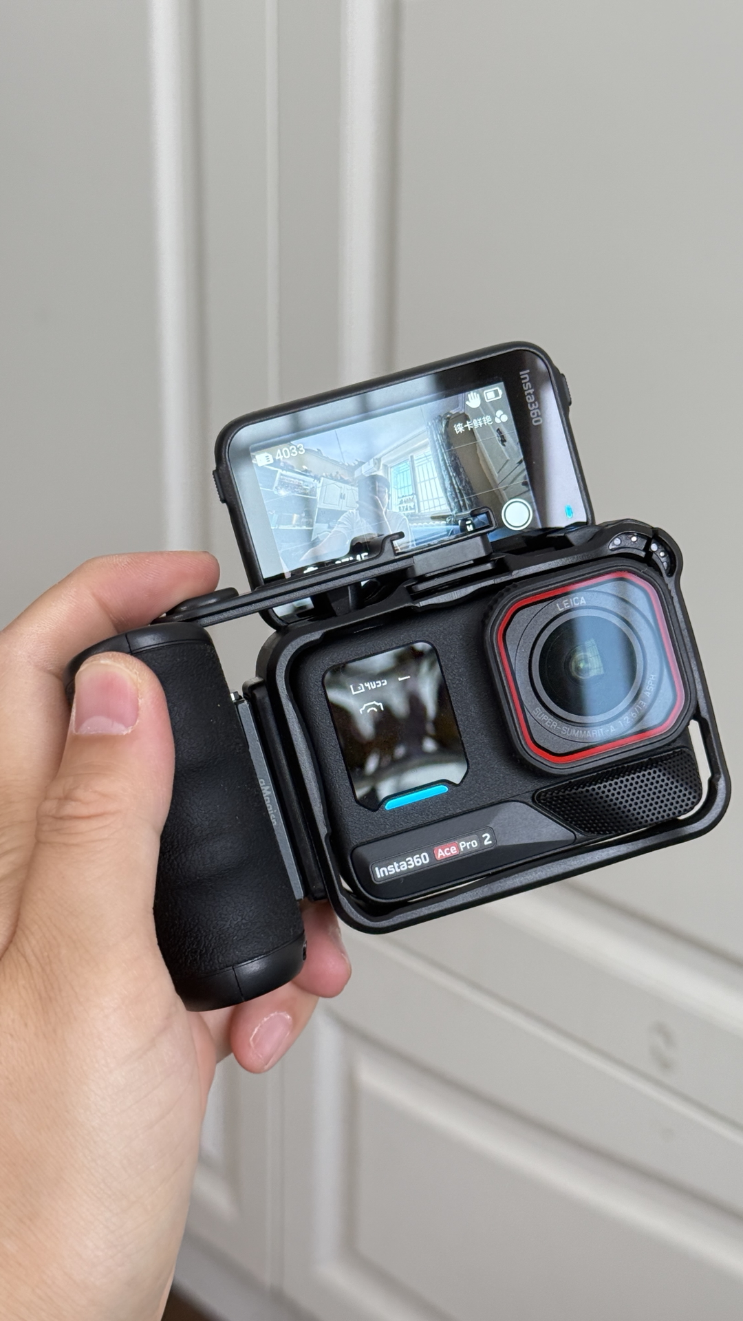 #Insta360 影石AcePro2运动相机有了自己的新赛道 在Ai芯片和徕卡影像的加持下,成了年轻人记录生活的新利器 第三方的改装套件也可以让AcePro变为街拍神器 亲肤材质的手柄握持感更舒适,按压杆的按压手感也杠杠滴! 不影响折叠屏使用,冷靴口还可以外接其他设备。