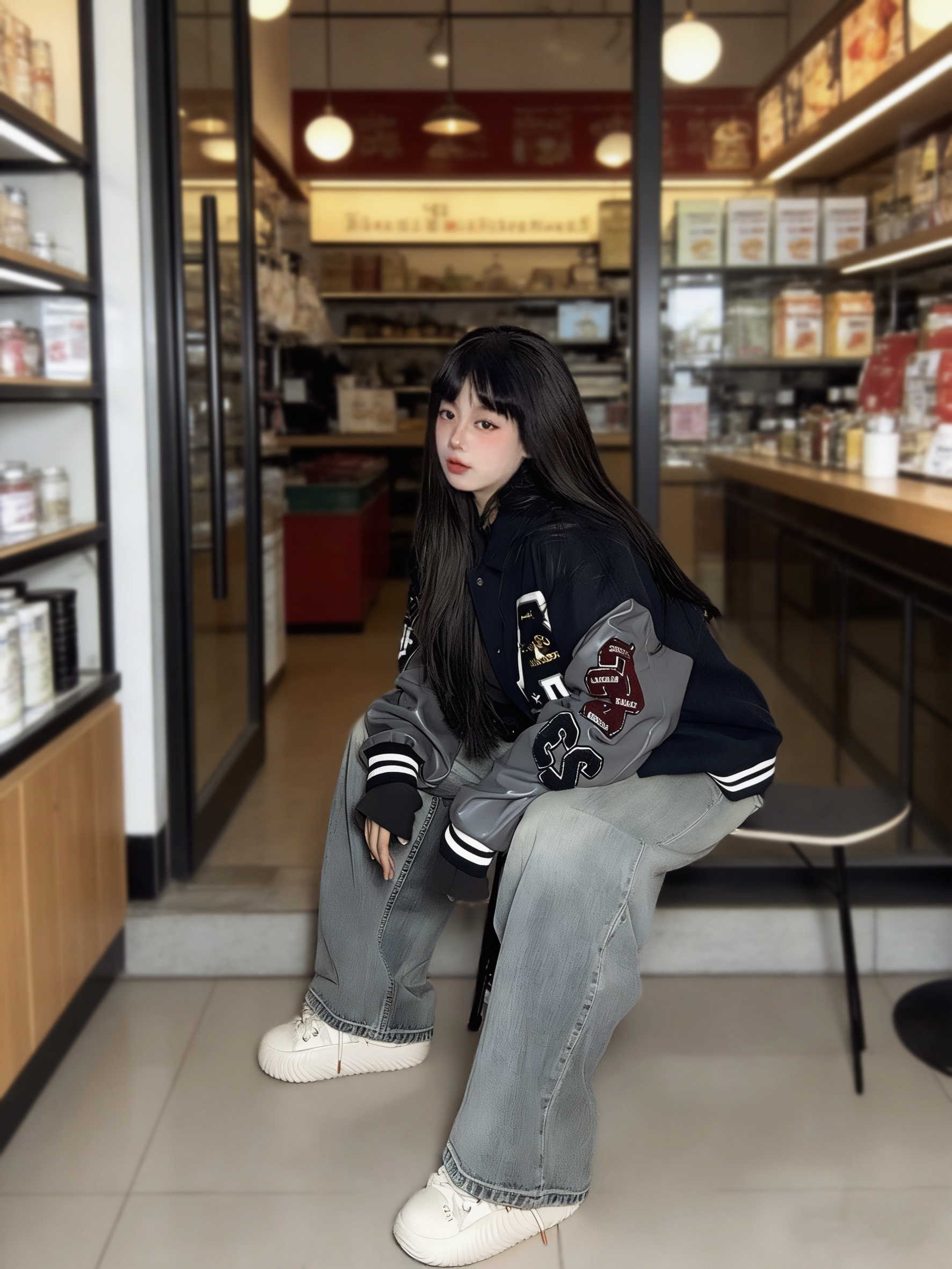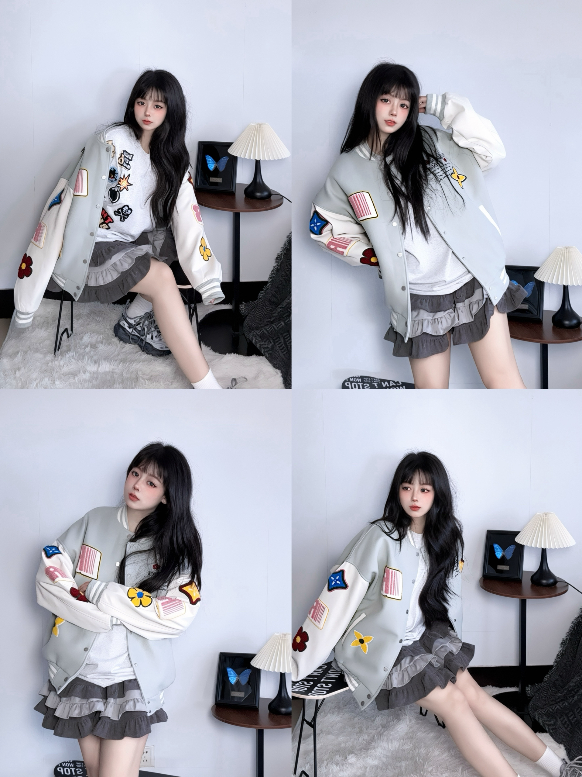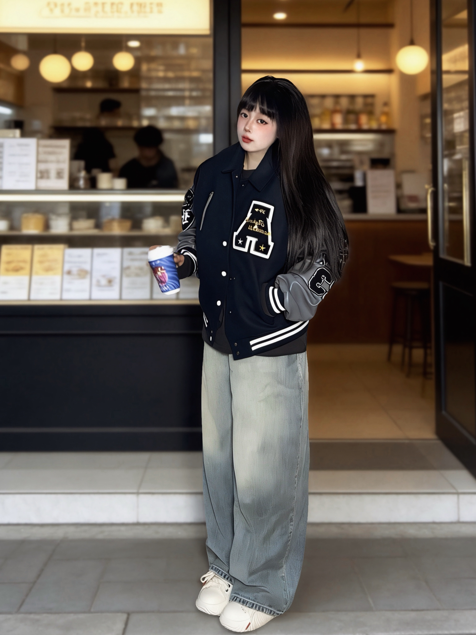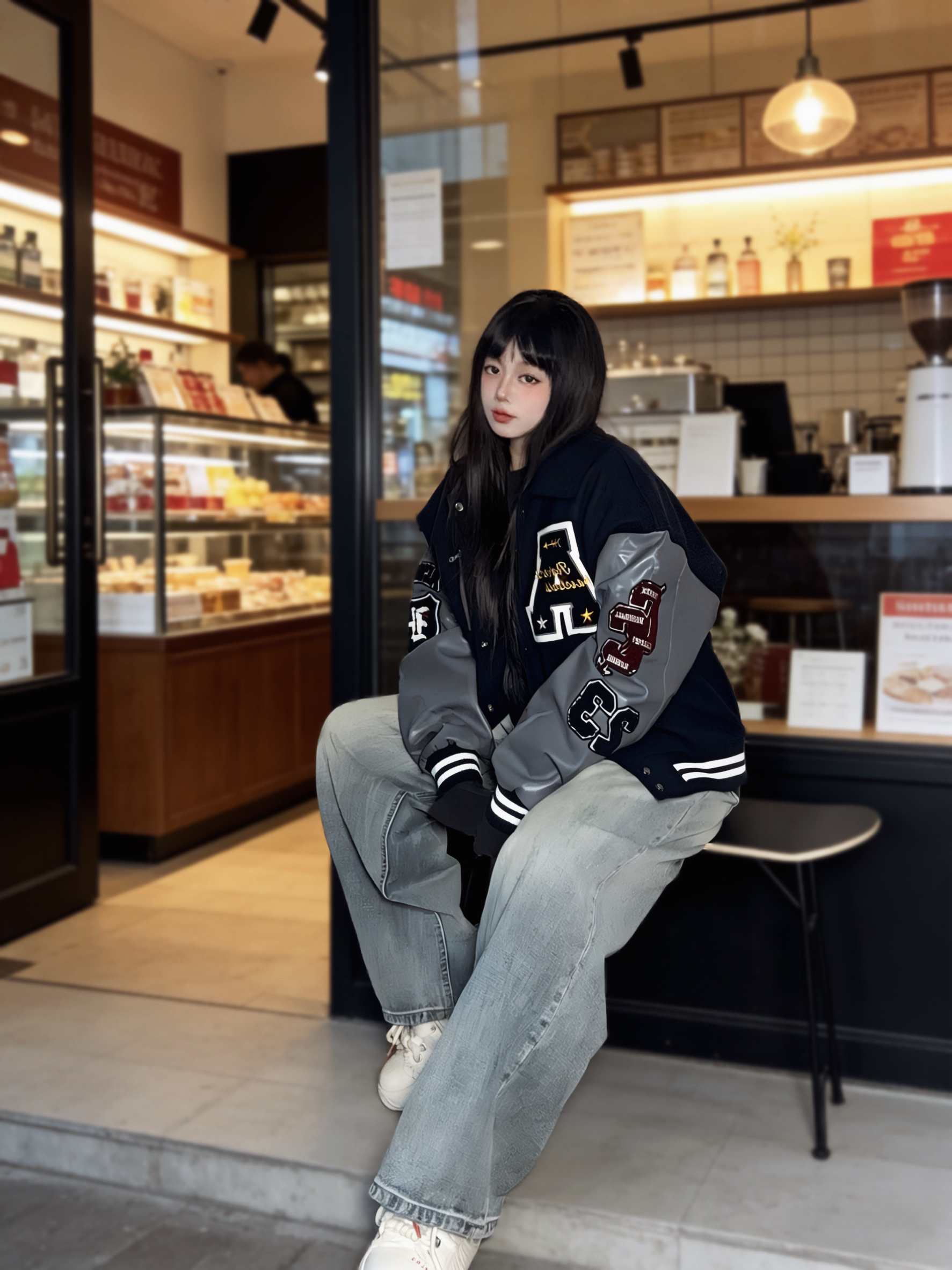 我很喜欢这种拼接设计感的棒球服 藏青➕灰色皮袖hin显白(也耐脏) 刺绣图案都是立体的 星星字母标也蛮有个性呢~ - 我搭了一条水洗做旧的牛仔裤 整体就是显瘦又有点美式风 ▪️ 参考尺码:168cm60kg M