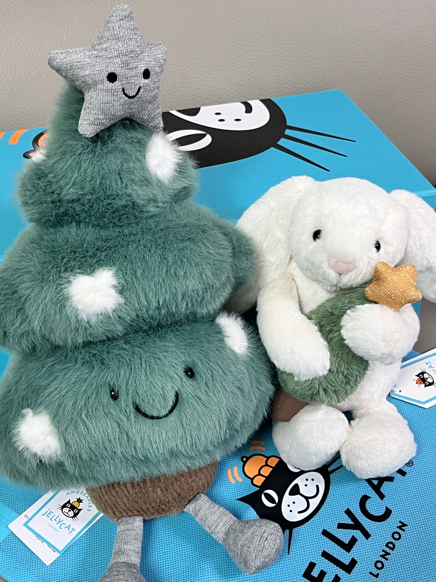 世界上最可爱的圣诞树宝宝🎄 jellycat今年的圣诞系列真的太好看了😻 拿到手礼盒的包装仪式感拉满 毛茸茸的摸上去滑滑软软很治愈❤️🩹 抱着圣诞树的邦尼兔精致可爱 今年圣诞的快乐是jellycat给的!🥰 过节送给朋友也很合适 毕竟谁能拒绝这样的萌物呢~