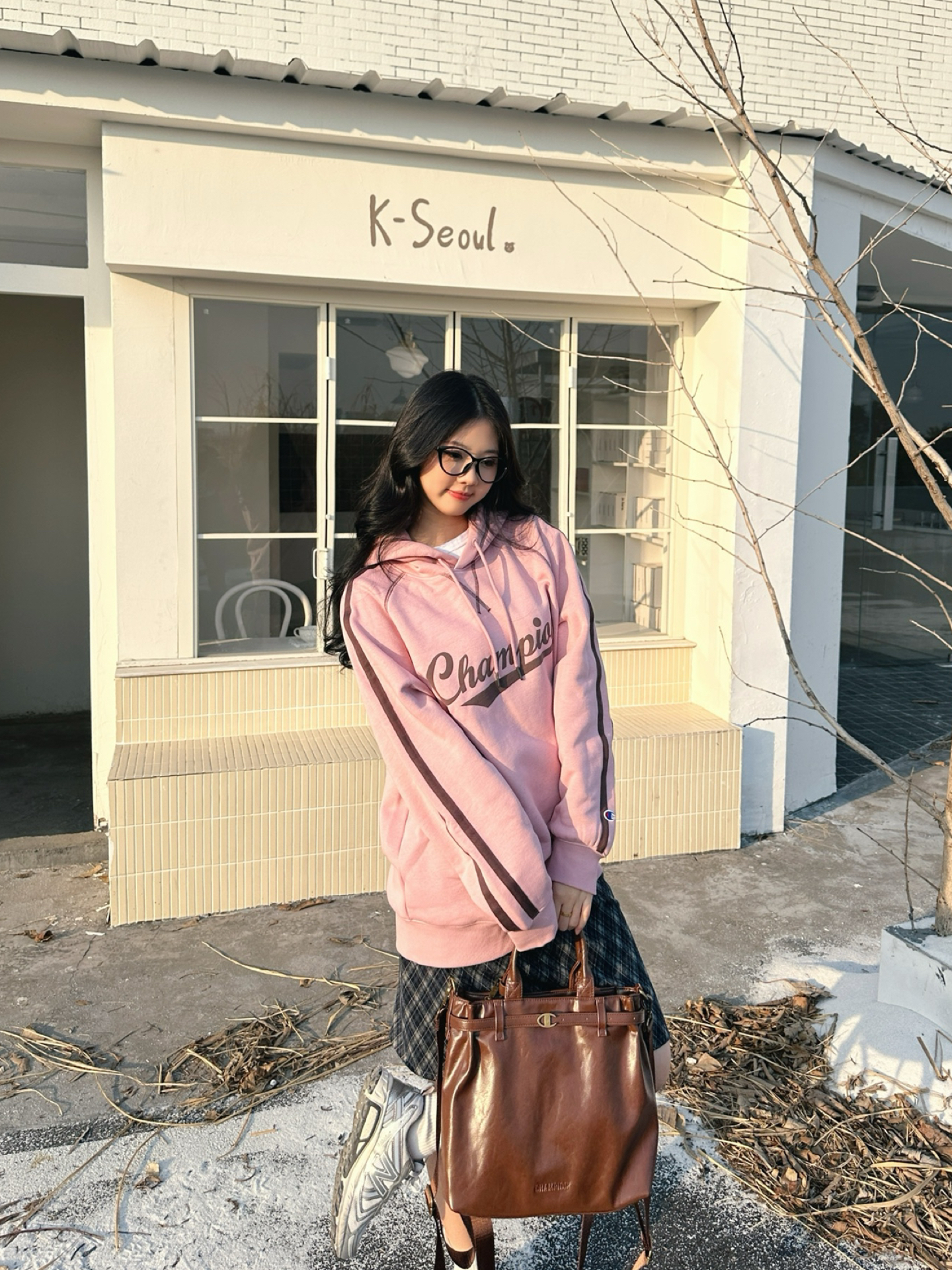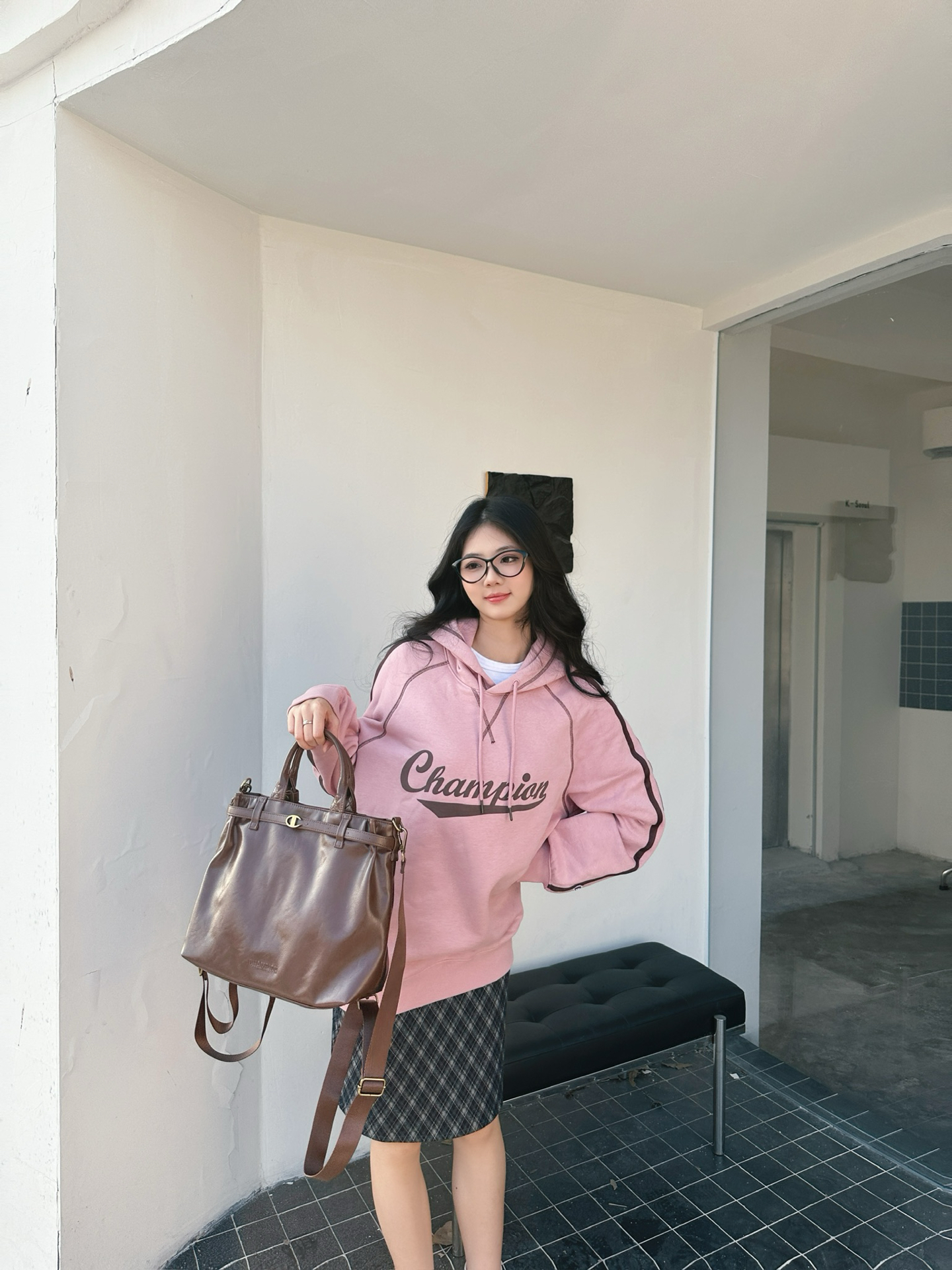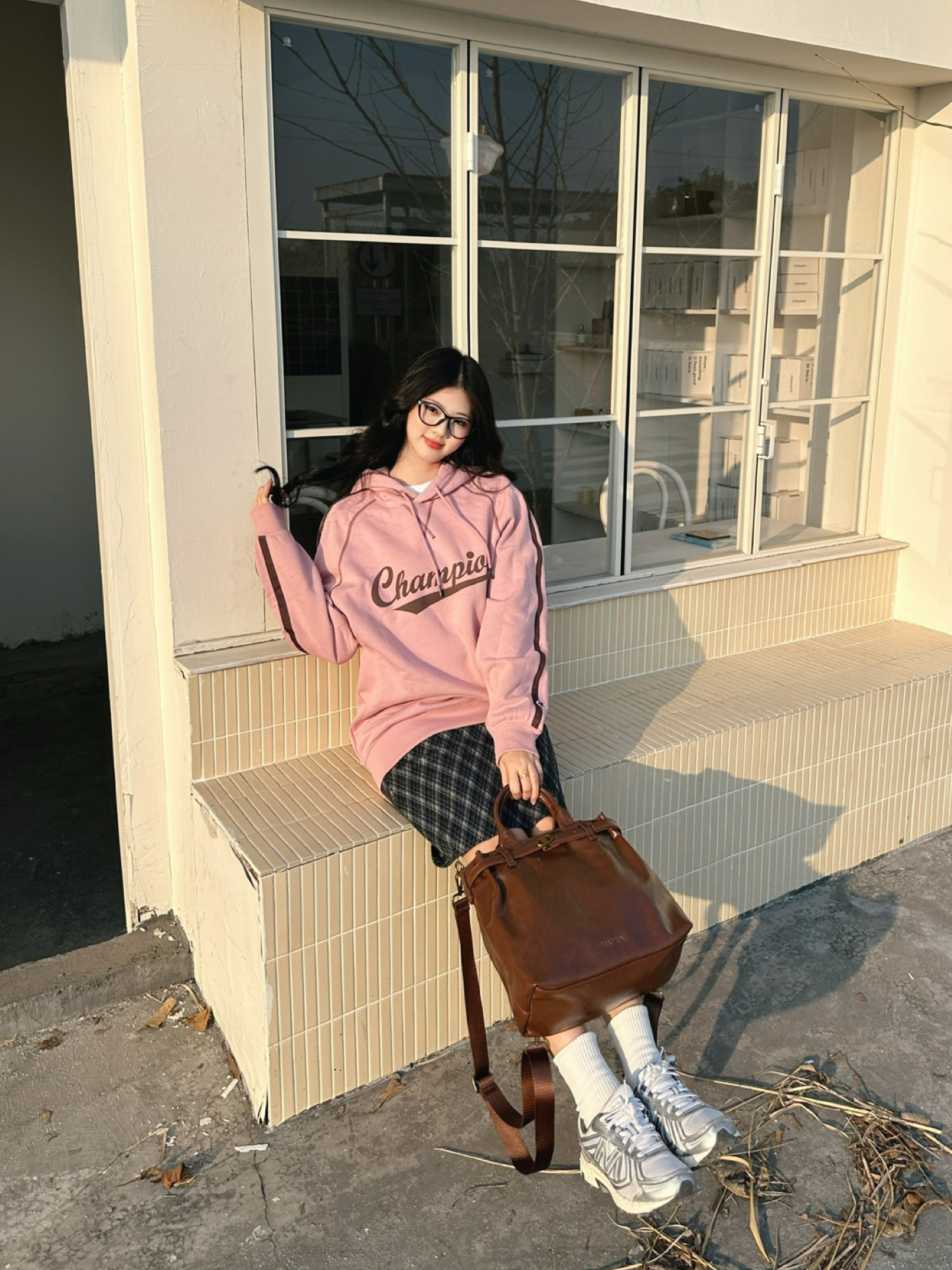 今天浅粉连帽卫衣+格纹短裙 甜妹氛围感直接拉满呀(๑°3°๑) 袖口的小标细节很戳🩷 配双白袜和球鞋 松弛感这不就来了👟 随手拎只复古棕托特包👜 学院感里又掺了点随性~ 这种不费力的甜酷调调 上学或周末逛街都适配! 图源网络,侵删!