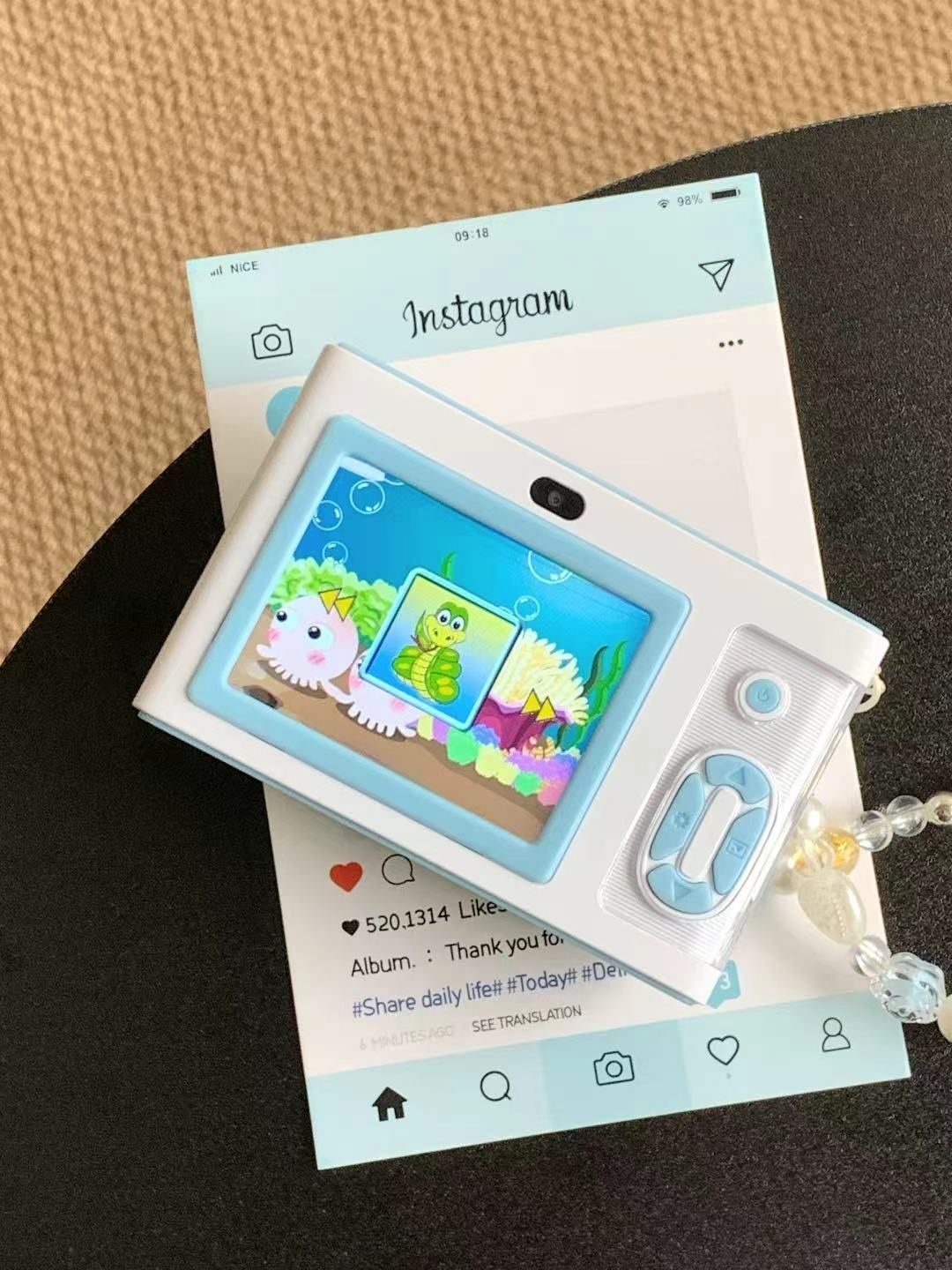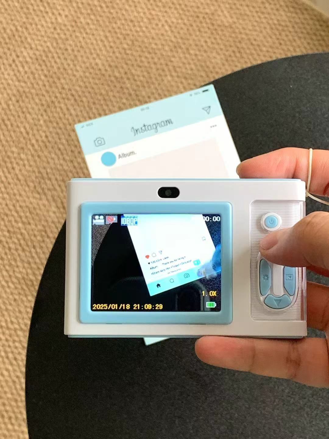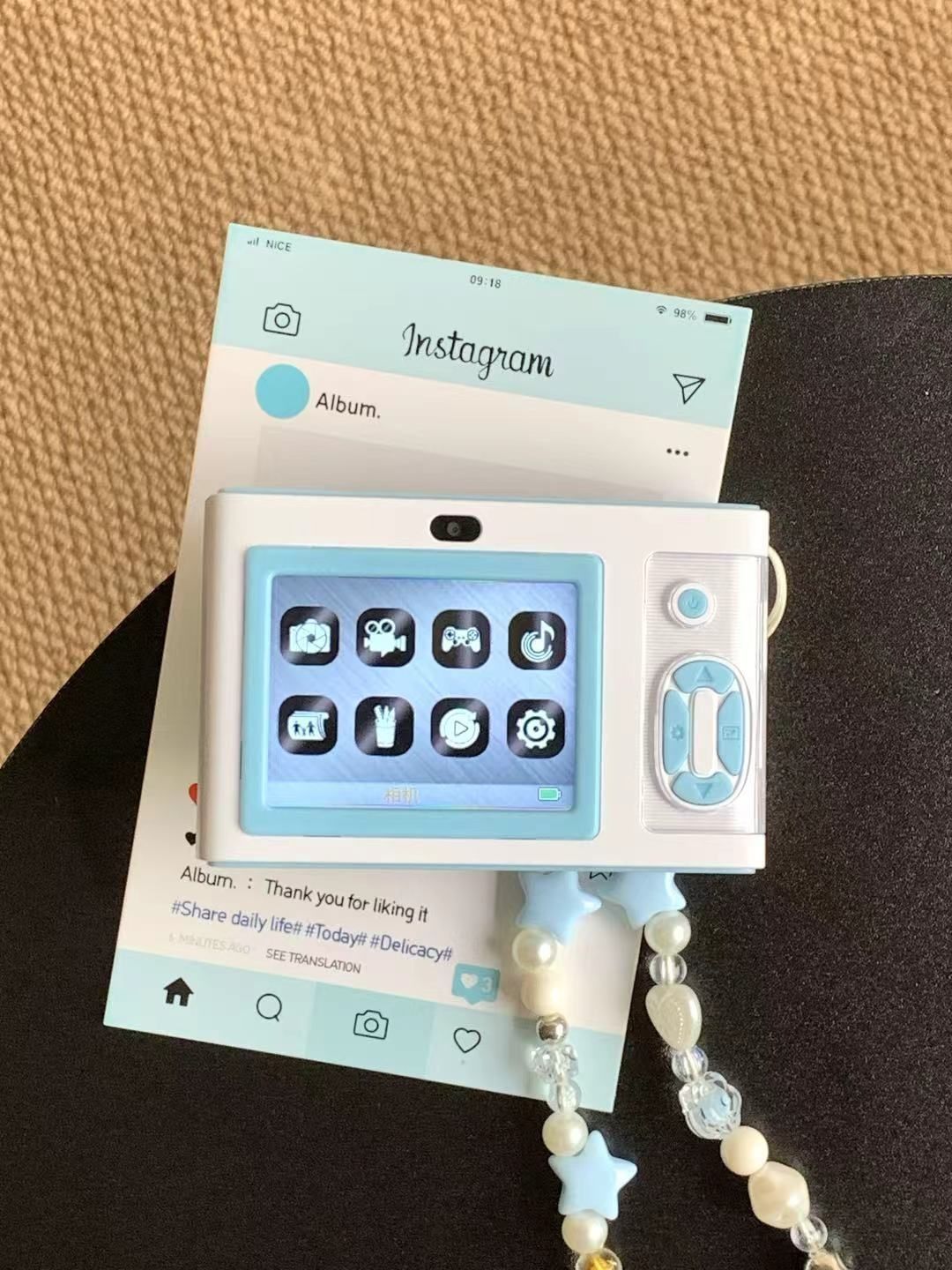 没错,就是这款适合学生党的长期主义平价CCD 这期给大家推荐一款ccd 我觉得这一款的颜值还蛮高的呢 整体是蓝色的色调 然后它是可以前置和自拍的呢 这个是我心仪的数码好物呢