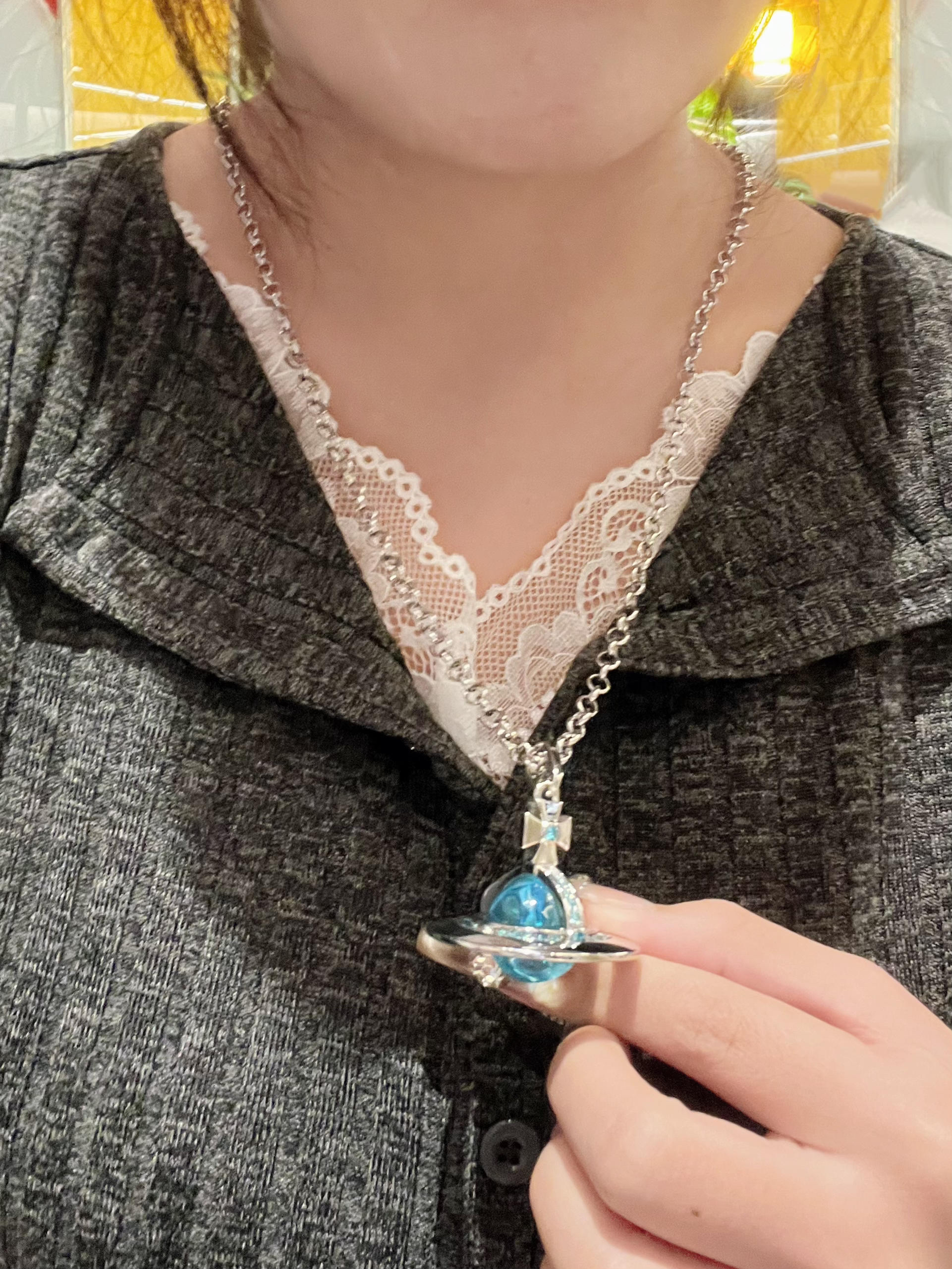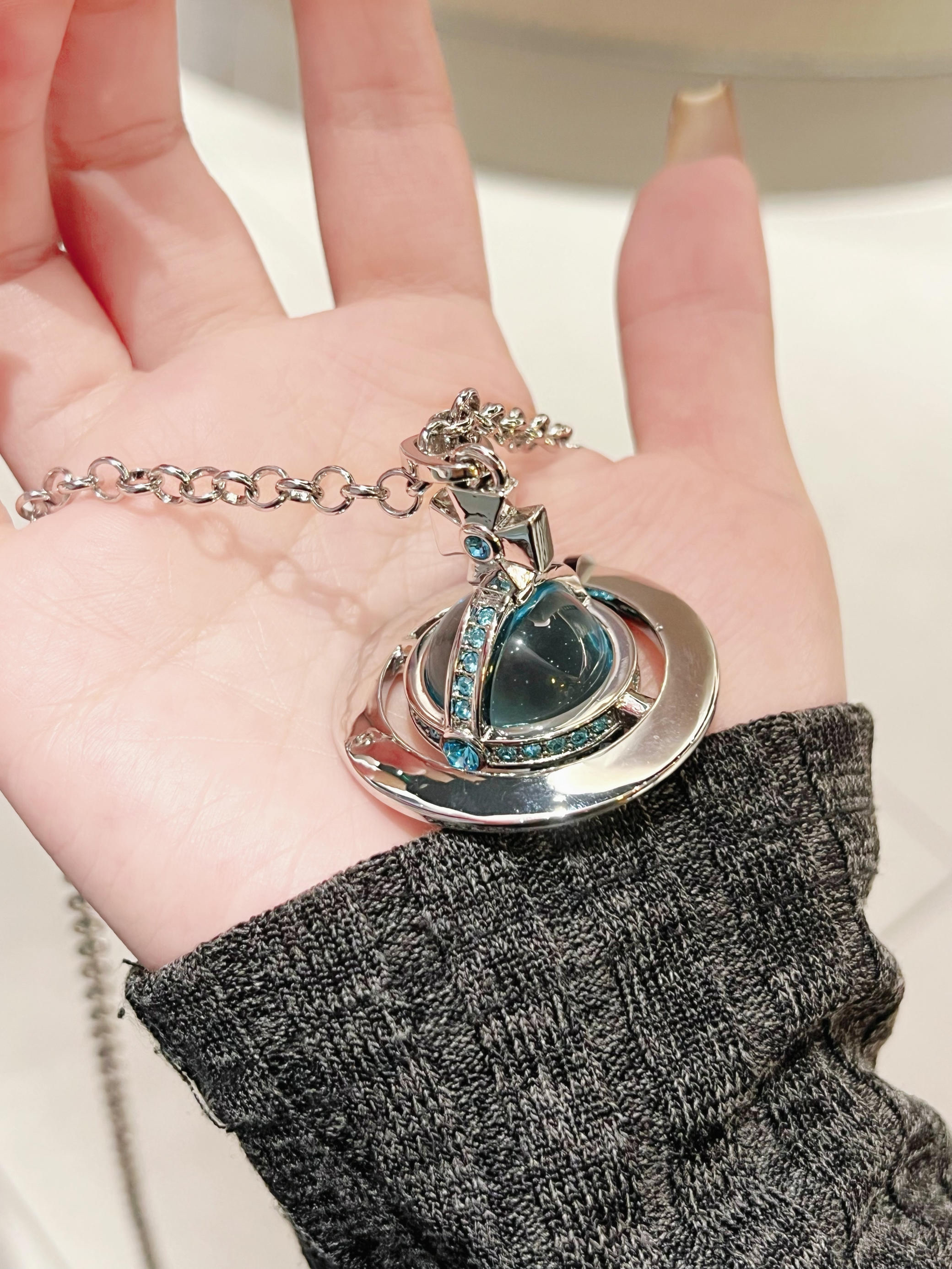 我的年度喜爱配饰加一💫 我感觉我很喜欢这样清透感满满的蓝色 感觉很治愈💕 西太后的这个项链我选的大号,会比我想象中的大 链长也会长一点~ 但是这样的项链来搭毛衣或者卫衣会比较好看 搭出不同感觉,你们会怎么搭呢?开来评论区讨论叭👀
