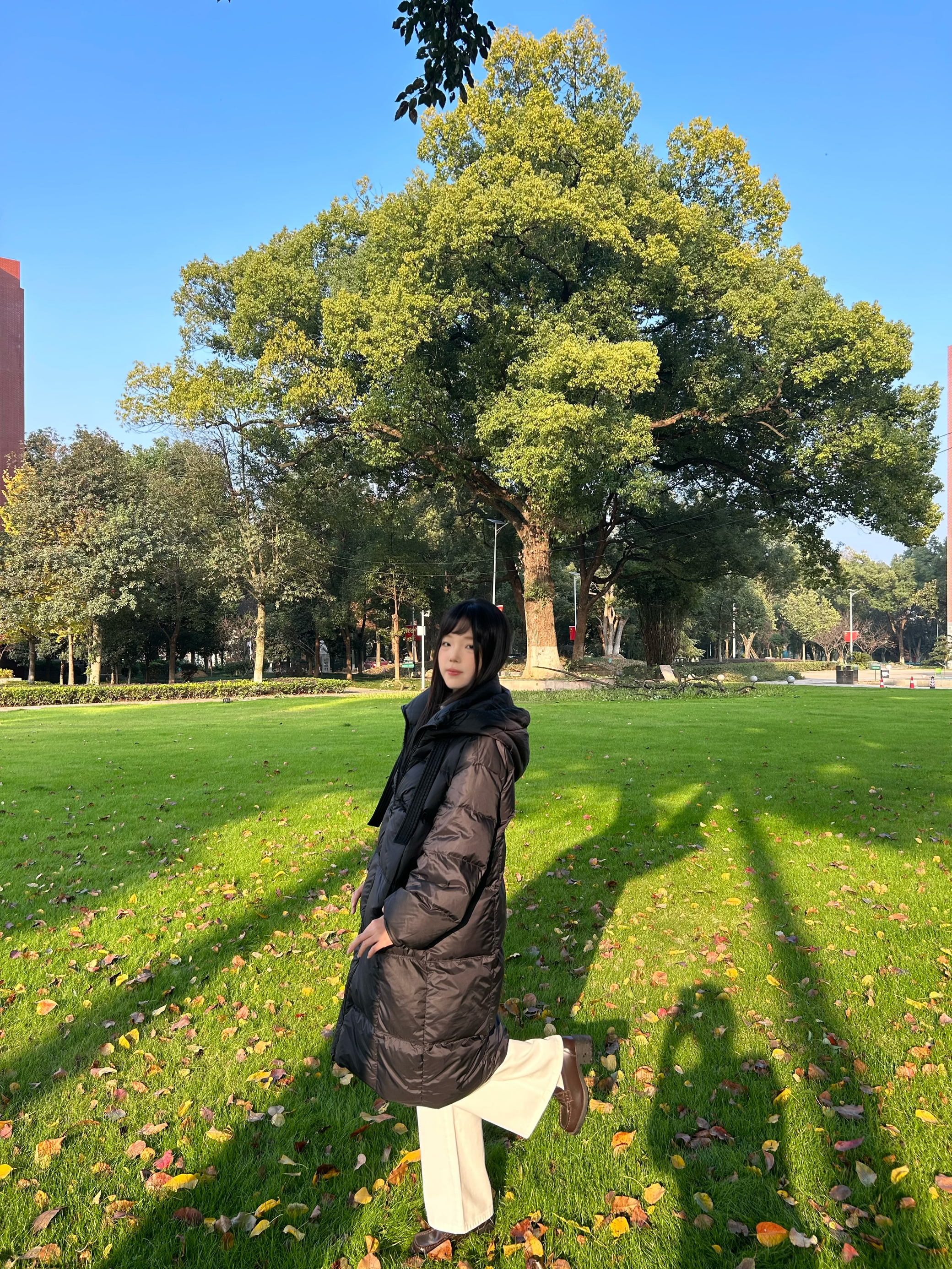 这件黑色长款棉服,面料柔软舒适完全不会觉得厚重,长款的衣服还特别保暖哦!白色内搭和白色裤子超级配,露出脚裸更显高! 黑色在冬天就超级方便,不会容易变脏,结实又耐穿。衣服带有帽子🧢又保暖又方便哦! 设备是14plus,在阳光☀️下拍照📷非常有氛围感,自带滤镜的感觉。 拍照时要将脚🦶放在黑色线上一点哦,这样显得比例更好,动作可以都看别人的照片模仿!