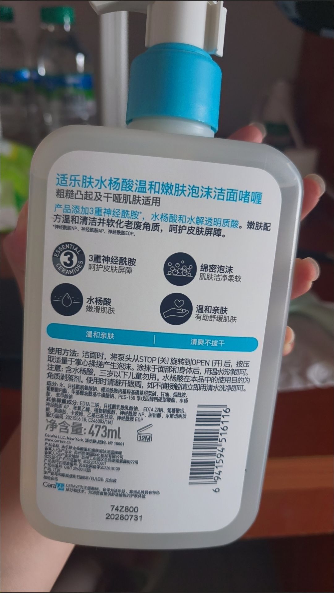 本篇笔记关联了CeraVe/适乐肤 水杨酸温和嫩肤泡沫洁面啫喱 清洁控油祛痘去闭口去黑头去角质疏通毛孔 【国产版】0.45%水杨酸等商品,为用户提供真实的使用体验和购买参考。