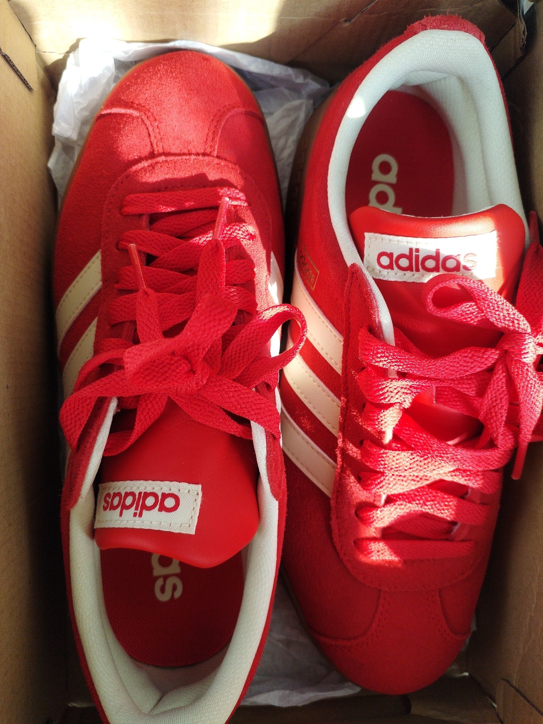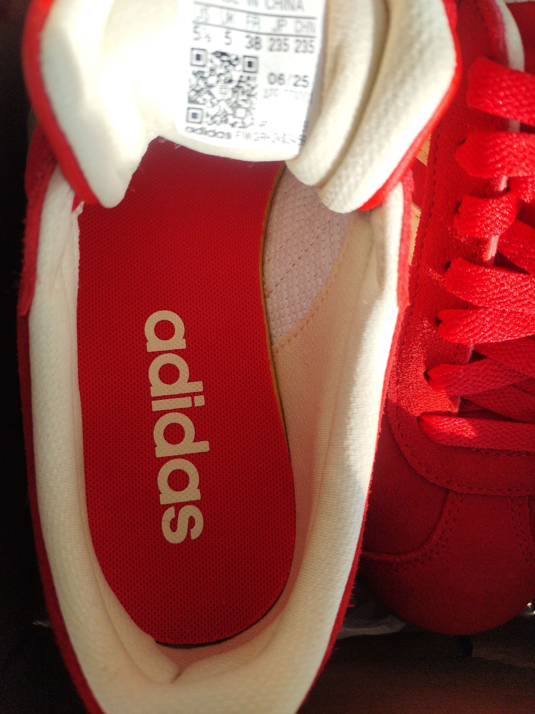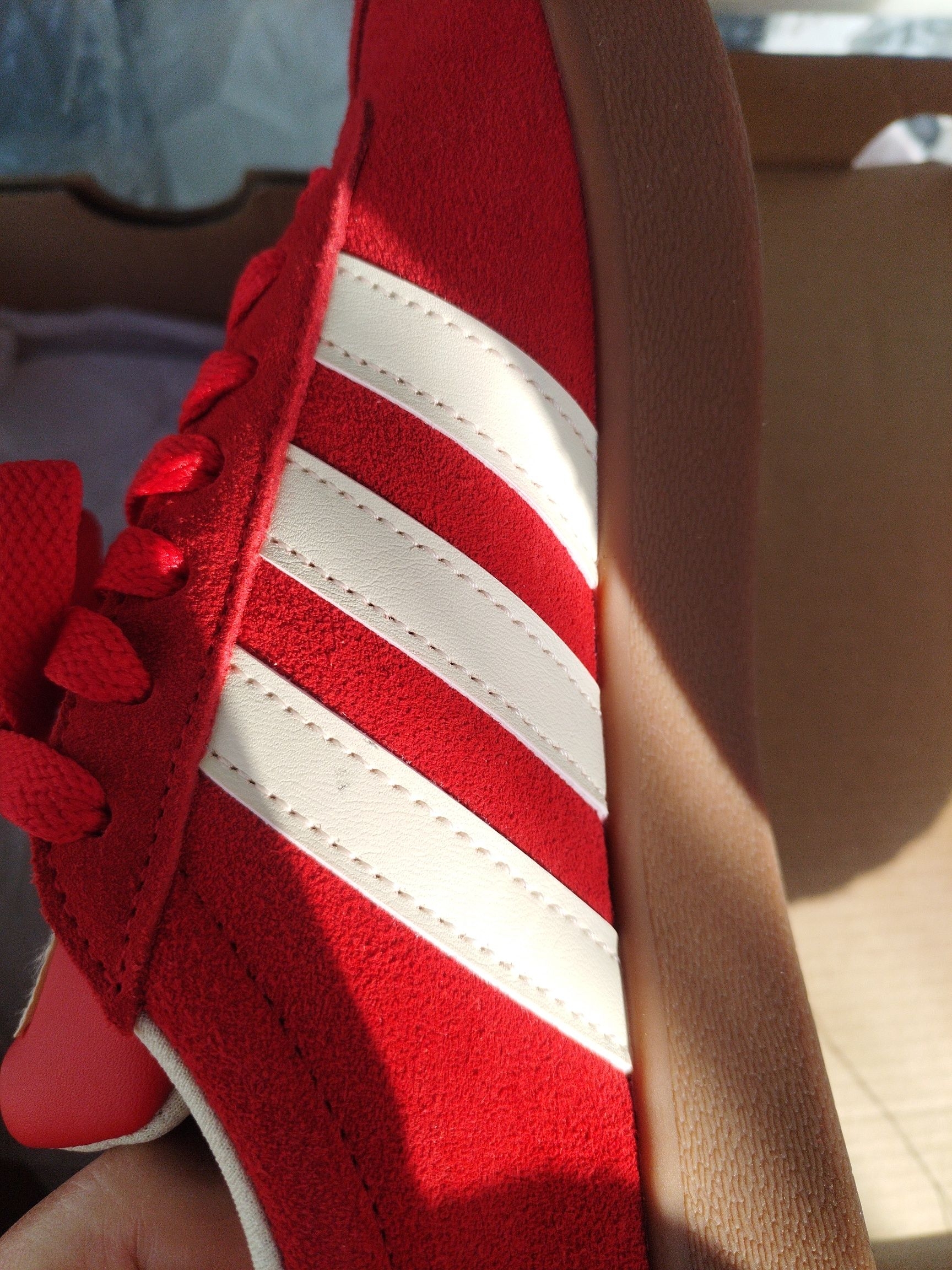 阿迪达斯女款红色德训鞋开箱测评!颜值没话说,复古配色百搭不挑风格,翻毛皮脏了轻轻一擦就干净。鞋型偏窄瘦脚超合适,上脚显腿直,小个子也能驾驭。鞋底有防滑纹路,走路很稳,就是新鞋有点硬,穿穿应该会更贴合脚。