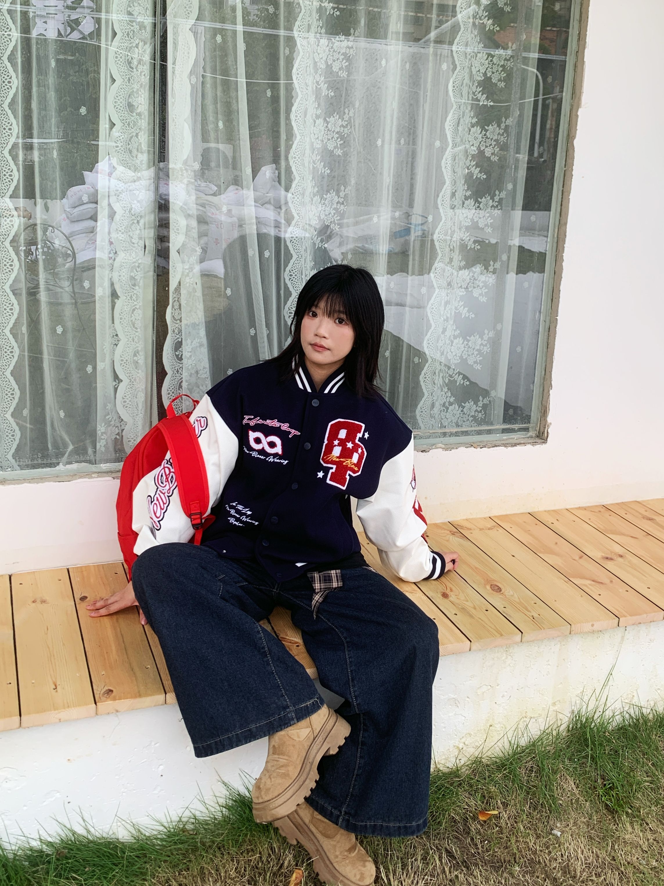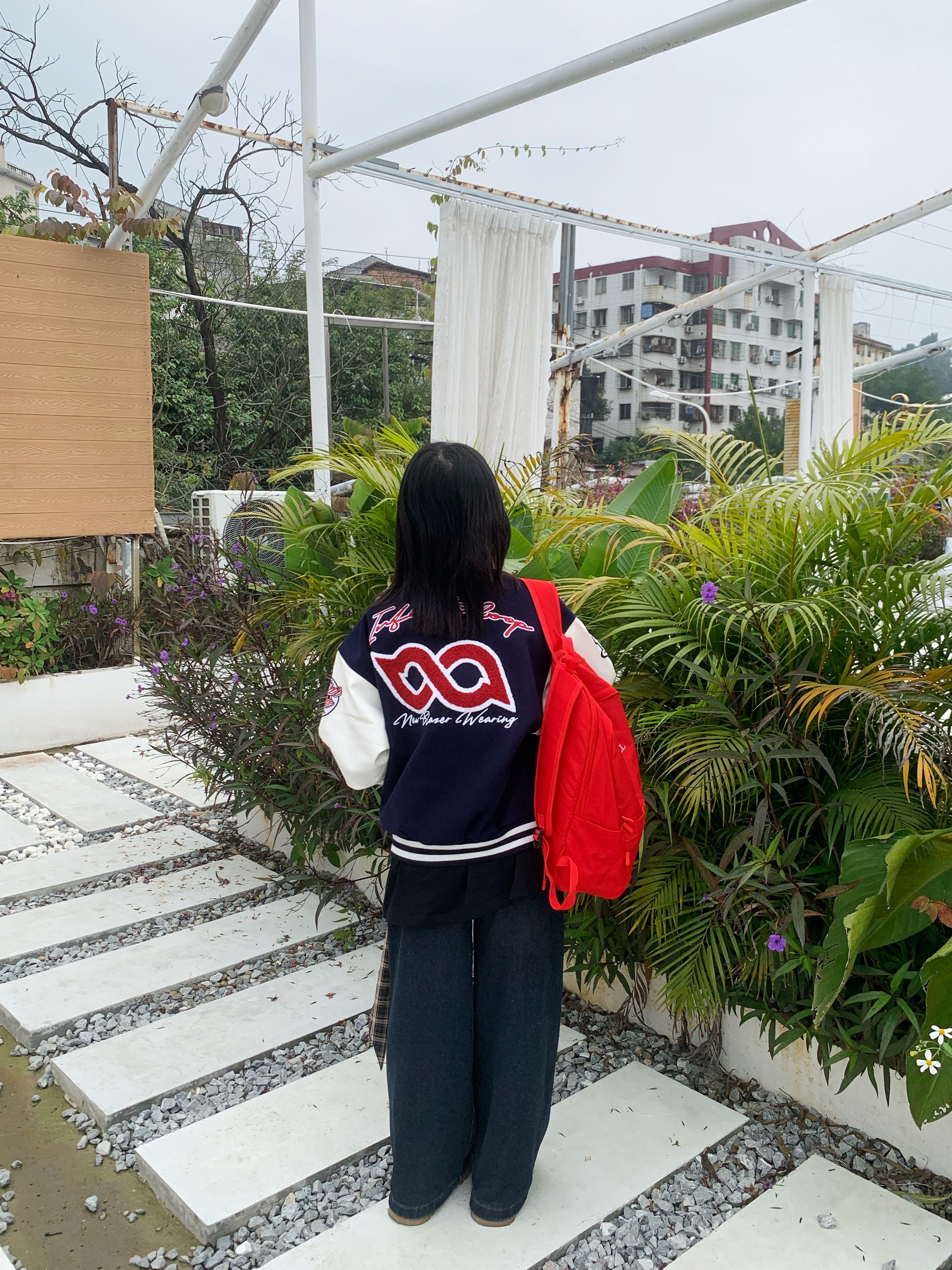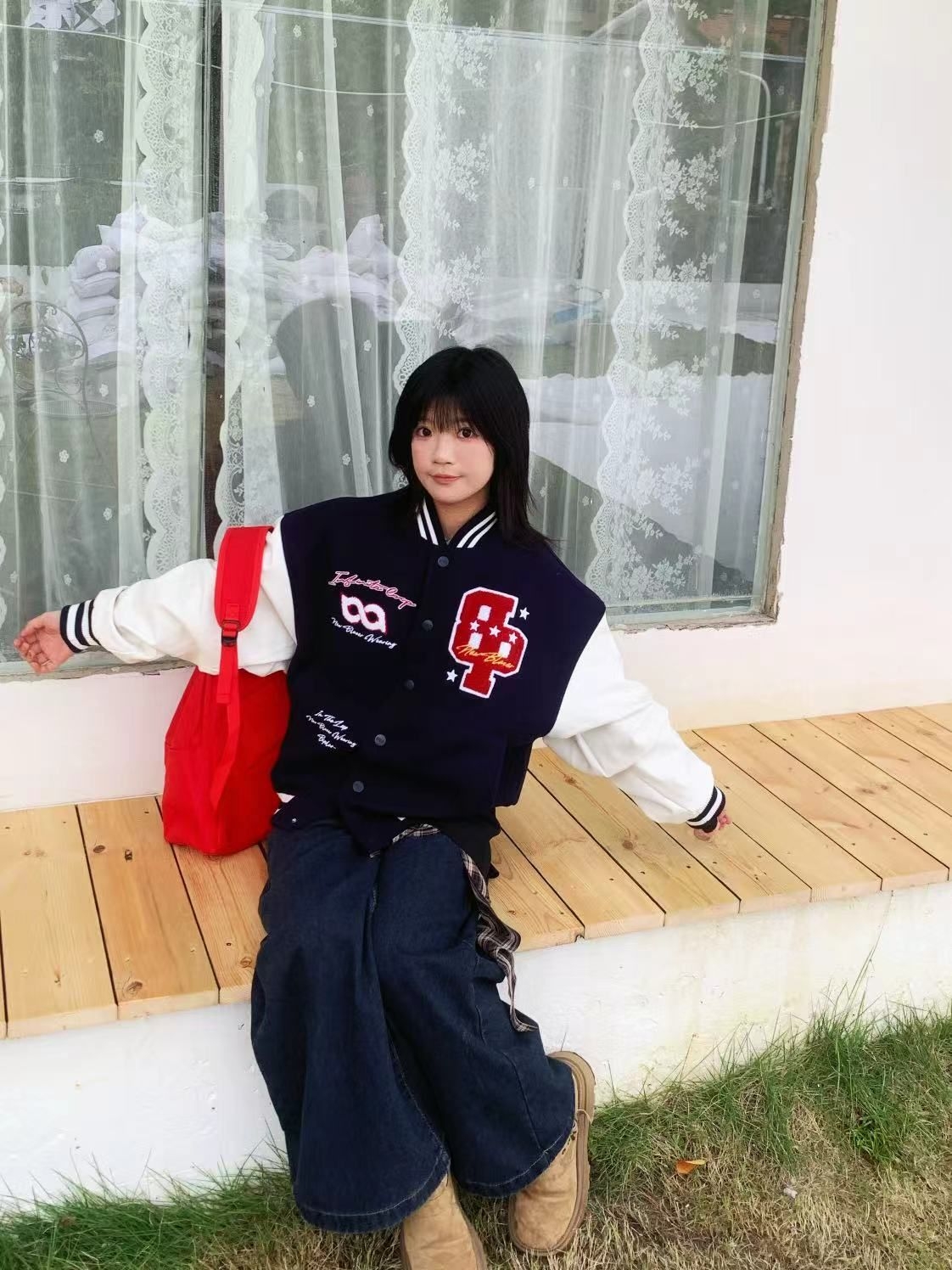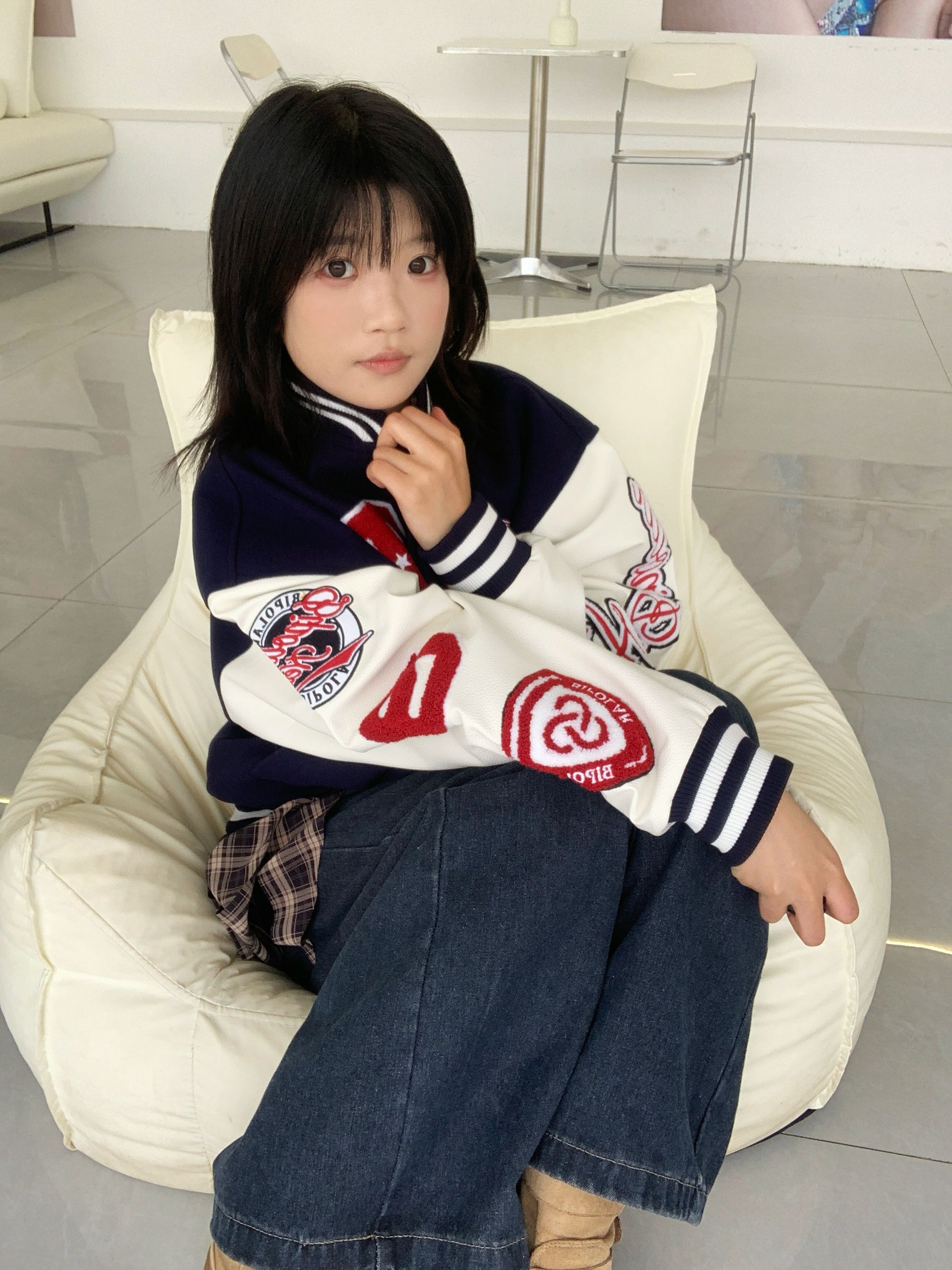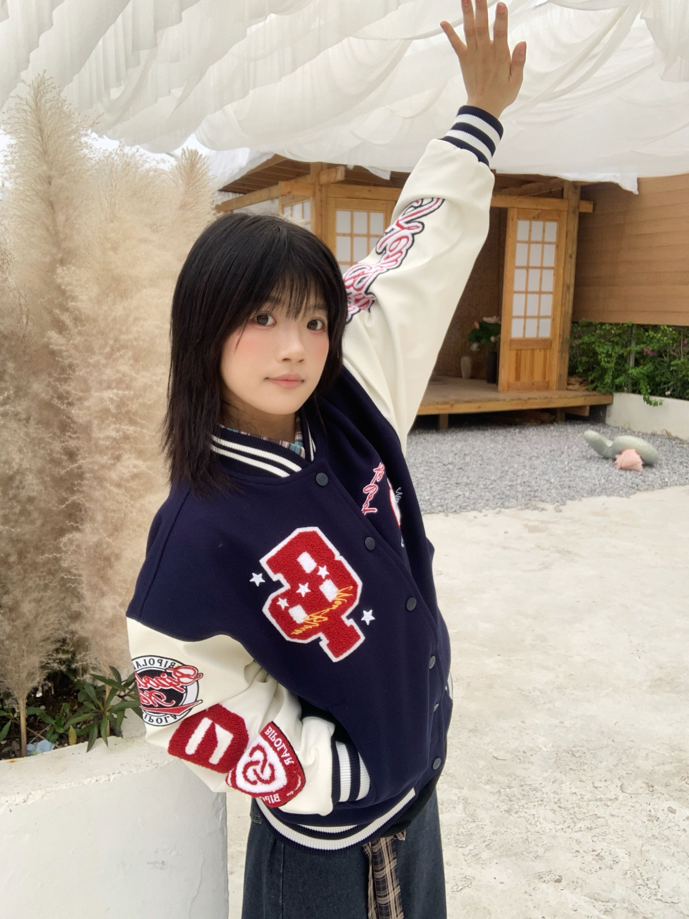 宝子们!给你们分享我新入的棒球服,真的绝了~🥳 藏青配白色的拼接,一眼就戳中我啦,还有那些刺绣,好精致好可爱✨ 我160cm、92斤,穿上刚刚好,不会显胖,活动起来也很自在。面料软软的,贴着皮肤也不扎,现在穿正合适,不冷也不热~我就随便搭了条阔腿裤和小靴子,感觉自己活力满满,上学或者和同学出去玩穿都超合适,已经迫不及待想穿去学校给大家看啦