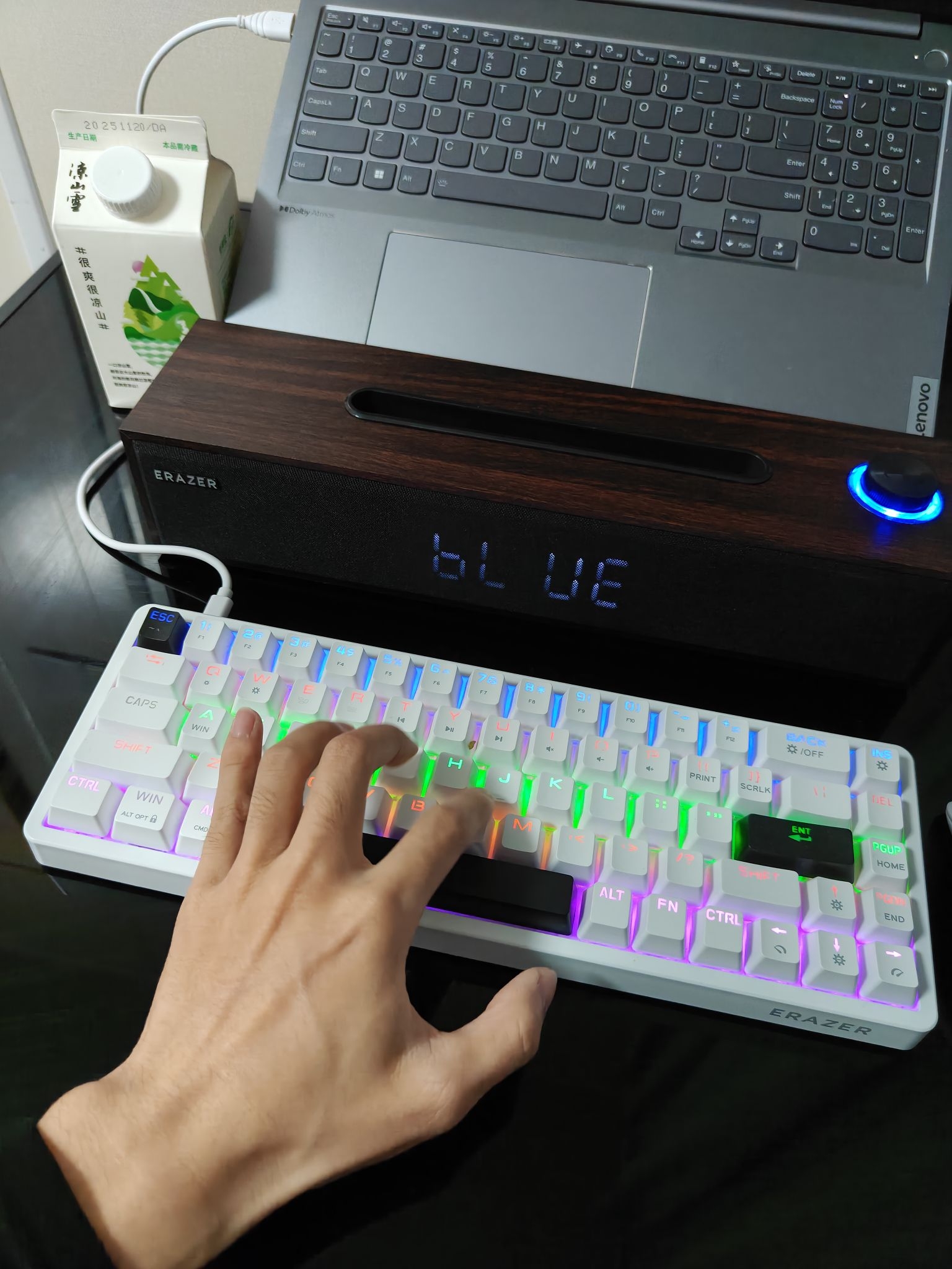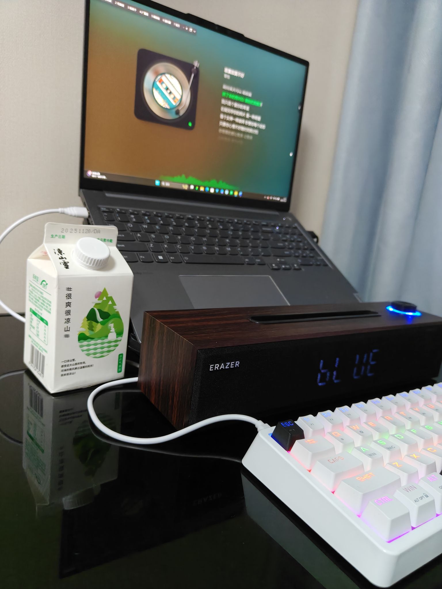 ⭐简单精致的桌面是真的让人很难不爱呀❗ ✅目前我这个桌子是出租屋里的一个黑桌子,大概1×1m²左右,桌子上放一个电脑🖥️,一个音响,一个键盘空间还是挺充沛的 ✅我的这一款电脑是联想的thinkbook16+Ultra5-125H,16英寸的电脑🖥️,放在这个桌子上绰绰有余,而且他的灰色金属质感和我的桌面真的挺搭配,性能这方面我感觉很不错,不卡顿续航时间也久🔋,我在家一般一直充着电玩⚡ ✅搭配了这个...