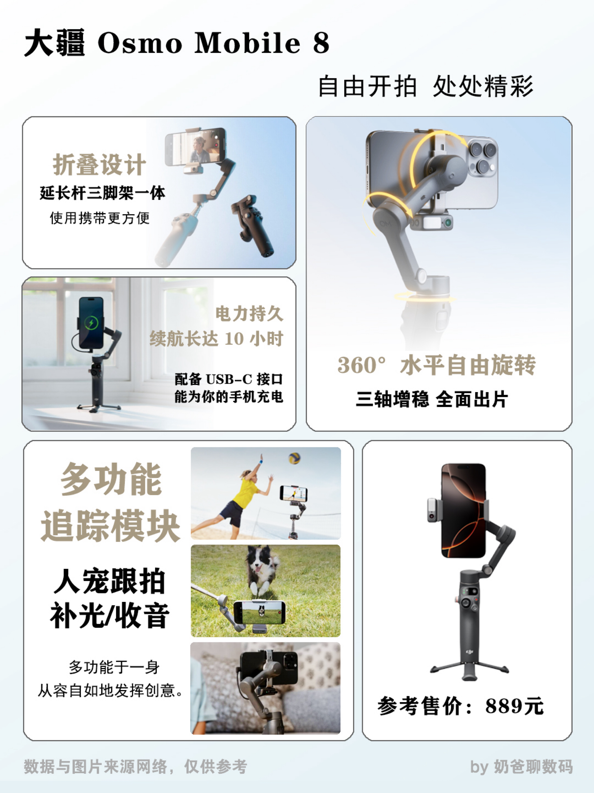 1. 核心功能:大疆追踪更“聪明” 🎥 两者都带追踪模块。但大疆支持苹果和鸿蒙原生追踪,跟拍人、宠物自动又顺滑;影石的基础AI模块,跟拍体验稍普通一些。 2. 便携与承重:大疆轻一点,承重稳一点 ⚖️ 大疆重370克,影石重396克——拿久了能感觉出差别。二者都能折叠,便携性都不错。手机太重?大疆承重范围170克起,比影石的130克起点更包容大手机。 3. 续航与充电:都能用10小时,但大...