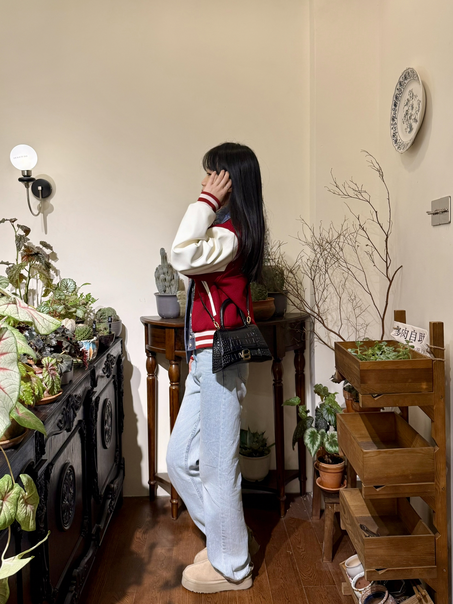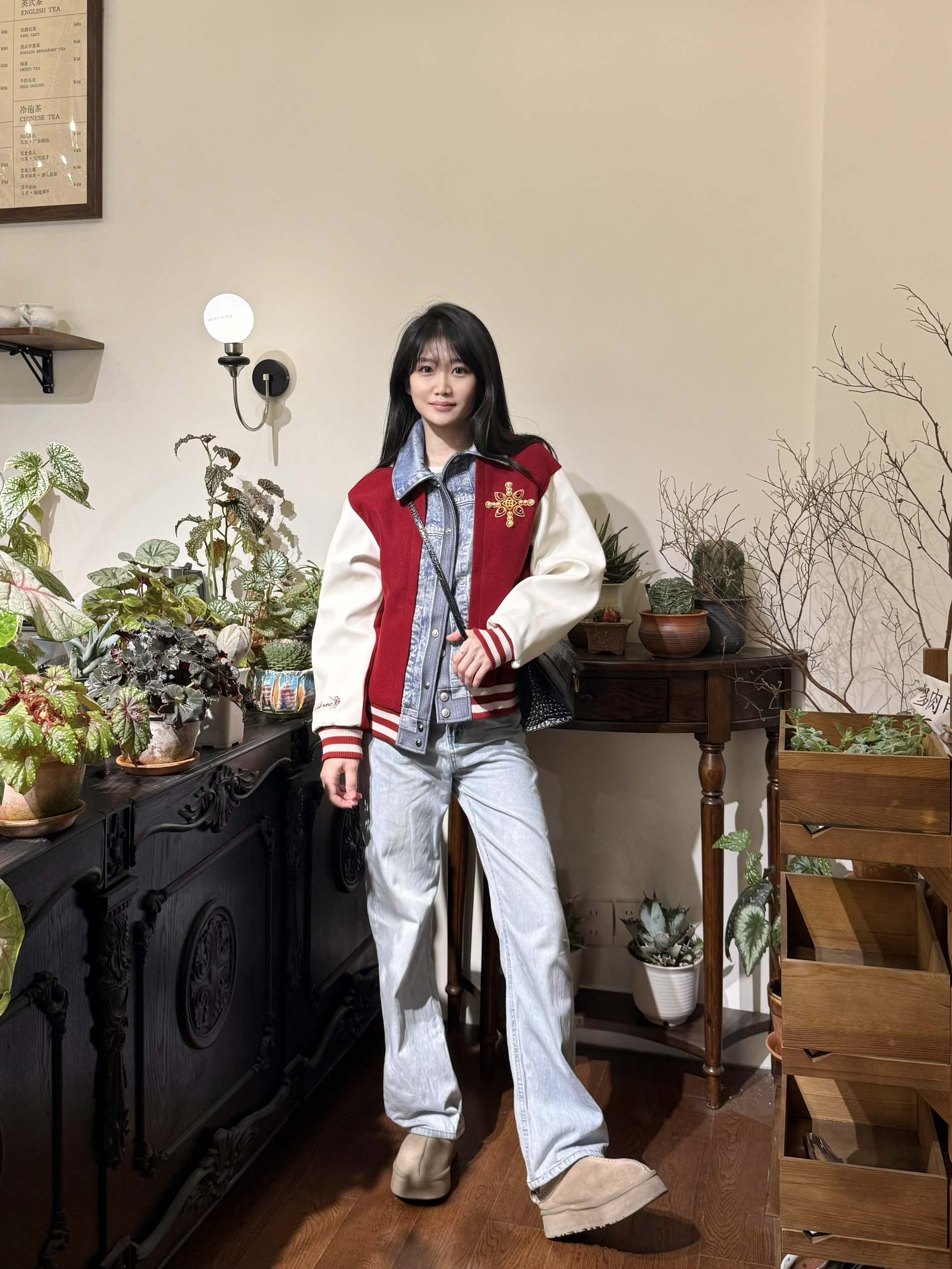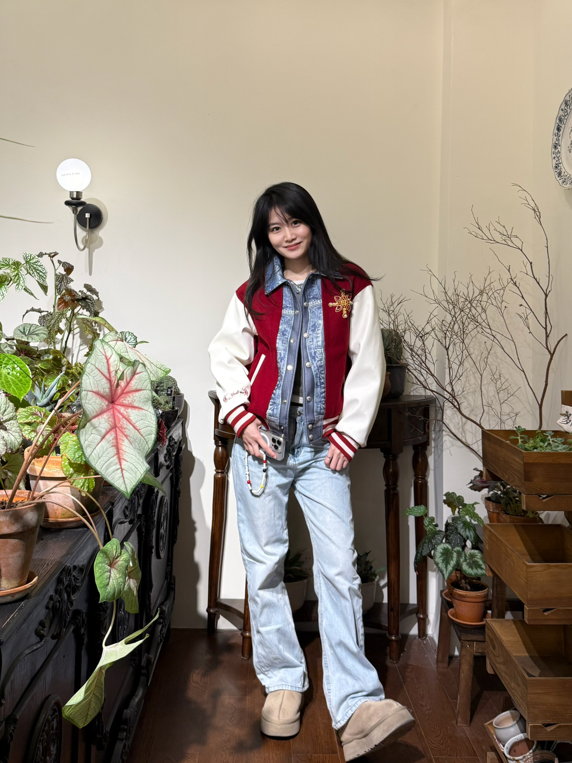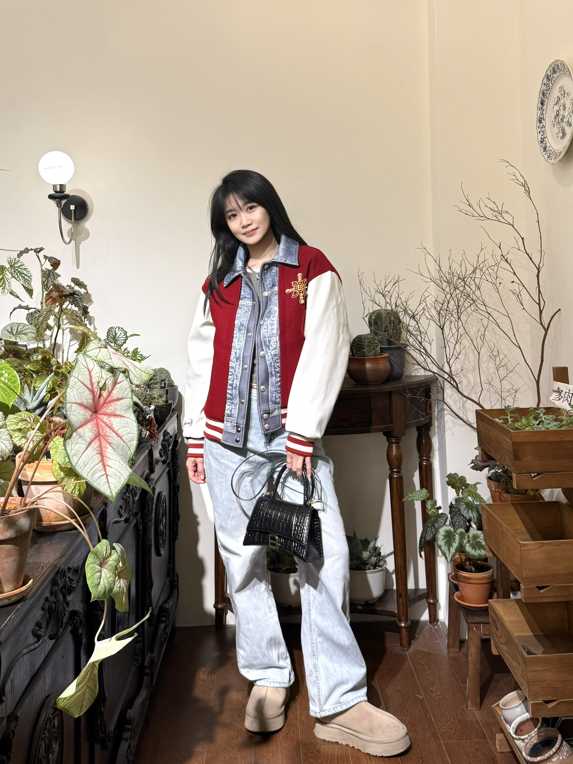 牛仔和棒球服元素 拼在一起 就很特别~ YADcrew 夹棉棒球服 这个天气穿刚刚好‼️ 红牛仔拼接配色 hin有层次感 钻饰珍珠细节也贼高级 下身做旧牛仔裤➕厚底鞋 美式街头感穿搭也是拿捏住咯!