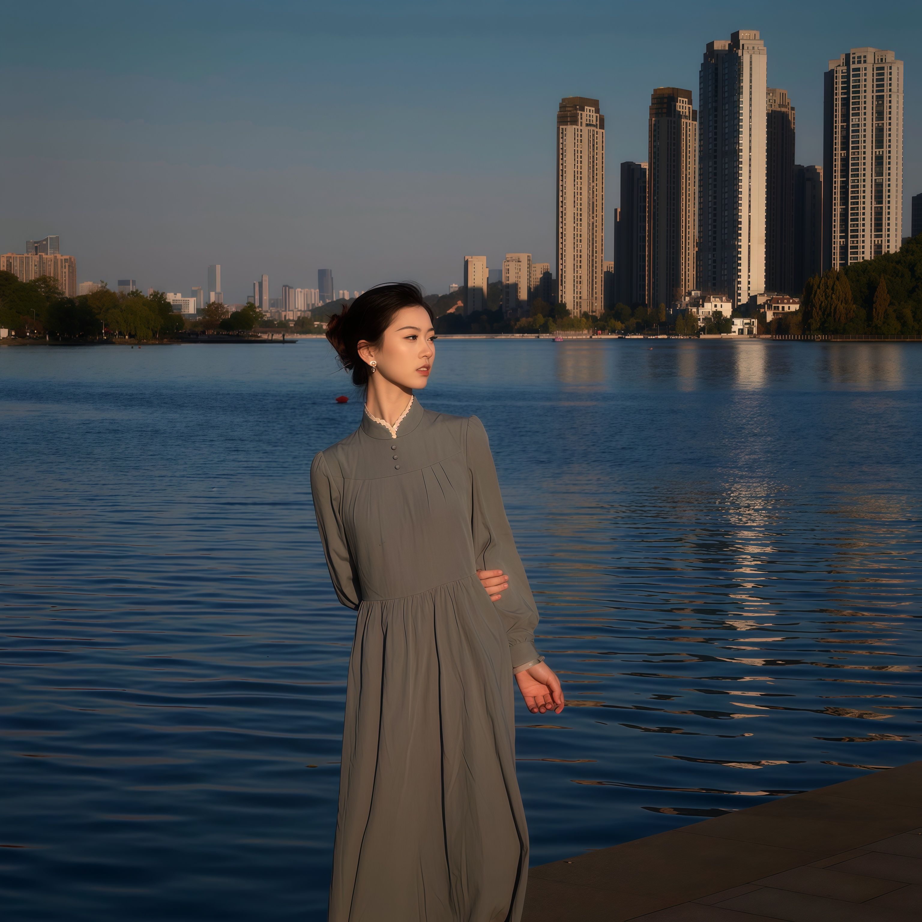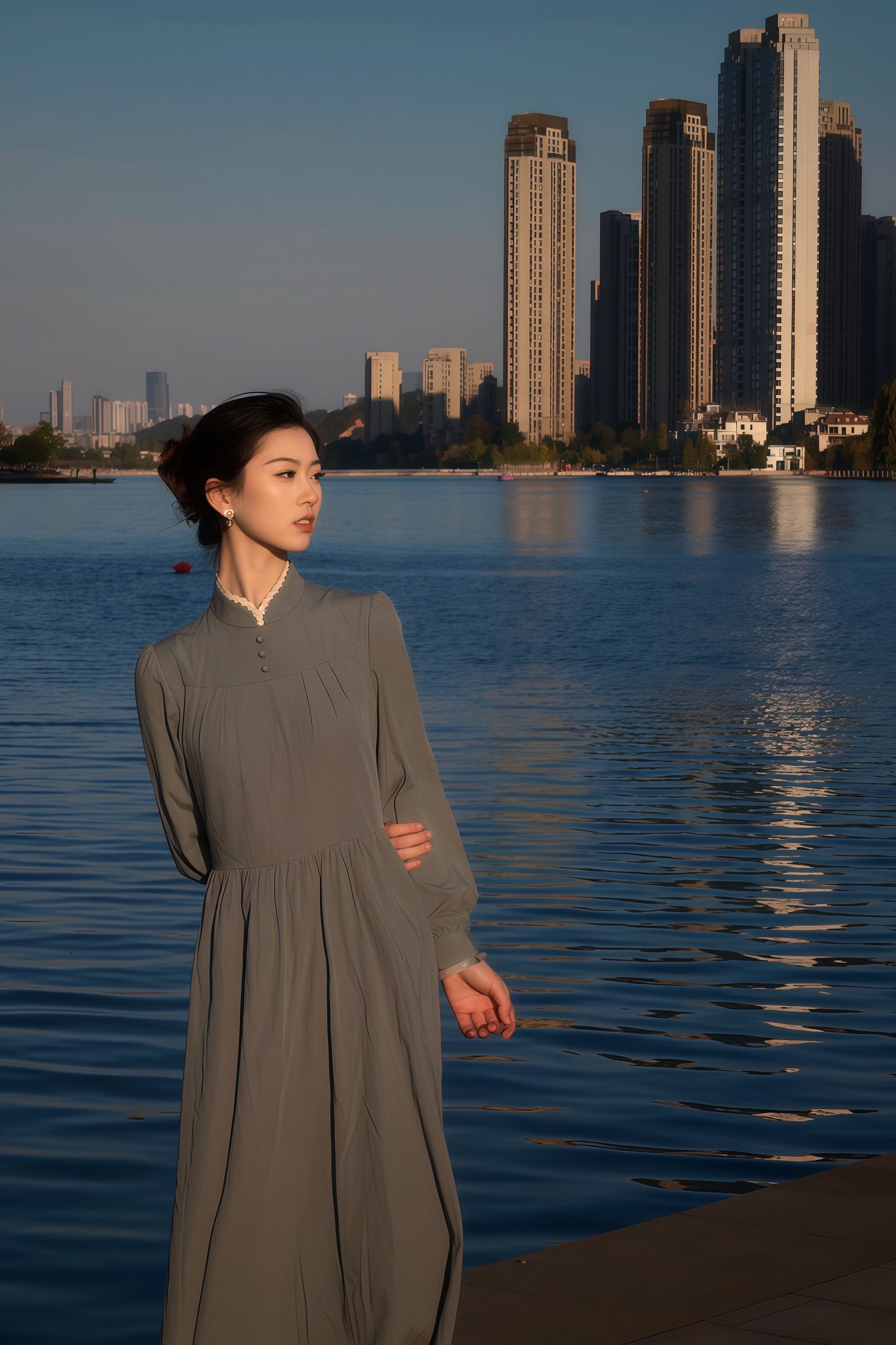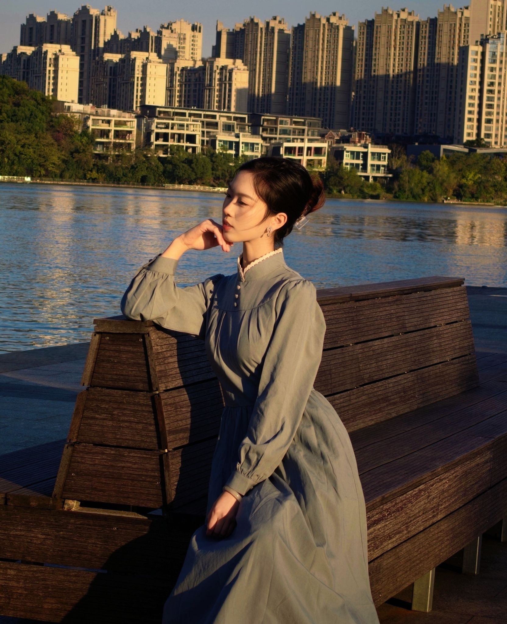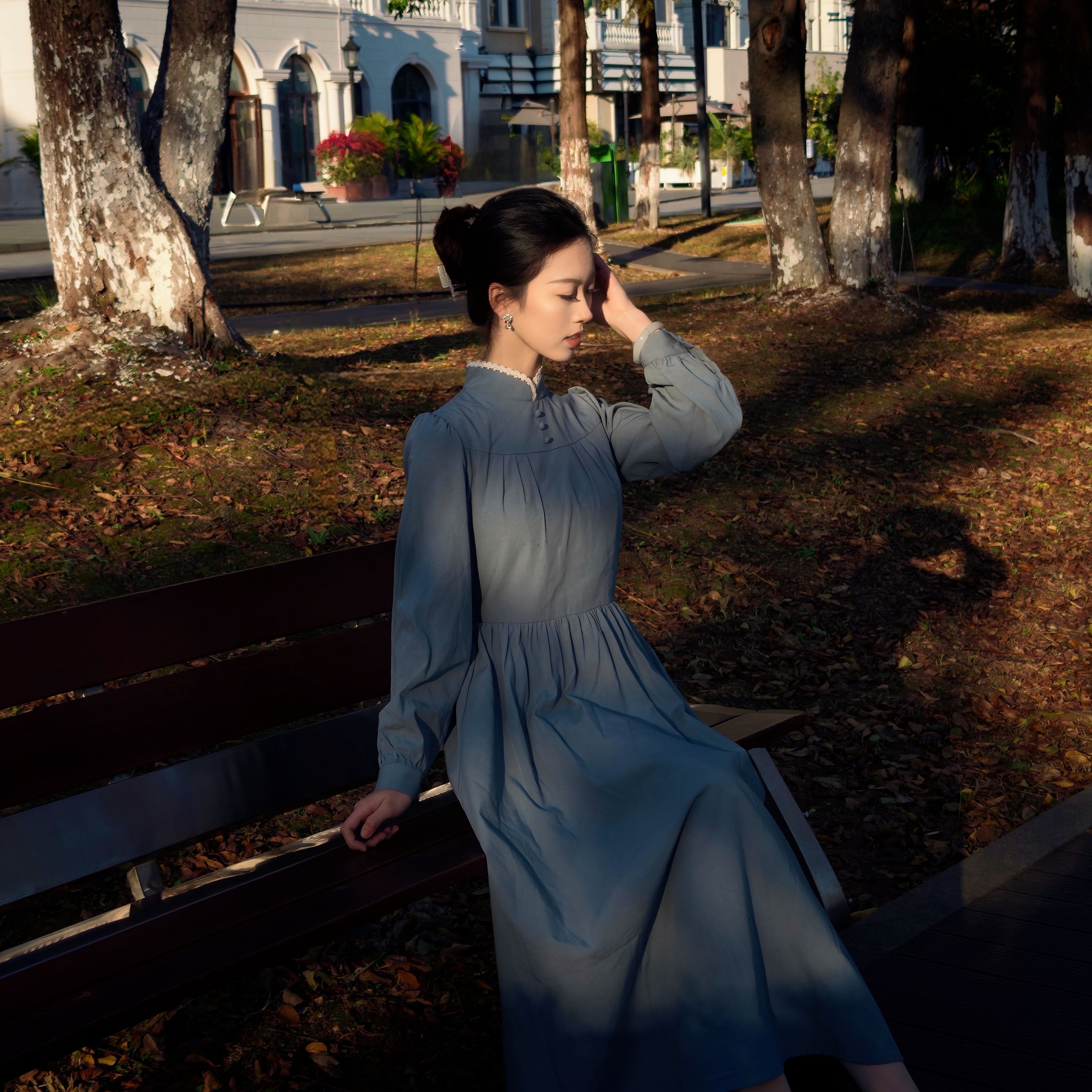 灰蓝色长裙➕蕾丝立领巧妙设计搭配在一起,总觉得有点禁欲味 刚拿到手衣服棉质手感➕这个低饱和度的灰蓝色我眉头一皱以为网购翻车了 上身后居然感觉有种古朴沉静的气质呼之欲出,类似于欧洲修女服的庄重却又因为领口的独特设计增添了一丝俏皮。 穿上后明明是那么不眨眼的颜色确总感觉很抓眼,再加上这么素淡的颜色和简约的设计,偏偏又将掐腰设计的非常漂亮,更显高挑纤细! 太妙了,衣如其店名“枕梦山庄"朦胧中的典雅,我认...