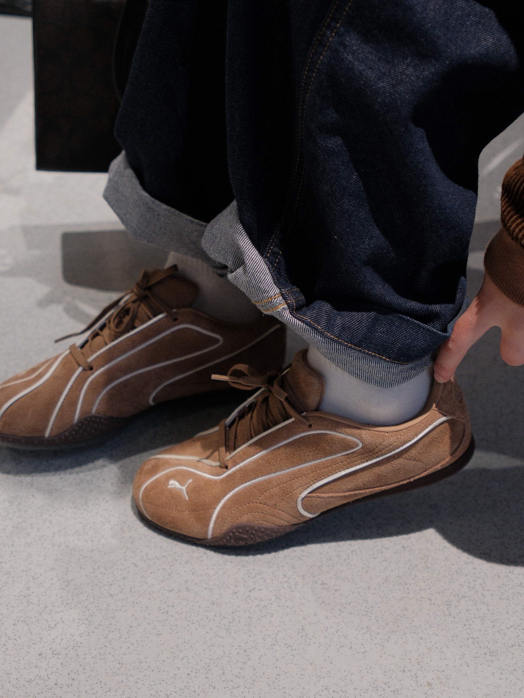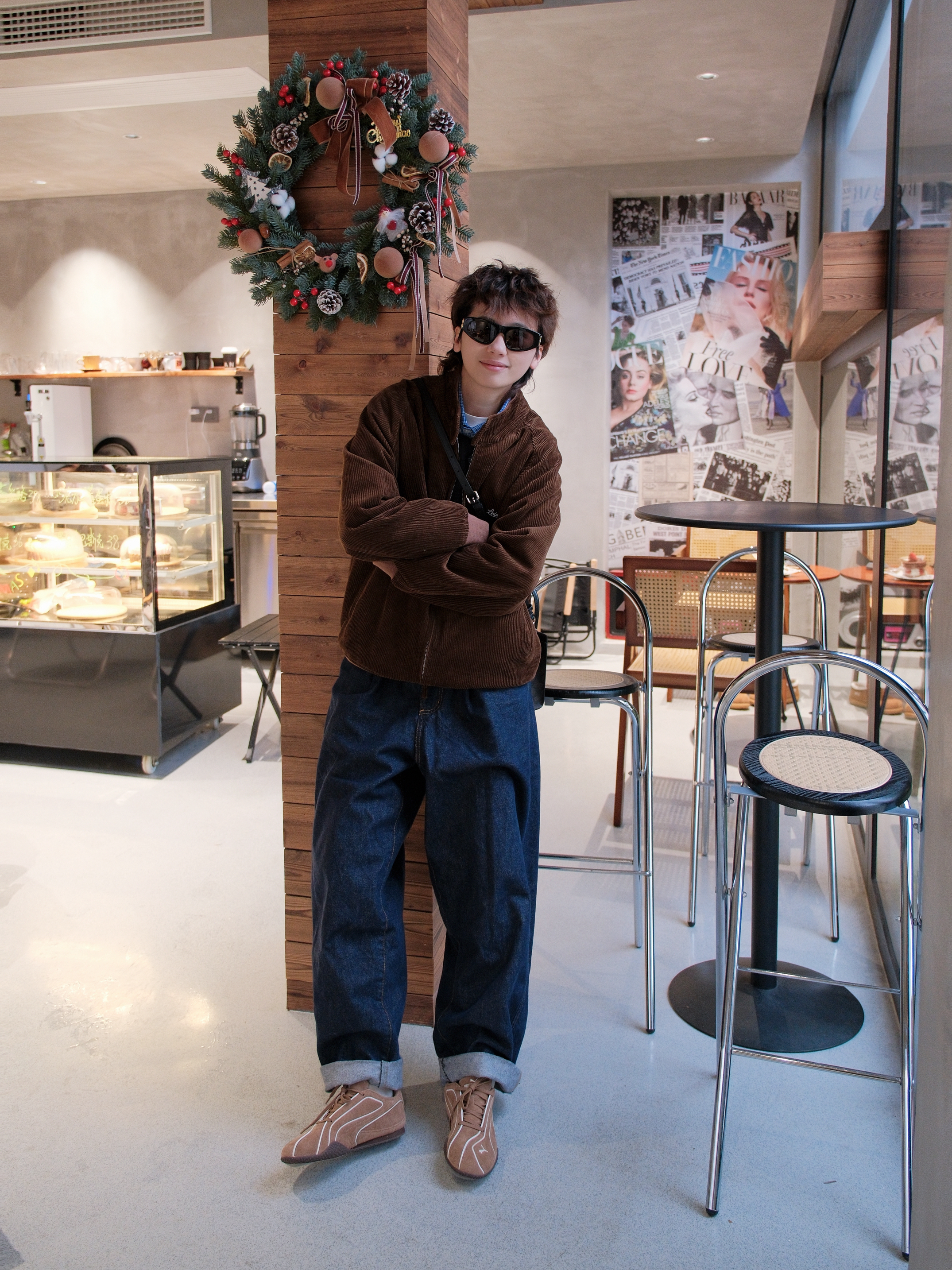 自从跟着ins博主学 内搭换成衬衫➕领带的组合 简直就是懒人穿搭福音 今天外套选的是深棕色的夹克外套 灯芯绒材质还挺软乎 里面搭配蓝色miu系细格衬衫➕黑色领带 下身深蓝色直筒牛仔裤 搭配PUMA的棕色薄底赛车鞋 上下呼应就很契合 颗粒感的鞋底,虽然薄但是脚感很软弹 麂皮材质显得非常复古