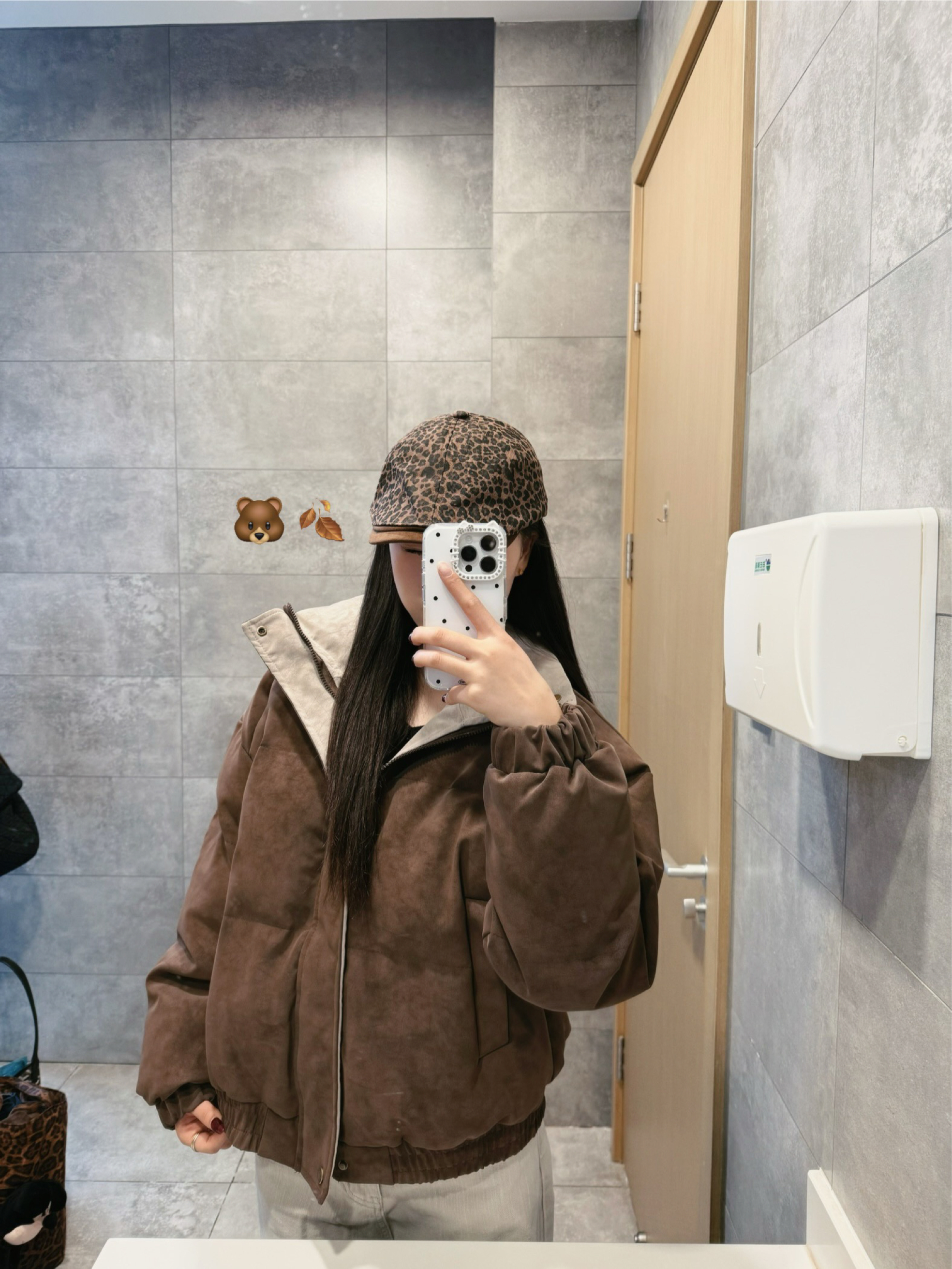 今天的主角是这件实用到想焊身上的棕调外套👇 麂皮质感+棉填充,手摸上去是软乎乎的,挡风不臃肿💫 连帽内衬是浅灰色,给整体添加层次感👀 短款➕微阔版型太懂日常了!小个子穿能卡在腰线显比例,微胖穿也不会裹得局促💭 口袋是带盖的暗扣设计,揣手机、钥匙不会掉,手冷了直接插进去暖乎乎~✨