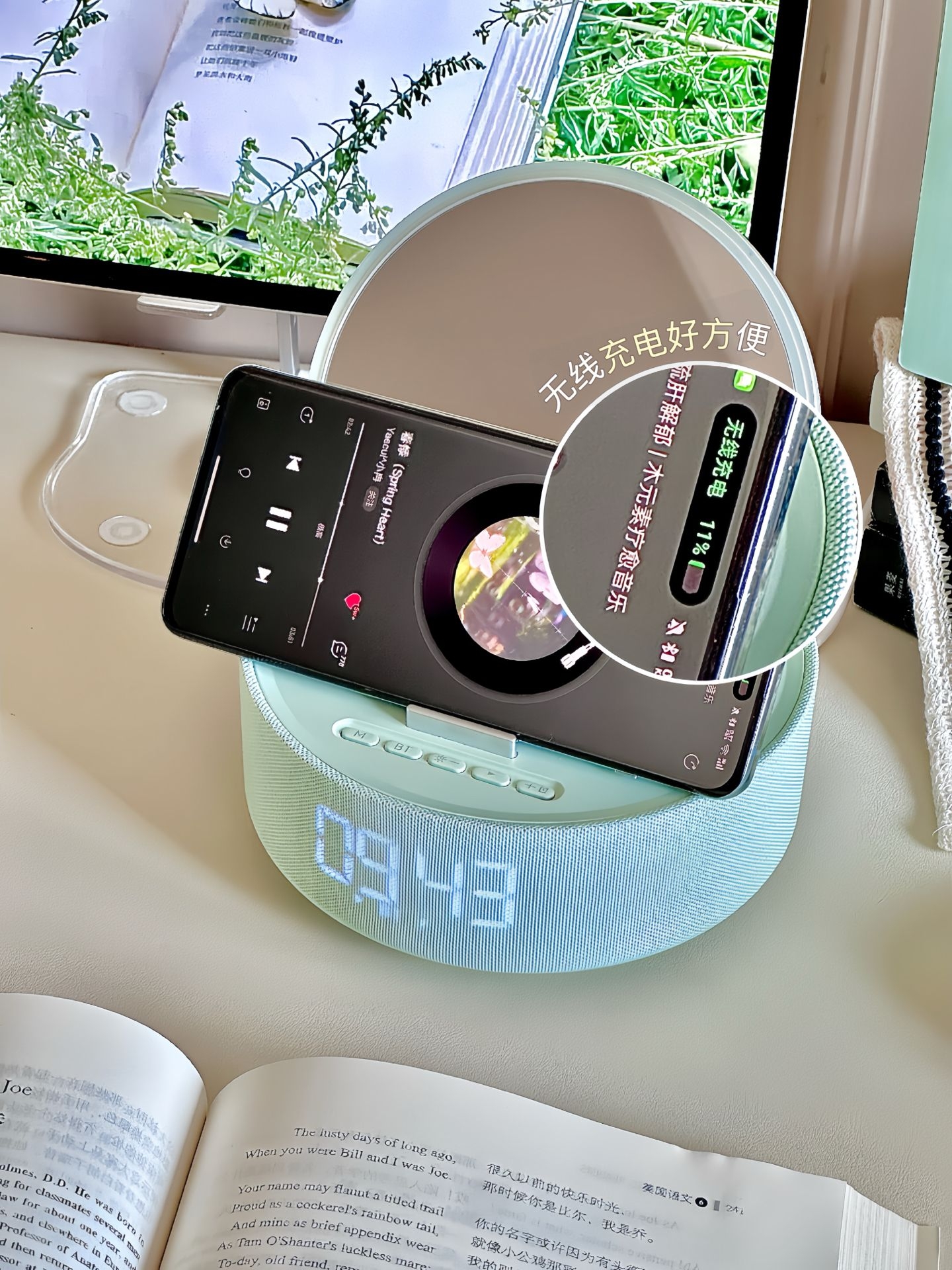 报告,我发现了一款敲级多功能的pococo音乐镜 很清新的绿色放在我桌面上刚刚好 化妆的时候能打开灯光,这功能我很喜欢 当然,除了变成小夜灯和蓝牙音箱外 还可以成为我喜欢的无线充电的手机支架 我有了它之后再也不担心手机没电了 一边充电,一边看电视,这下我的双手解放咯 @POCOCO官方 #夏日好物一步到位 #生活好礼大合集 #POCOCO音乐镜 #把春天的颜色绑进家 #百元送出高级感