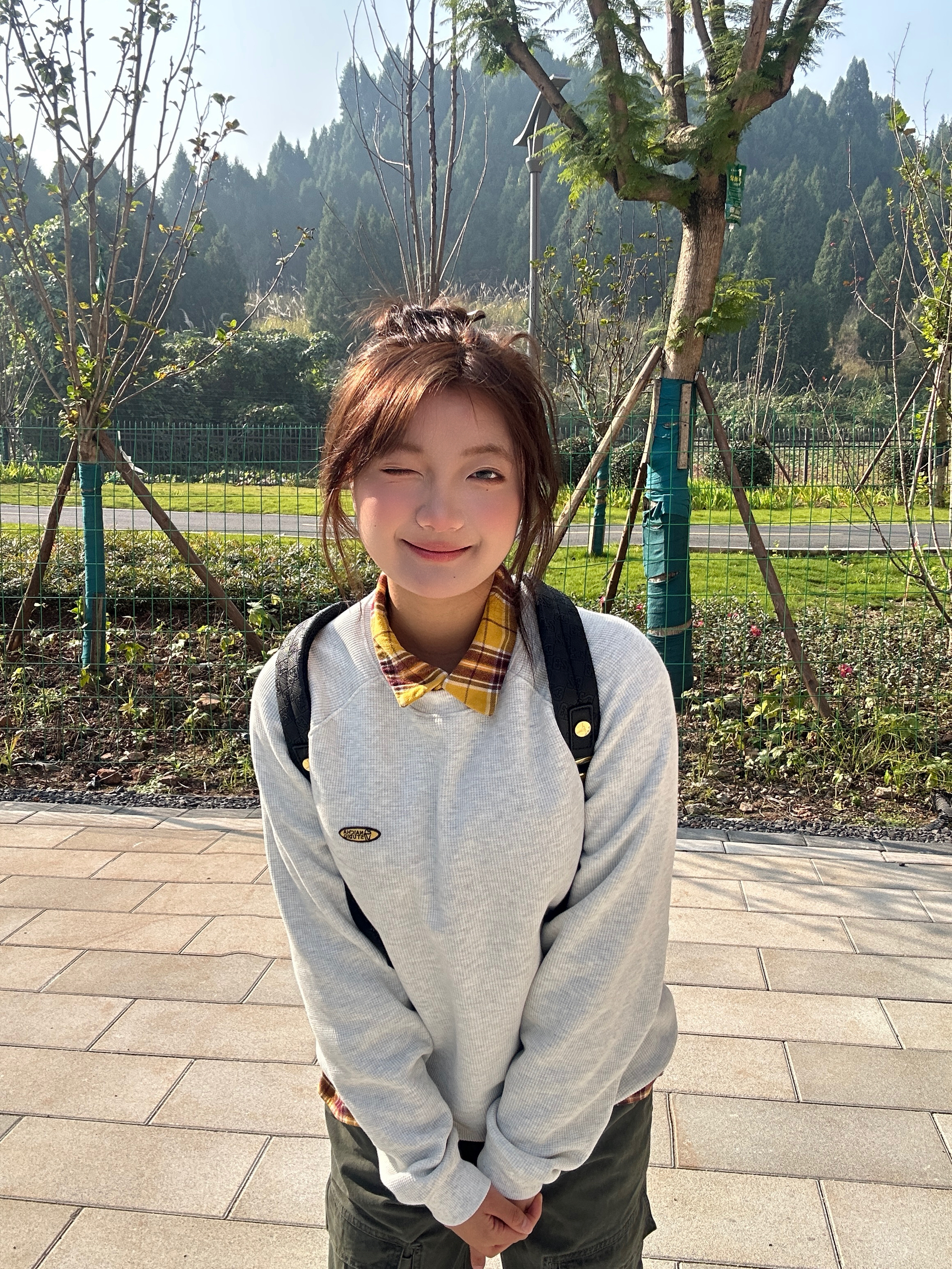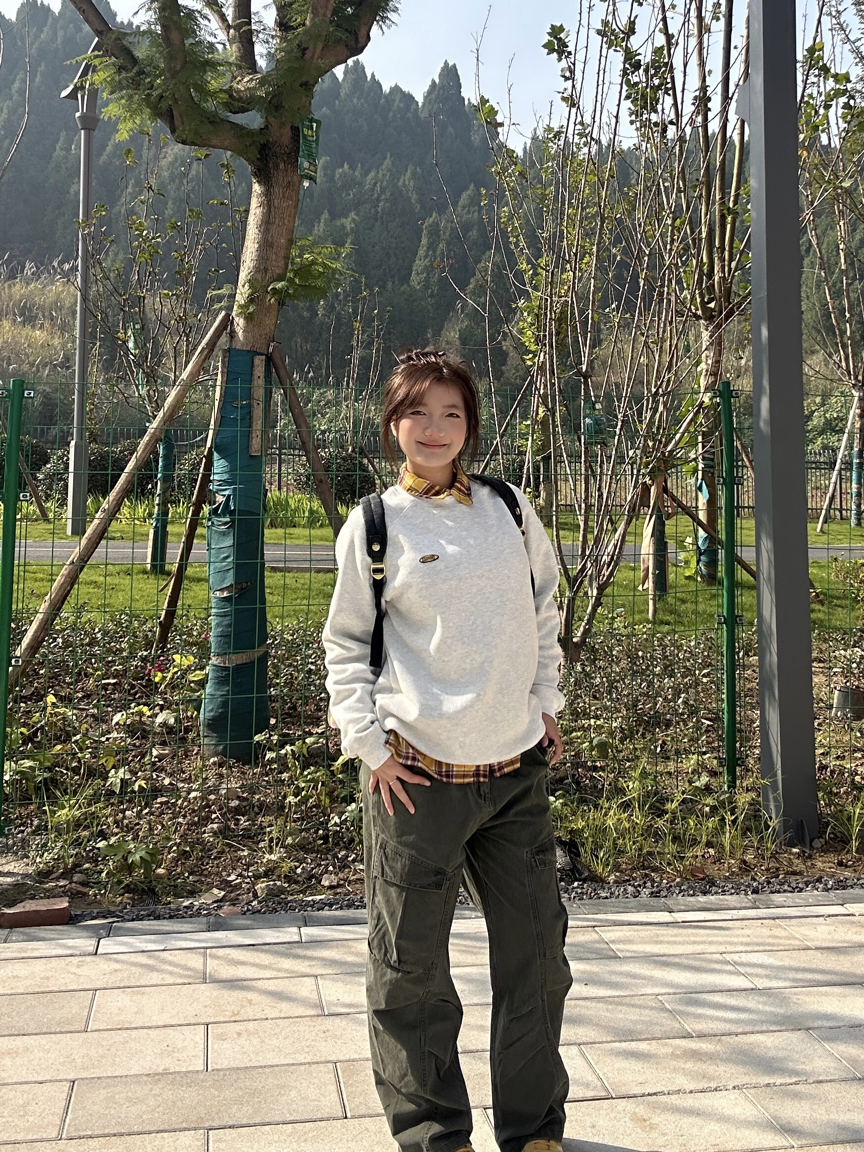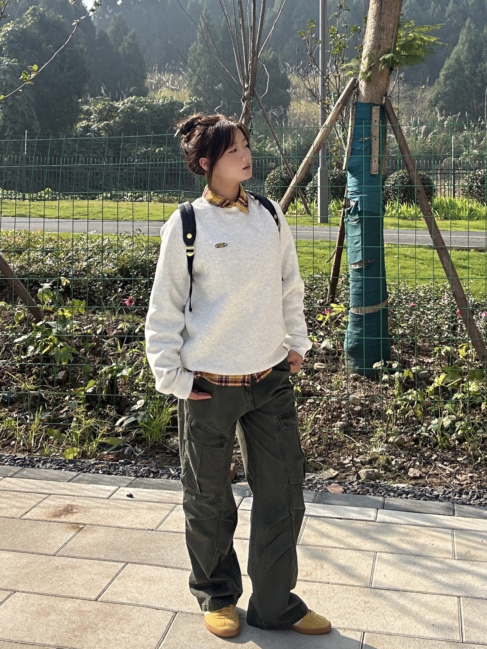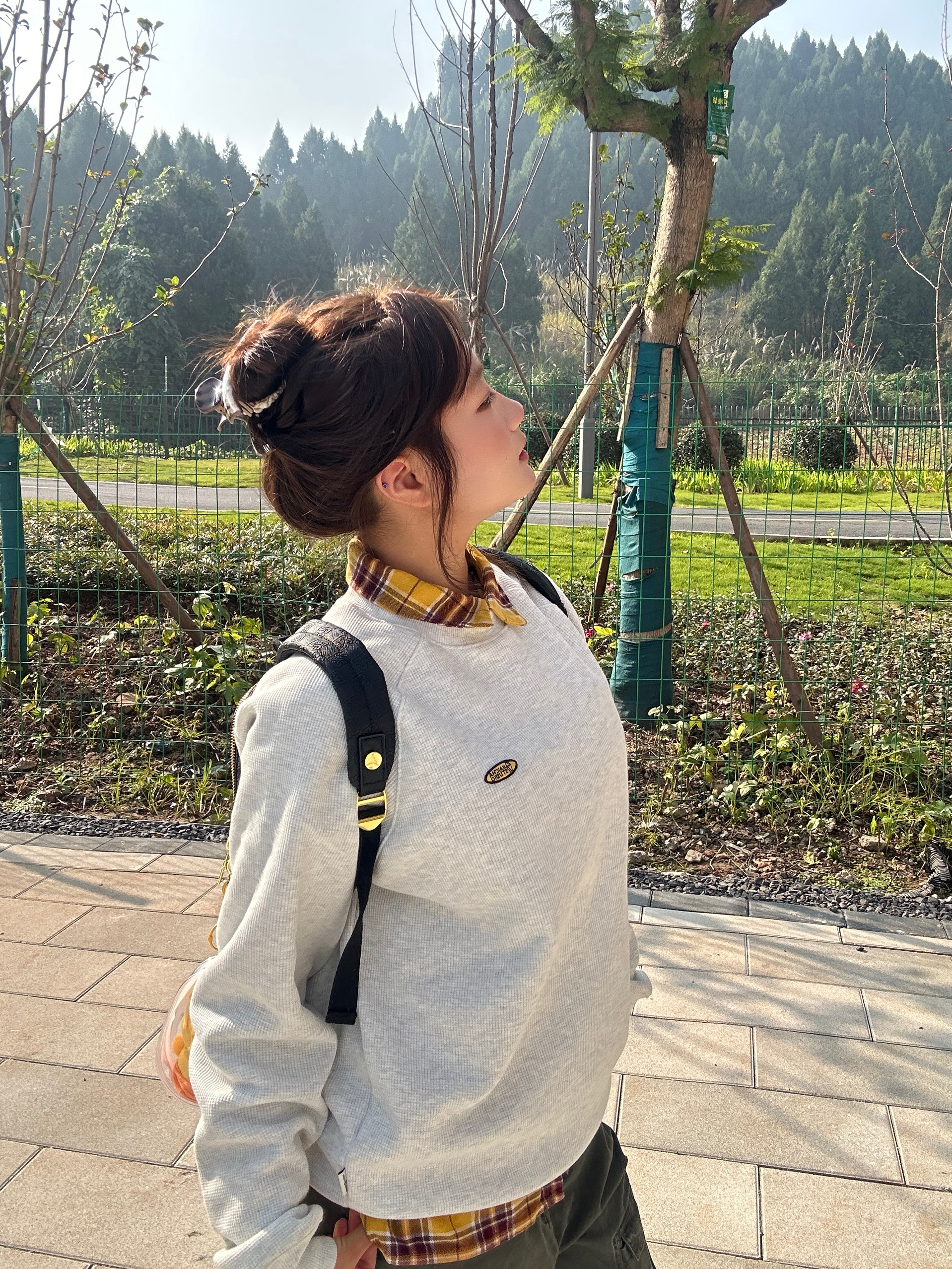这一套好慵懒舒适 不用过多的修饰 简单的卫衣就能穿出活力明媚的感觉 卫衣加绒加厚完全不怕冷 背包是皮质的 质感在线 拿在手不显廉价 小小的背包显得人精致灵动!金色的点缀使黑色不那么沉闷~