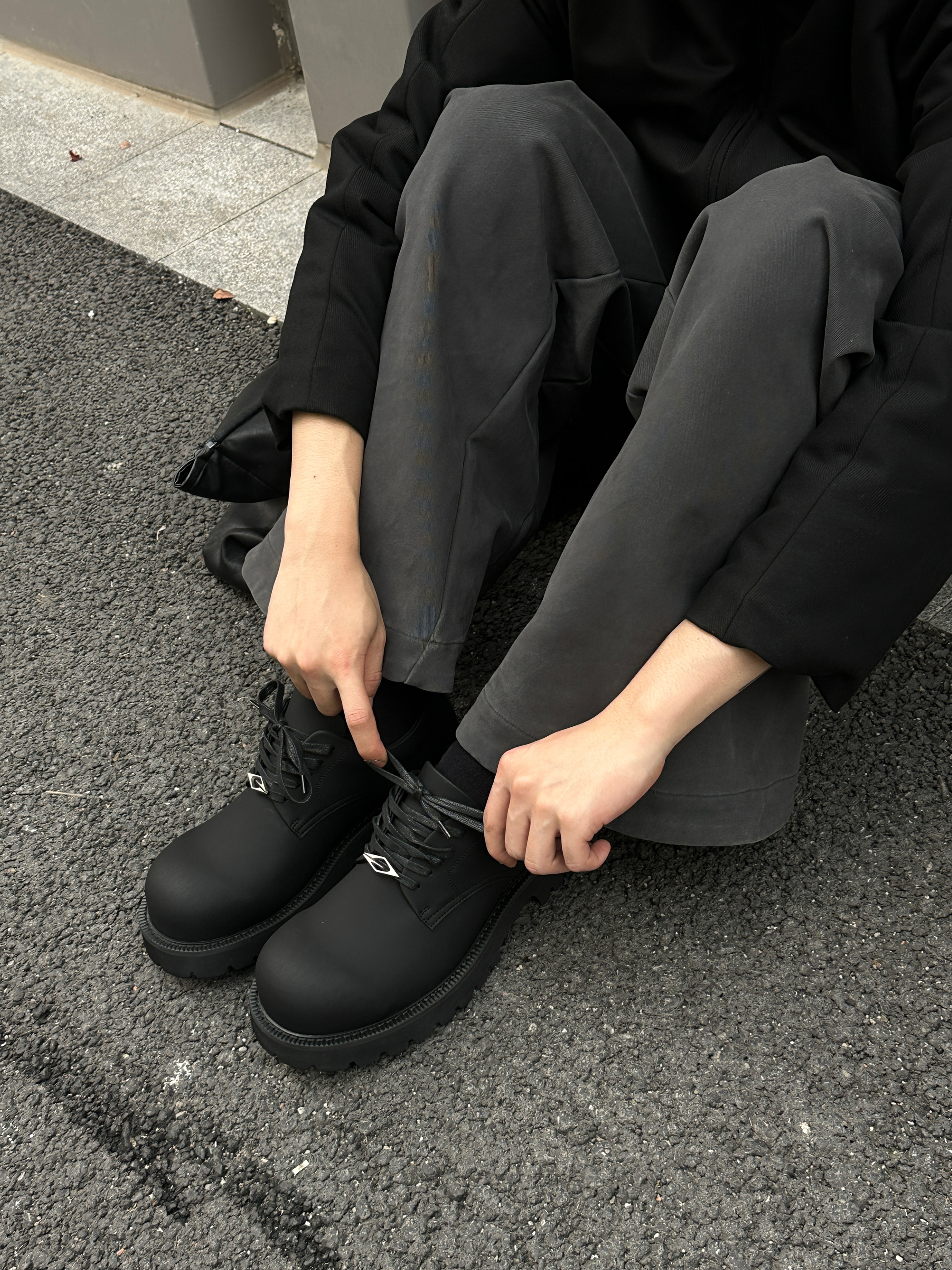 好爱穿德比鞋 这双厚底德比鞋我真的爱了 上脚软软的挺舒服的 雾面黑+圆头+齿轮底 暗黑系松弛感直接拉满 而且雾面黑挺低调的又很高级 配阔腿裤露个鞋边 走在街上回头率好高 ps:增高效果比内增高自然多了