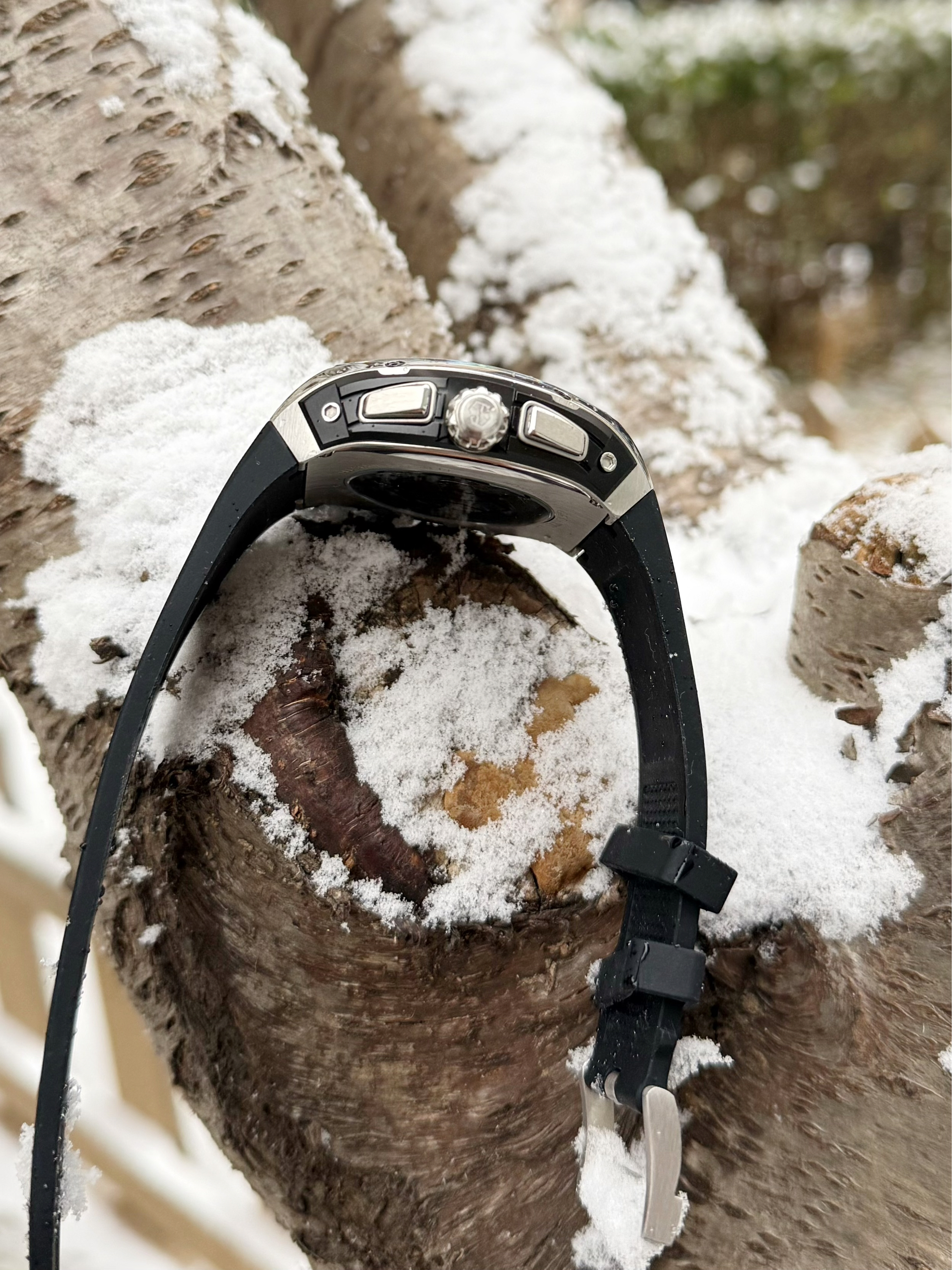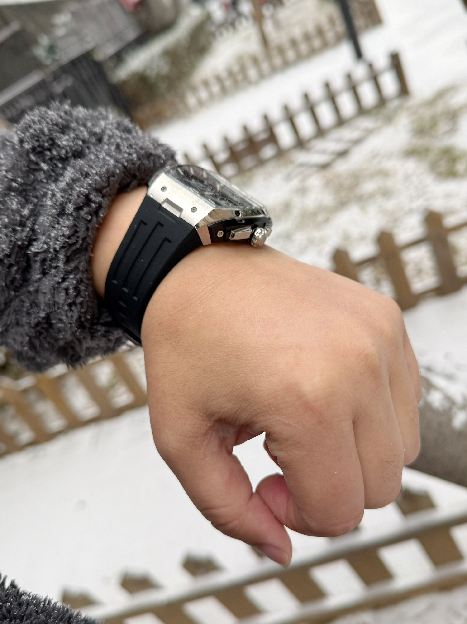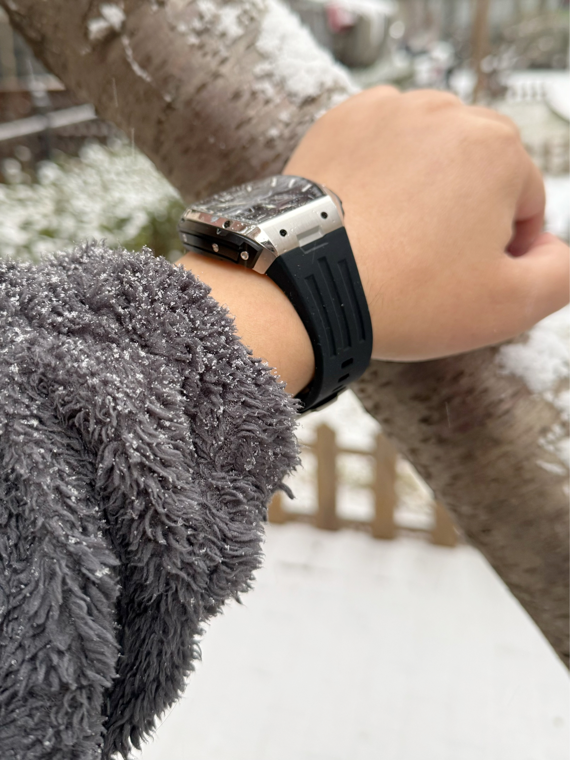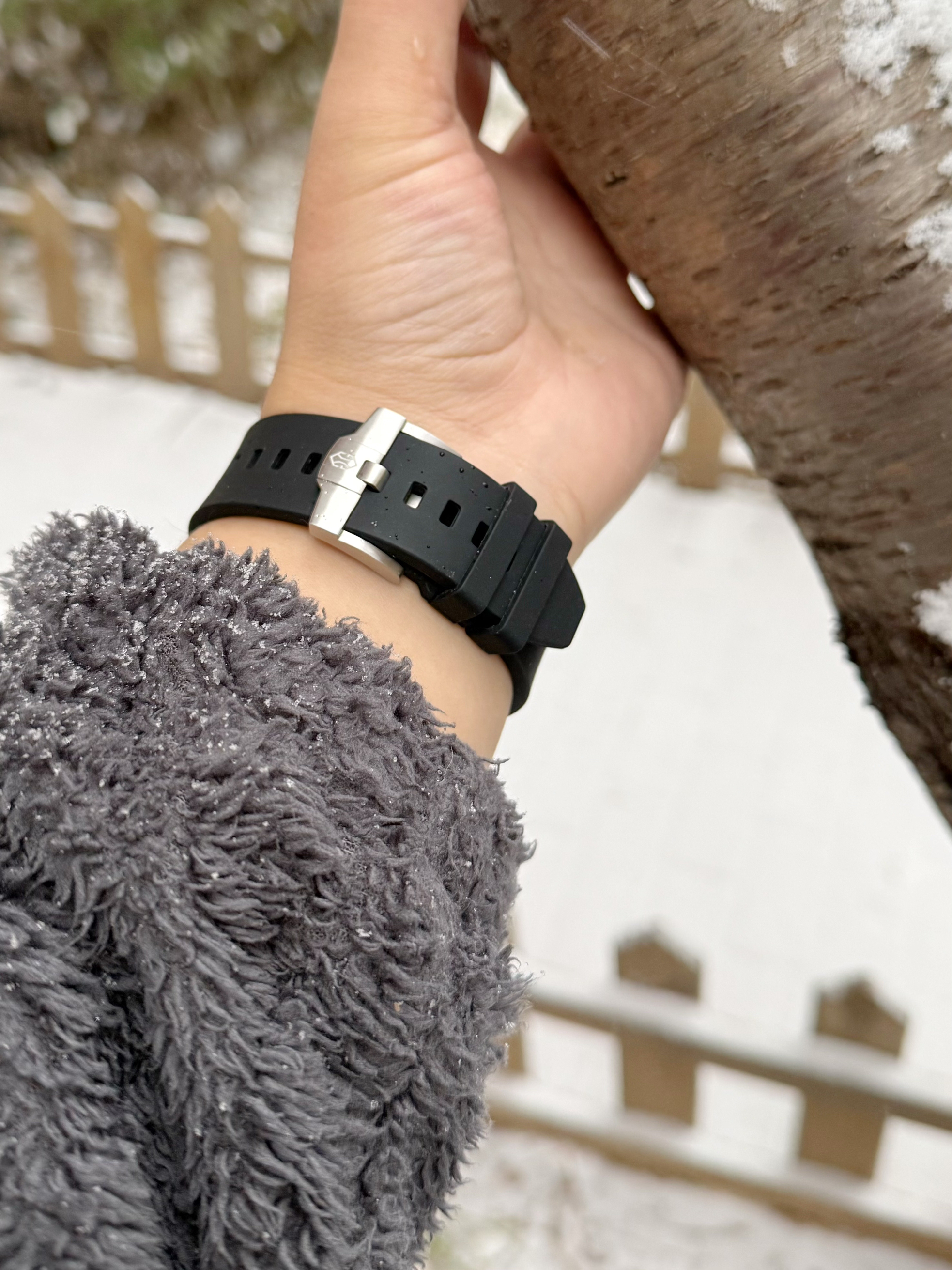 戴着50米防水的手表去玩雪,简直不用太放心,而且即使在低温下,也不影响手表走时,重点是对衣服的搭配也不挑,真是爱了~