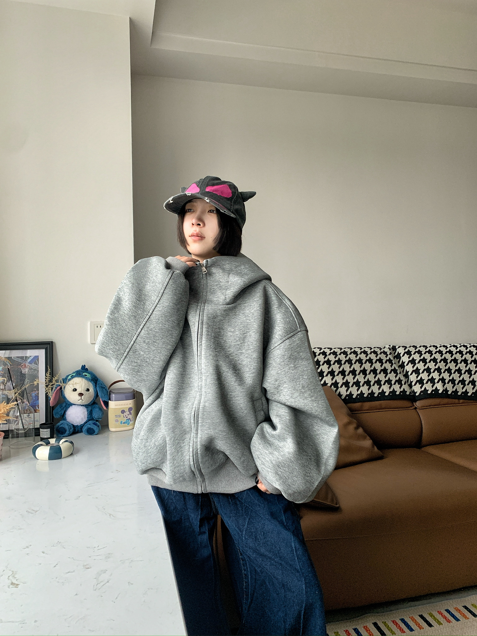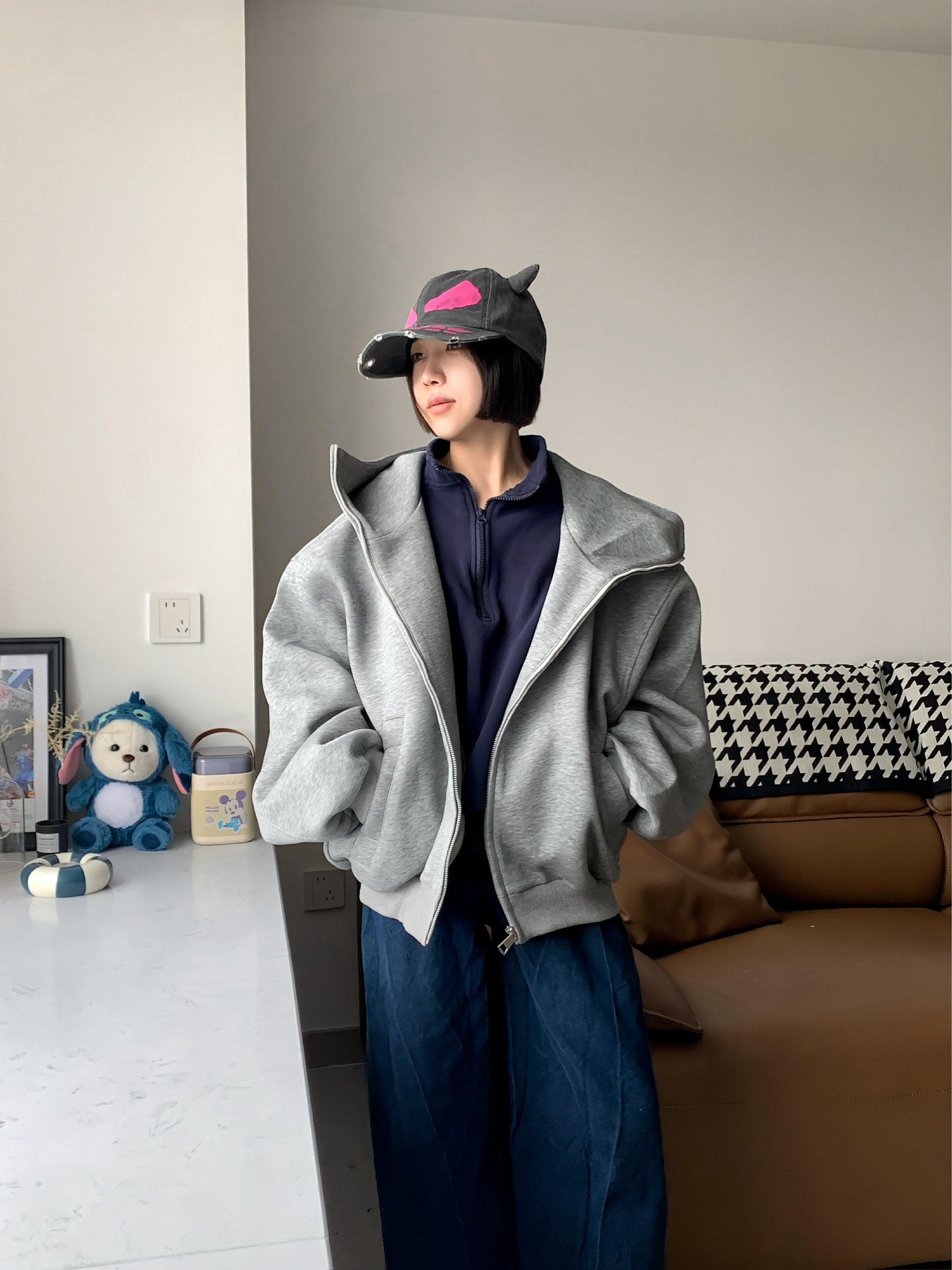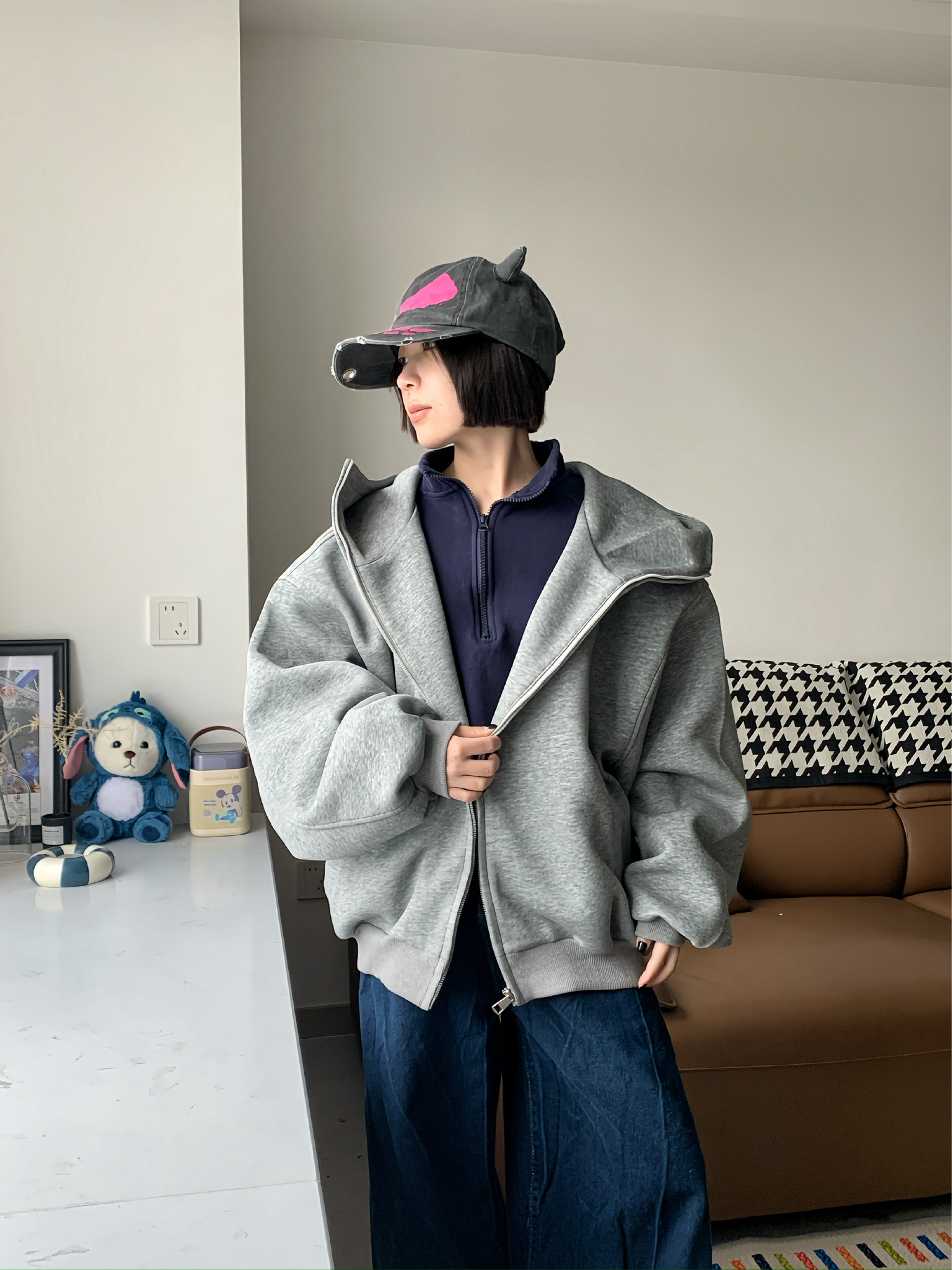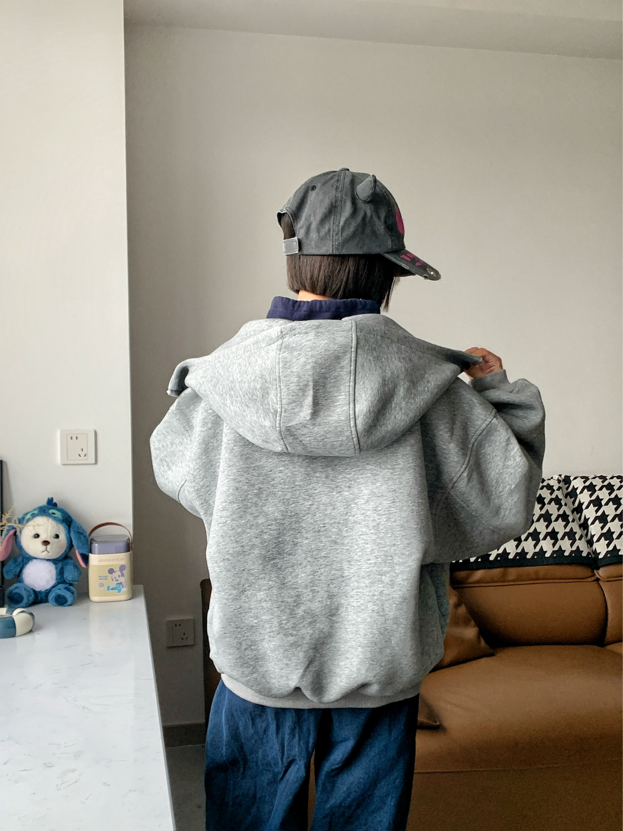 这是我最帅的一次!!连帽开衫是穿搭里最快速的答案,这件男女都可穿,自带一种的慵懒感而且实用性拉满。 很久没见过这么硬挺的开衫了,好版型的开衫绝对是衣柜里的硬通货,开衫一旦材质是软的版型就不会很好,这件版型真的不错,脖颈处做了空气感,在灰色帽衫和卫衣里是很点睛的存在,我很喜欢这个设计。 再冷些我觉得可以搭个羽绒夹克也合适 还能应付早晚的温差🌟